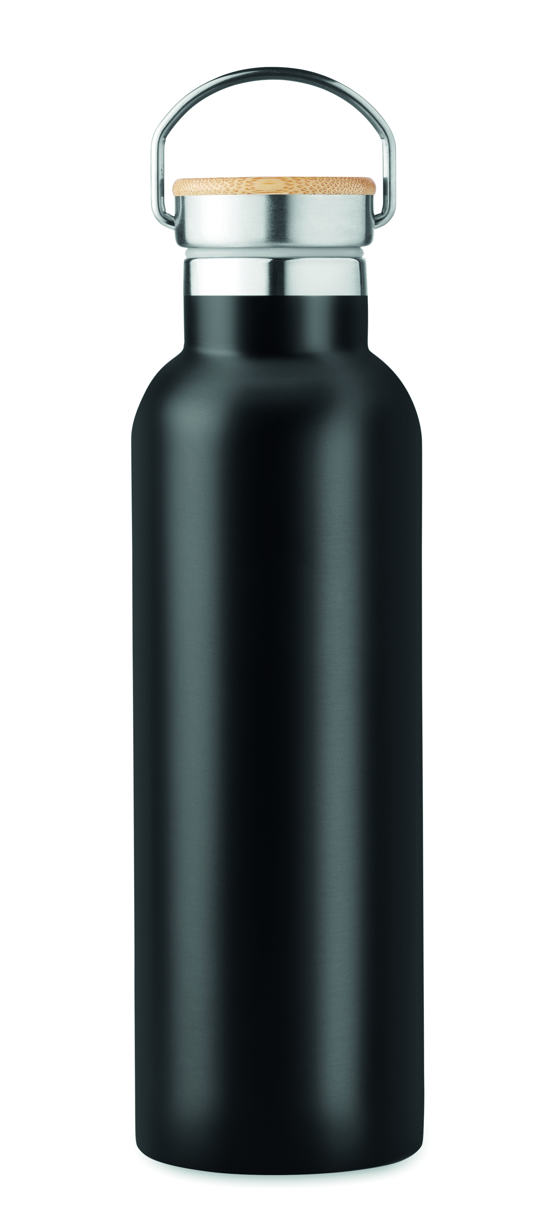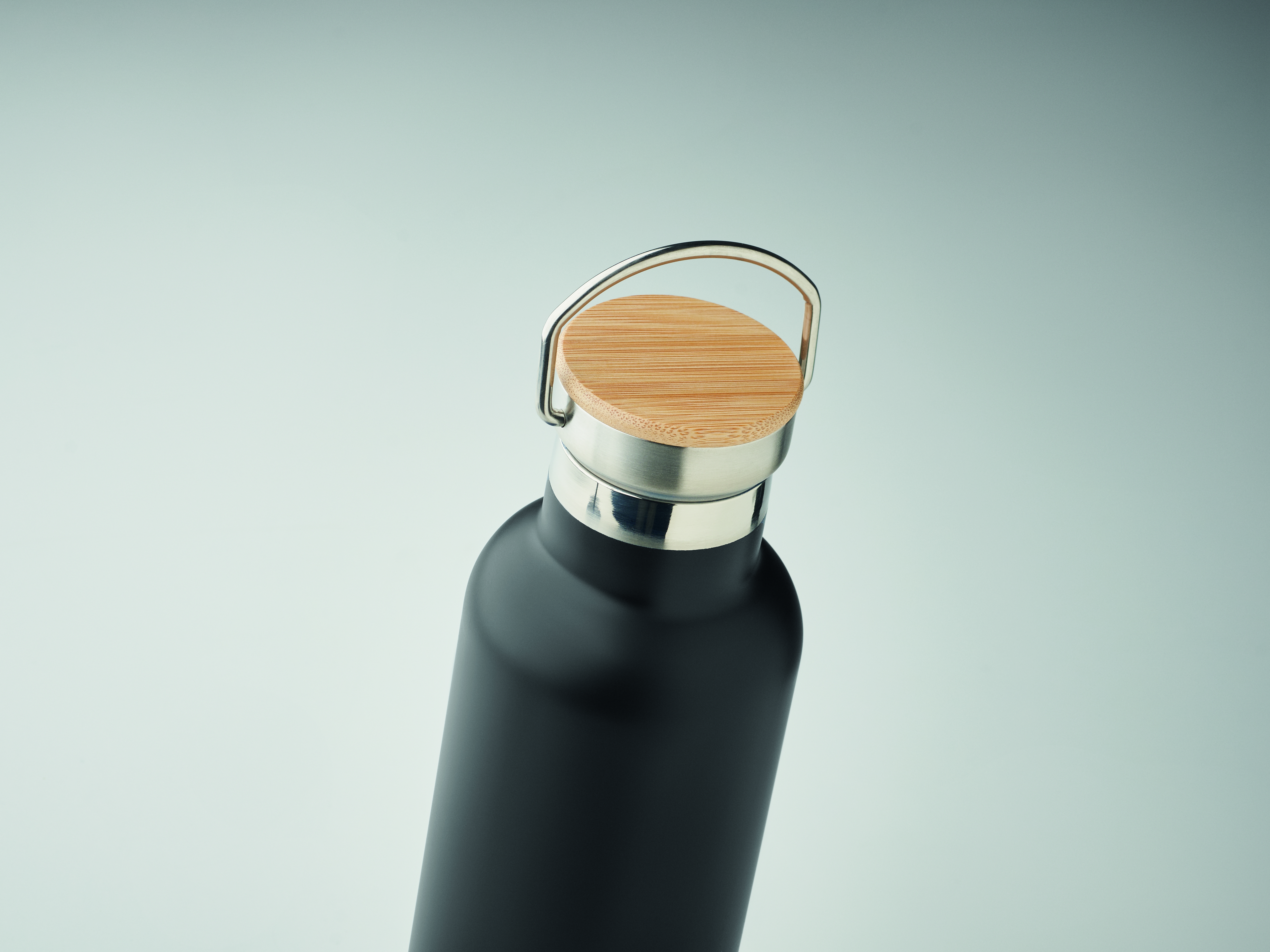 Termos z podwójną ścianką ze stali nierdzewnej z bambusową pokrywką i uchwytem. Pojemność: 750 ml. Nie przecieka. Bambus jest produktem naturalnym, dlatego mogą wystąpić nieznaczne różnice w kolorze, wzorze i rozmiarze.
