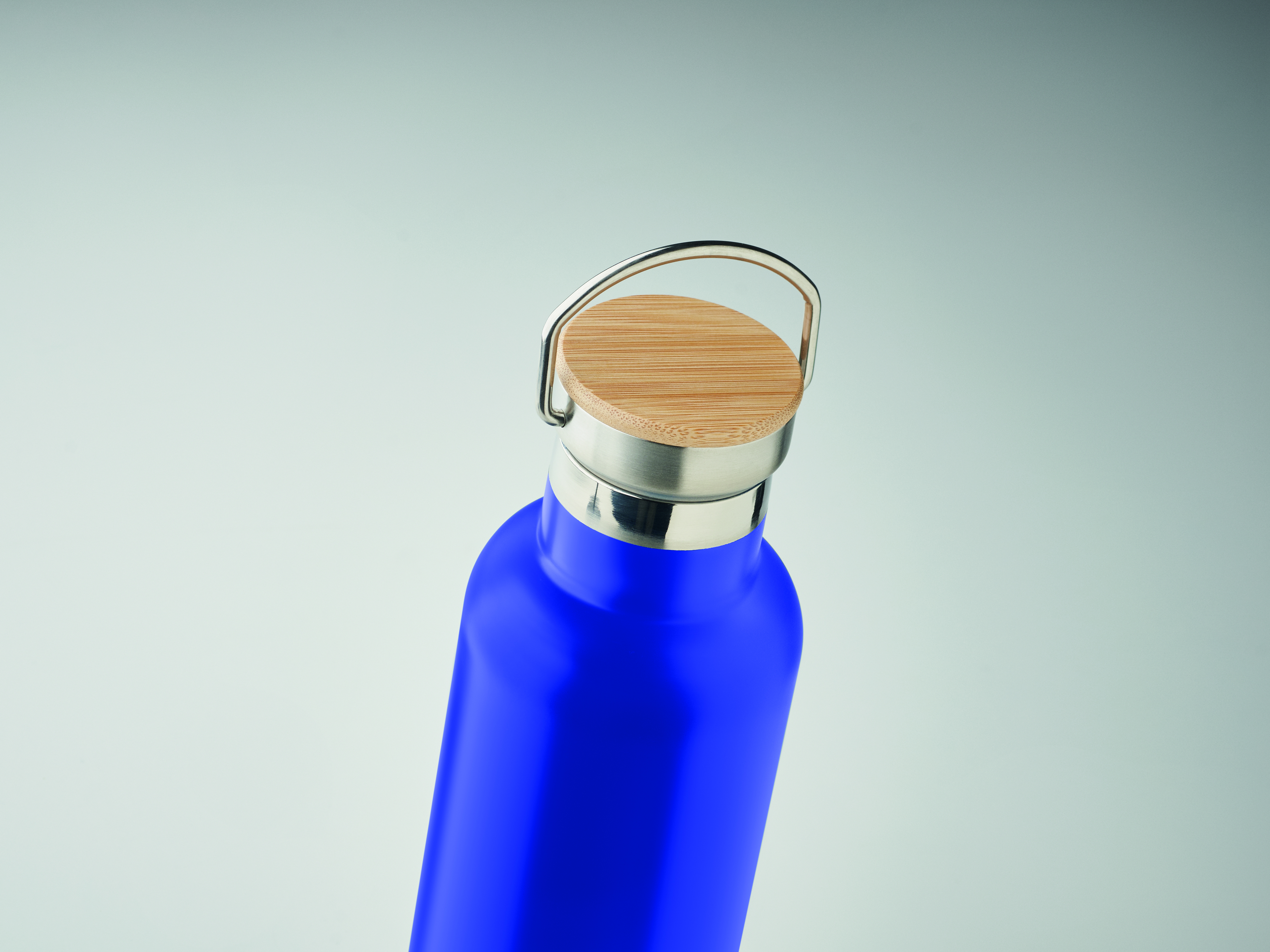 Termos z podwójną ścianką ze stali nierdzewnej z bambusową pokrywką i uchwytem. Pojemność: 750 ml. Nie przecieka. Bambus jest produktem naturalnym, dlatego mogą wystąpić nieznaczne różnice w kolorze, wzorze i rozmiarze.