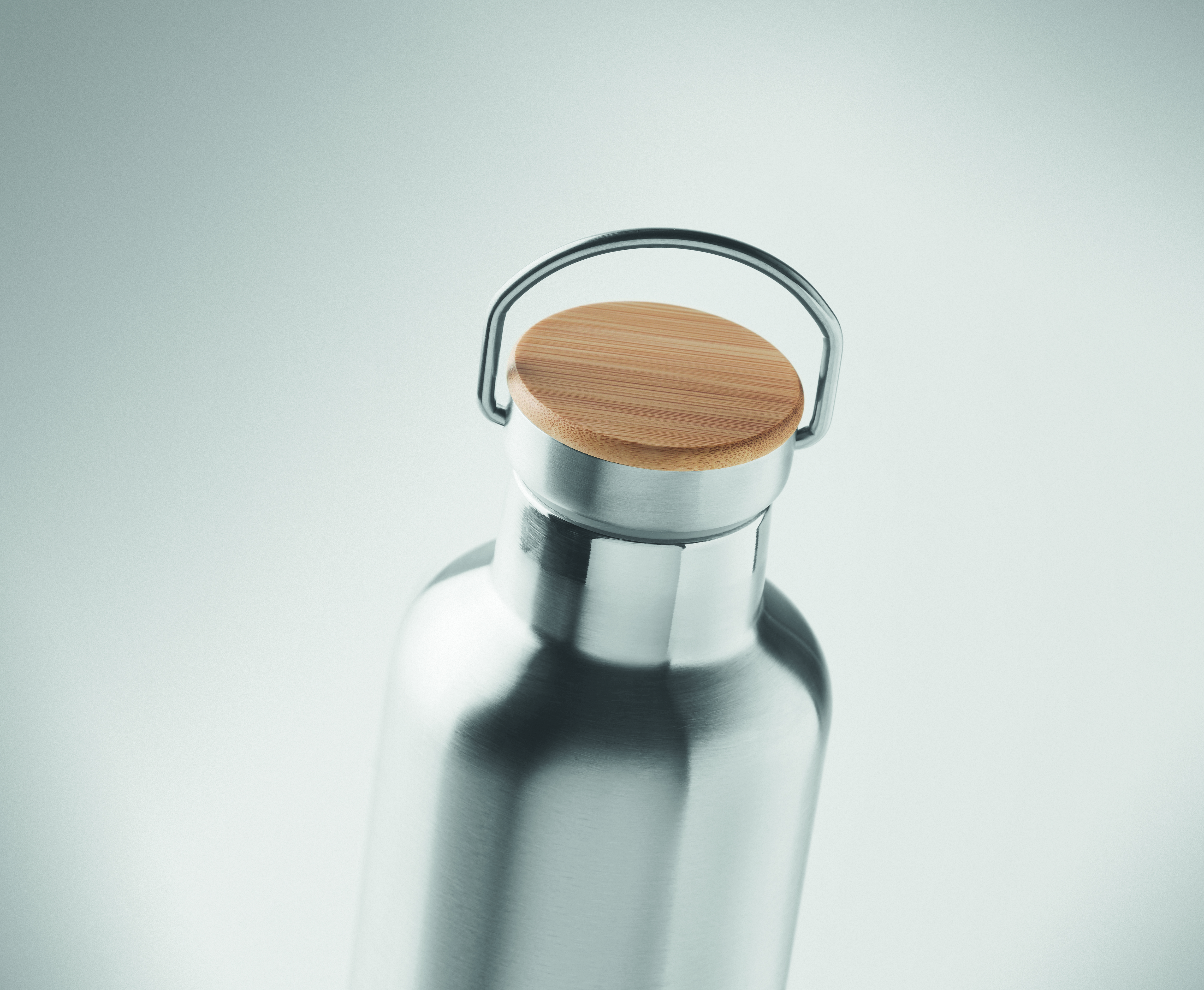 Dwuścienny termos próżniowy z bambusową pokrywą i uchwytem do przenoszenia. Pojemność: 1L. Bambus jest produktem naturalnym, dlatego mogą wystąpić nieznaczne różnice w kolorze, wzorze i rozmiarze.