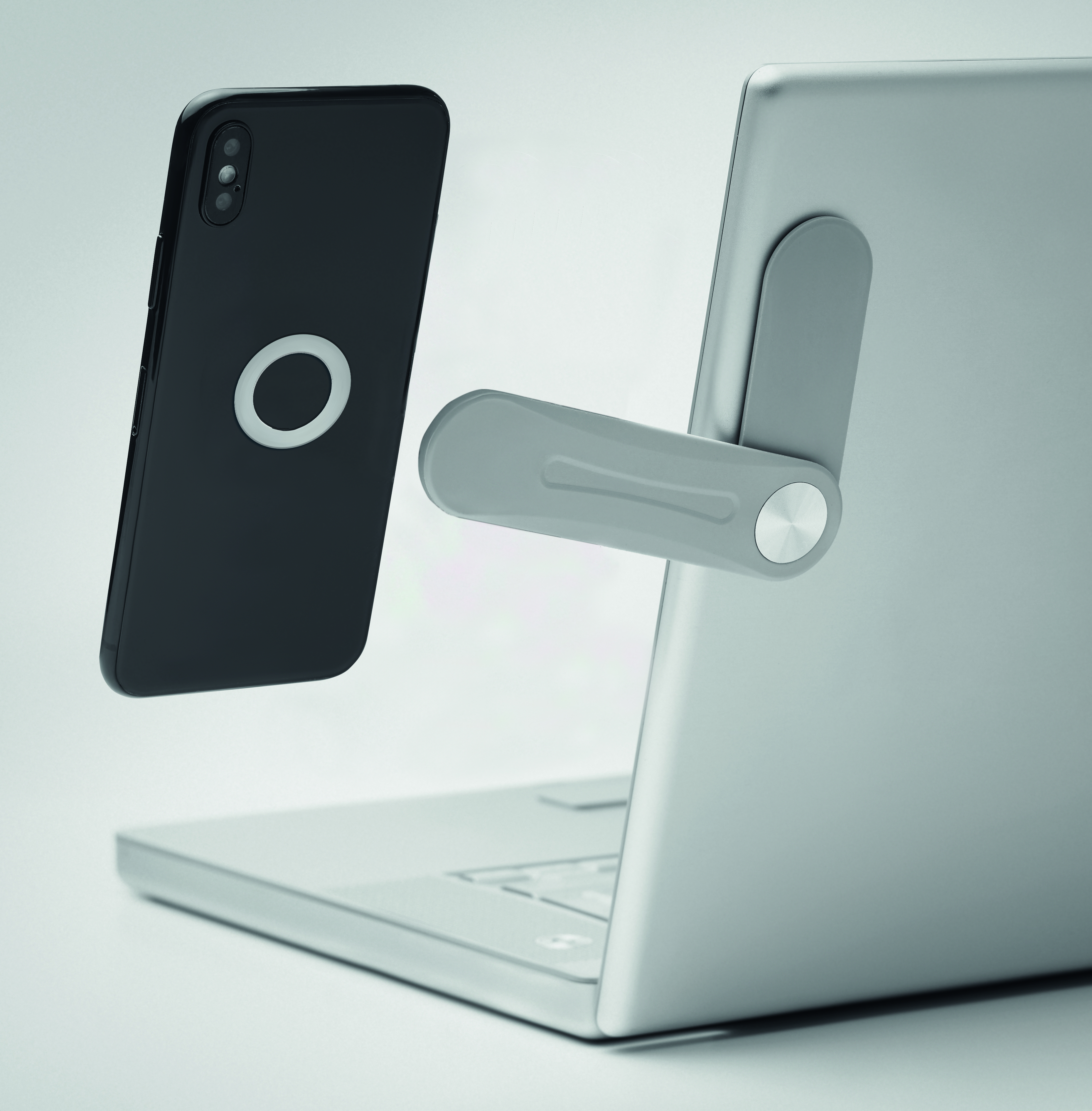 Magnetyczny uchwyt na telefon z ABS z metalowym pierścieniem (naklejka 3M na odwrocie). Możliwość zamocowania na laptopach.