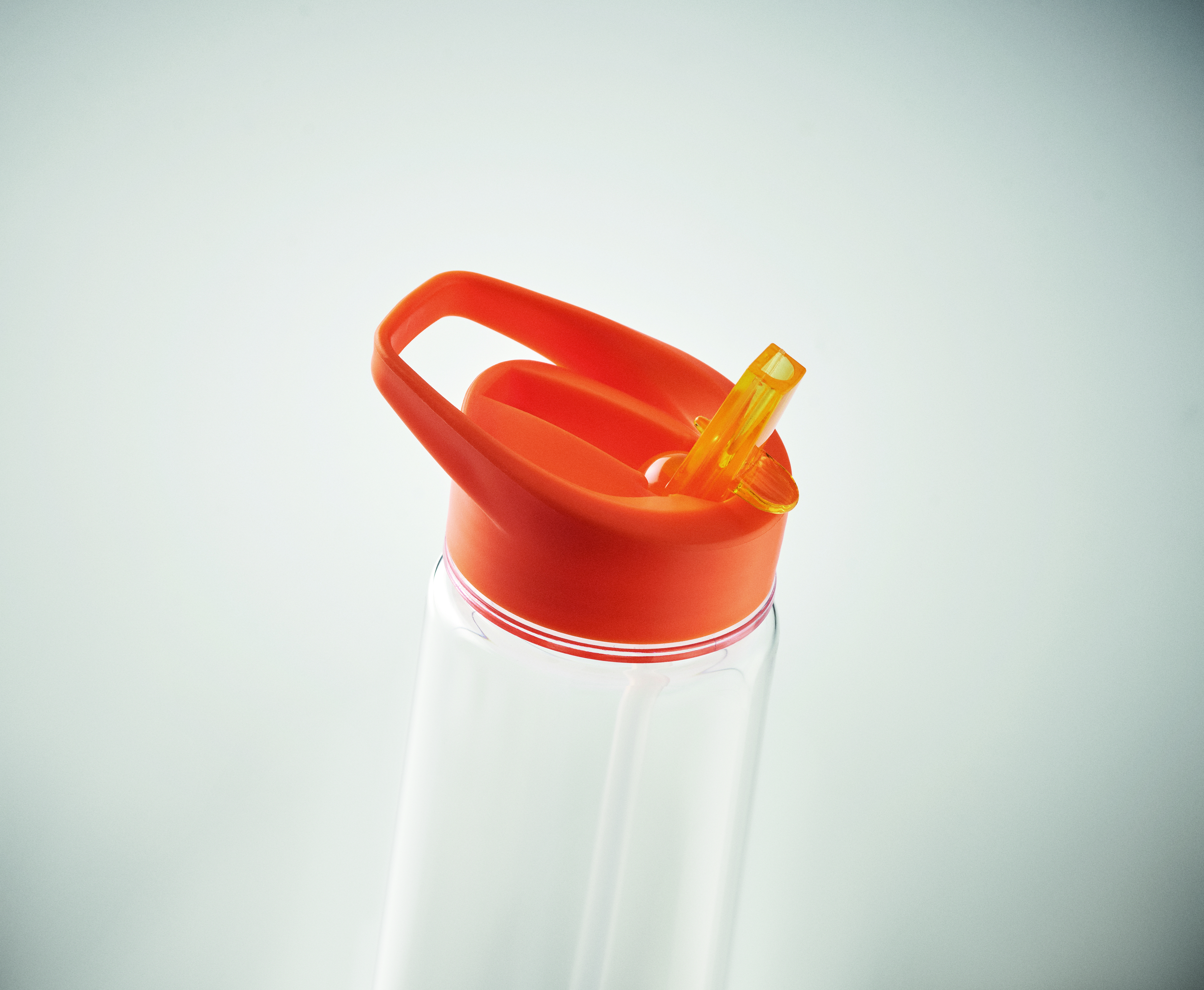 Butelka na napoje z RPET i pokrywką PP flip-top ze słomką. Pojemność: 650ml. Nie nadaje się do napojów gazowanych.