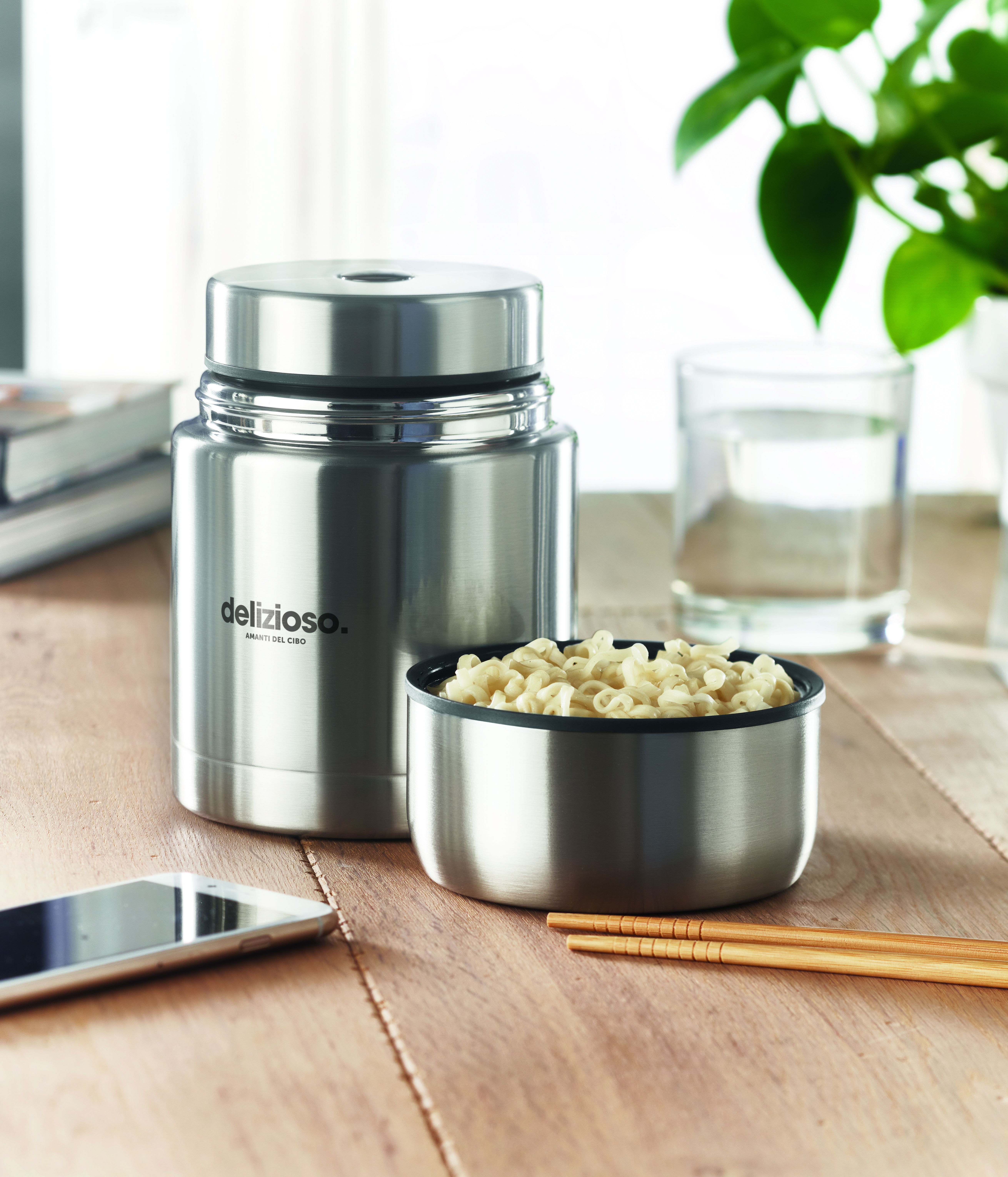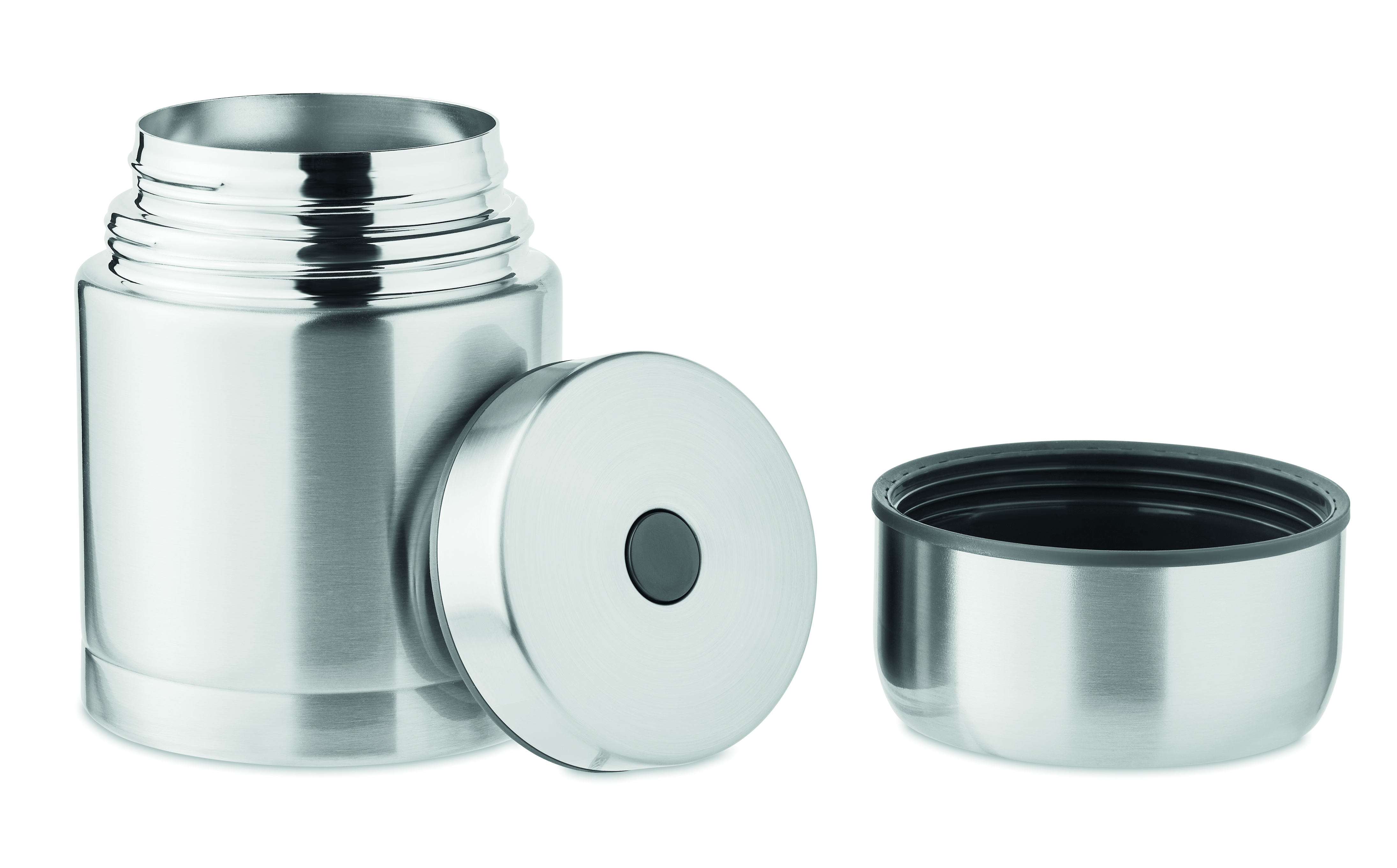 Pojemnik, termos z podwójną ścianką ze stali nierdzewnej z zakręcaną pokrywką. Pojemność: 800ml.