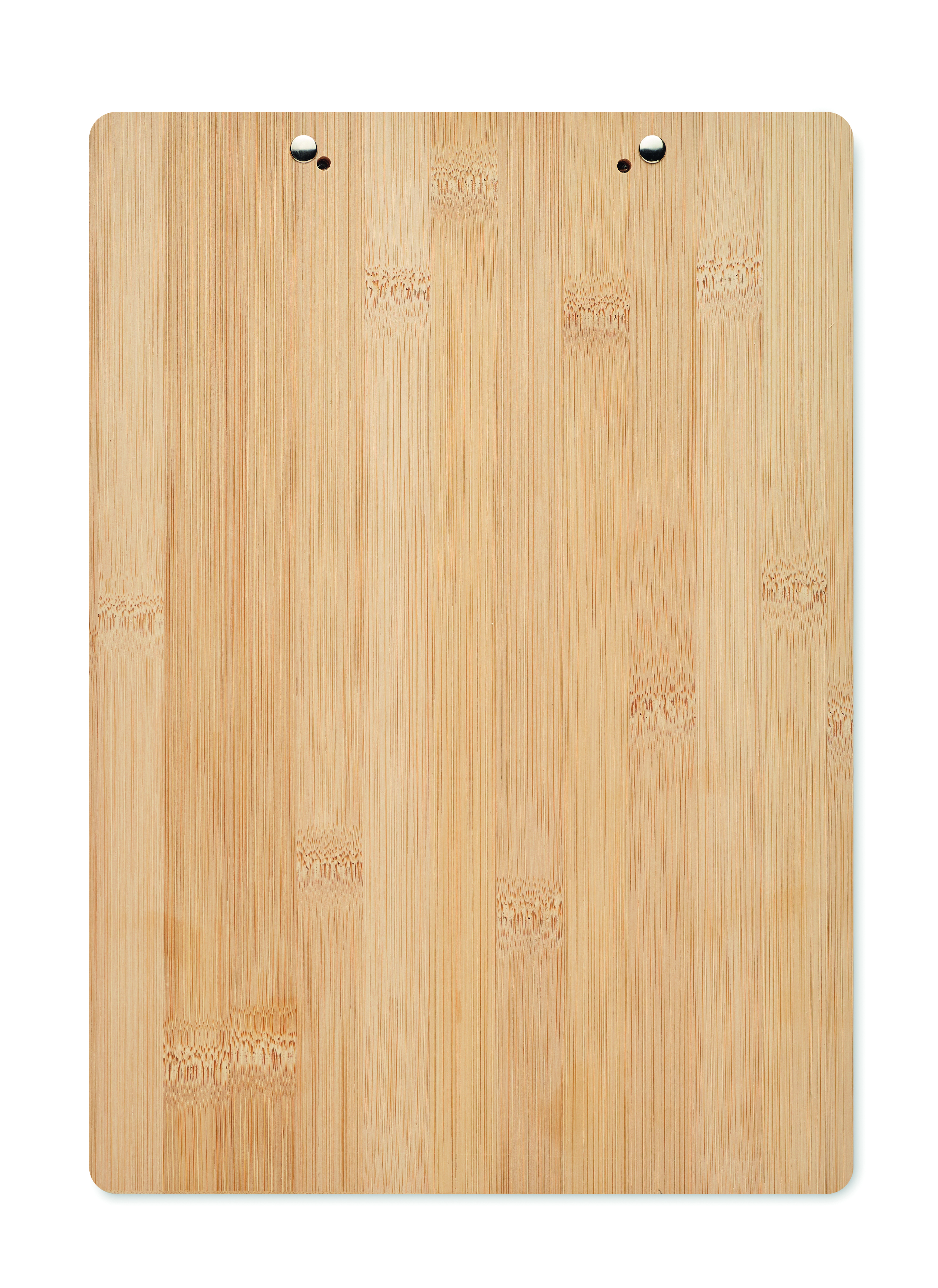 Bambusowa podkładka na dokumenty A4. Ten przydatny, biurowy niezbędnik pozwoli Ci uporządkować wszystkie dokumenty. Bambusowy materiał nadaje naturalny wygląd i czyni podkładkę znacznie lepszą alternatywą dla zwykłych plastikowych. Bambus jest produktem naturalnym, mogą występować niewielkie różnice w kolorze i rozmiarze poszczególnych elementów, co może mieć wpływ na końcowy efekt dekoracji. FSC®-certified | FSC 100%, N5.7, FSC-C213206