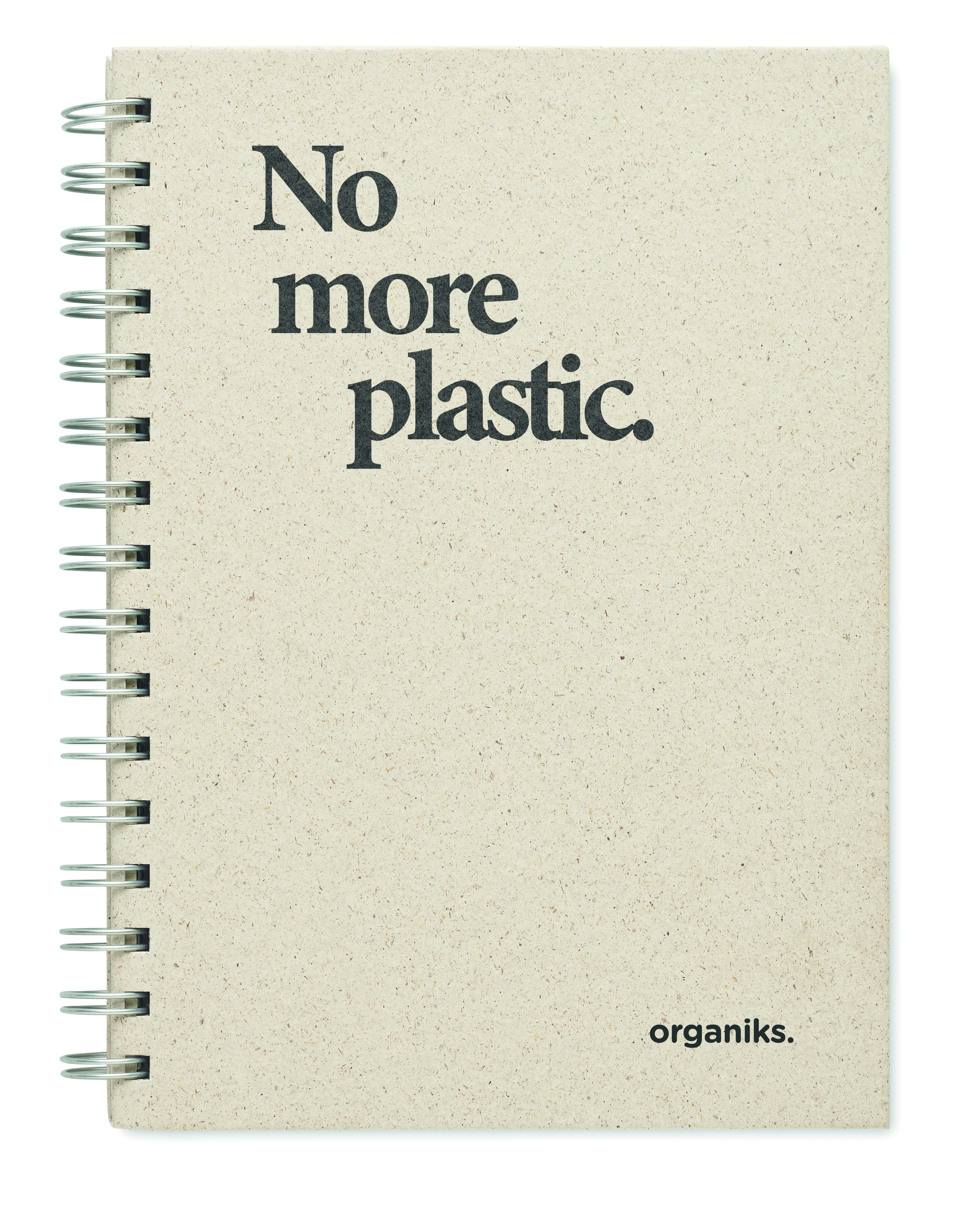 Notatnik A5 z 80 kartkami w kratkę, z kartonową okładką. Idealny na spotkania w biurze lub zajęcia w szkole. Papier z trawy to doskonały i świadomy upominek promocyjny. Proces produkcji jest zrównoważony od początku do końca i bardziej przyjazny dla środowiska niż tradycyjny papier drewnopochodny. Wyprodukowano w UE.