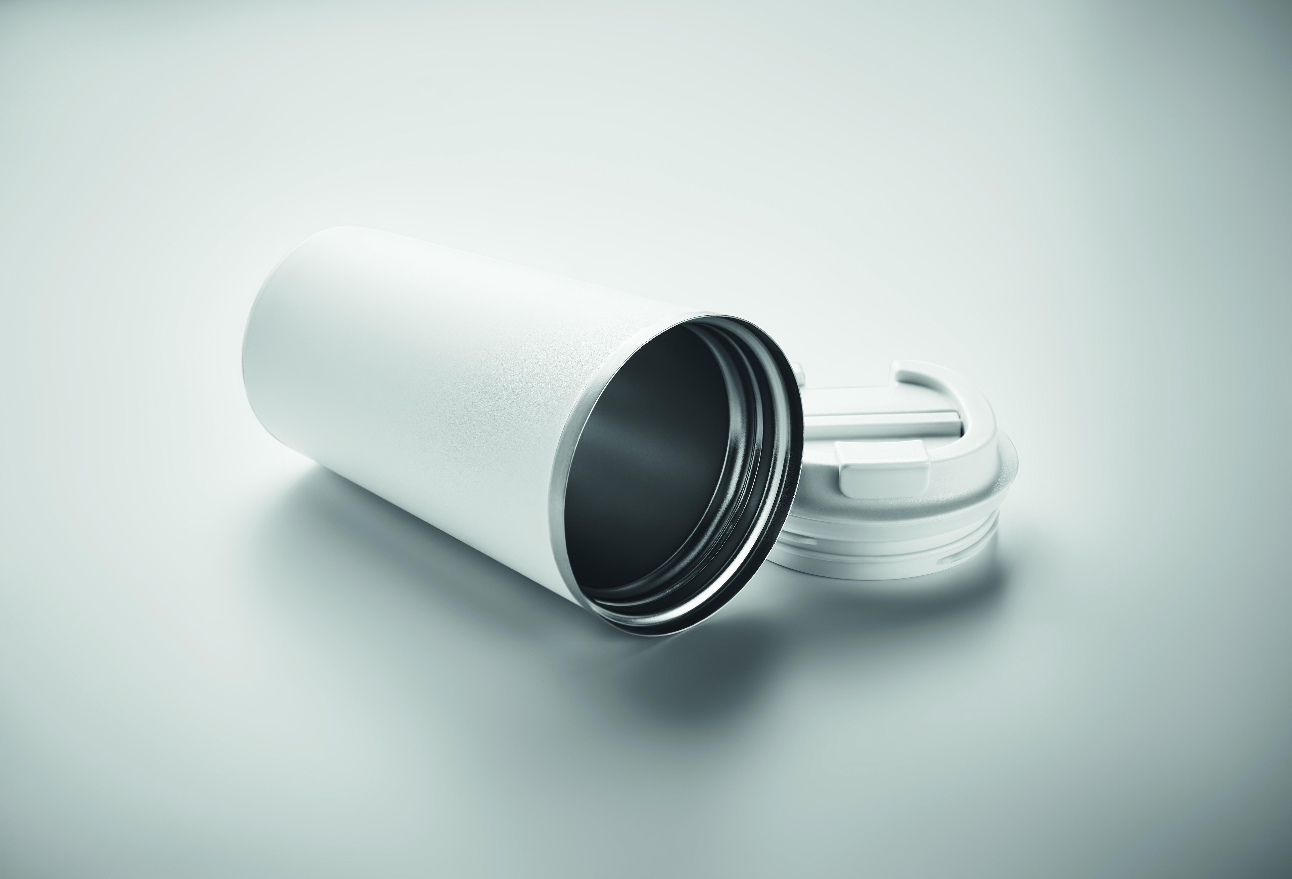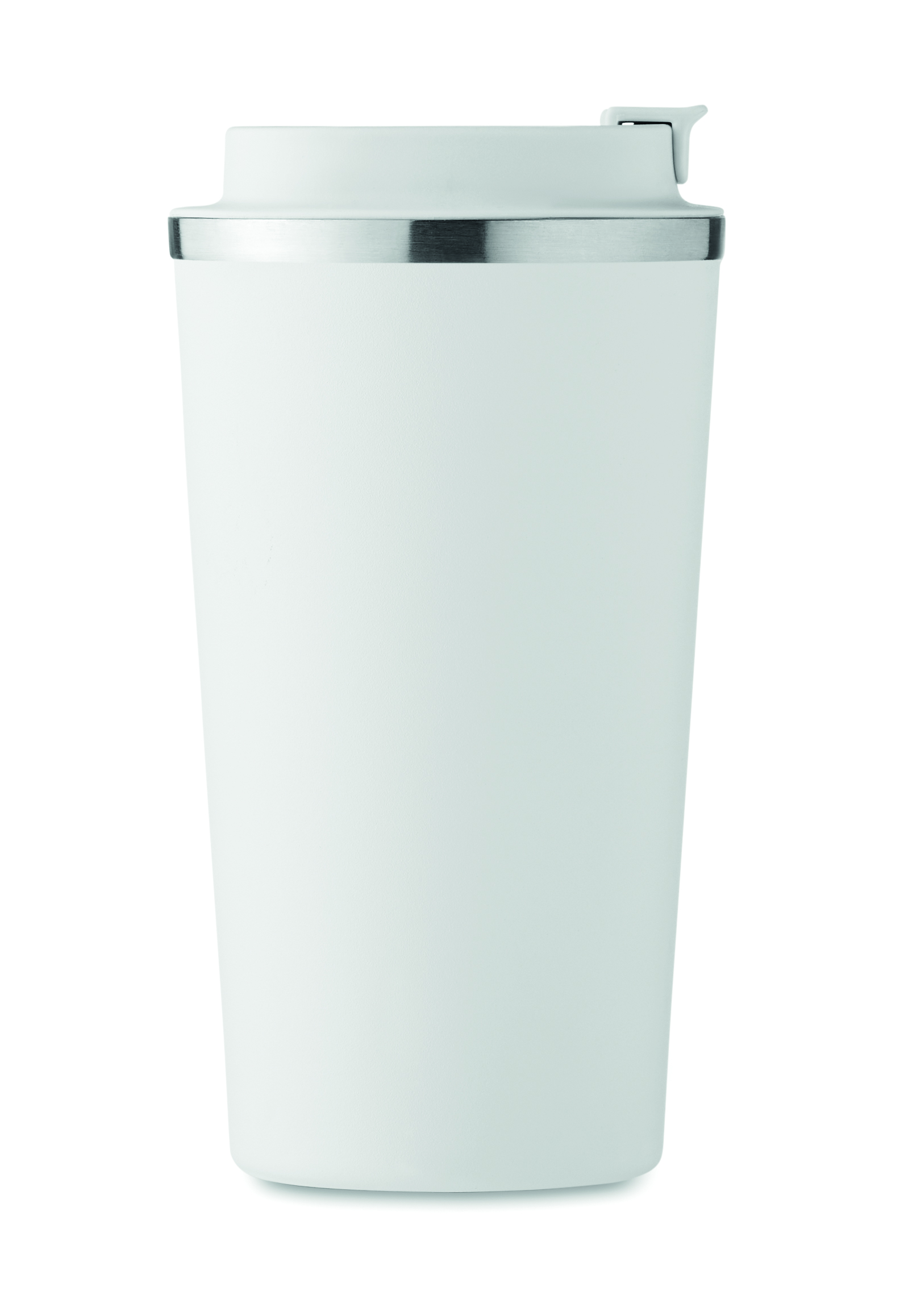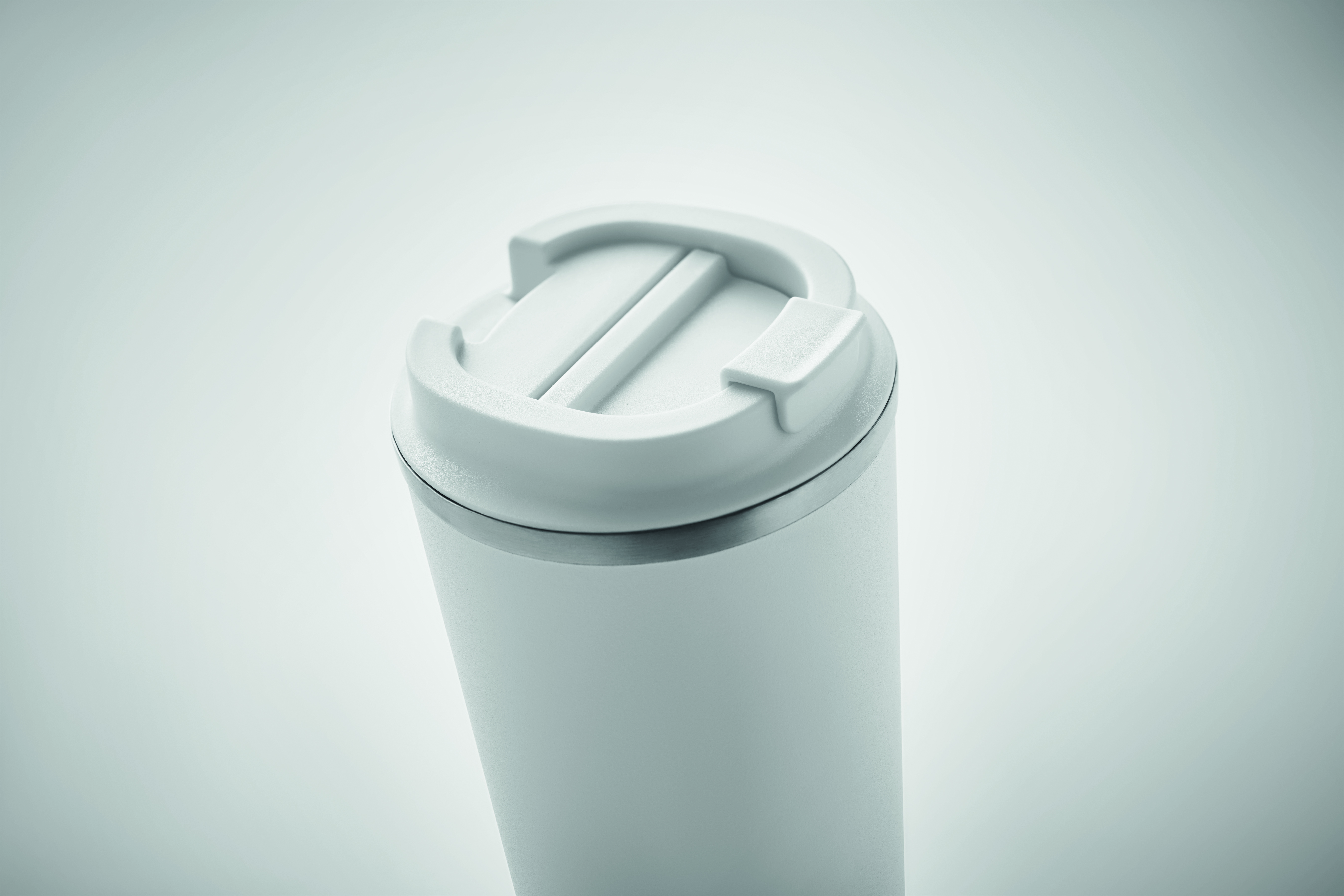Kubek z podwójnymi ściankami z recyklingowanej stali nierdzewnej (90% z recyklingowanej stali nierdzewnej i 10% ze stali nierdzewnej) i pokrywką z PP. Pojemność: 510 ml. Nie przecieka.
