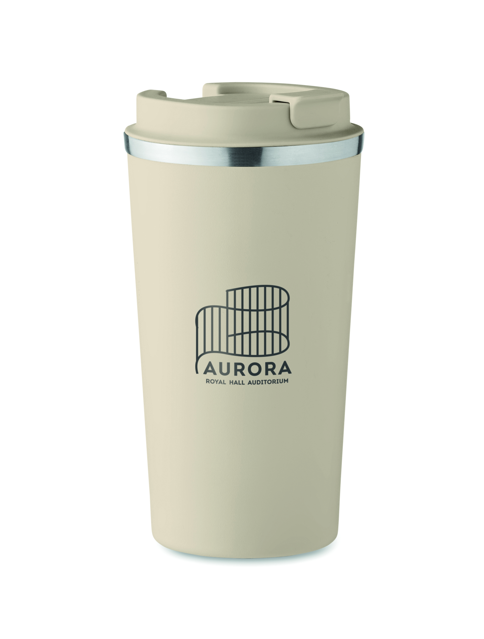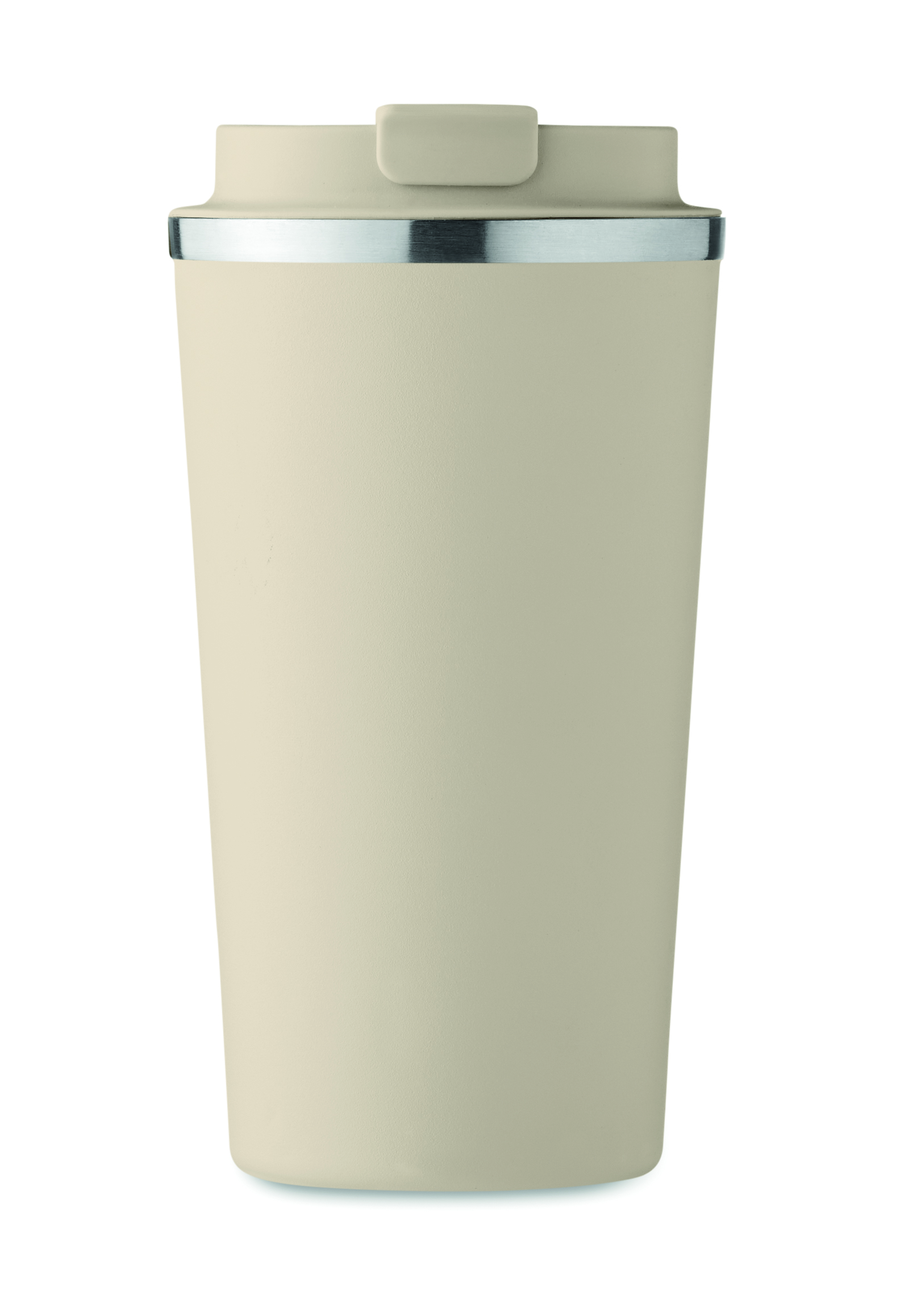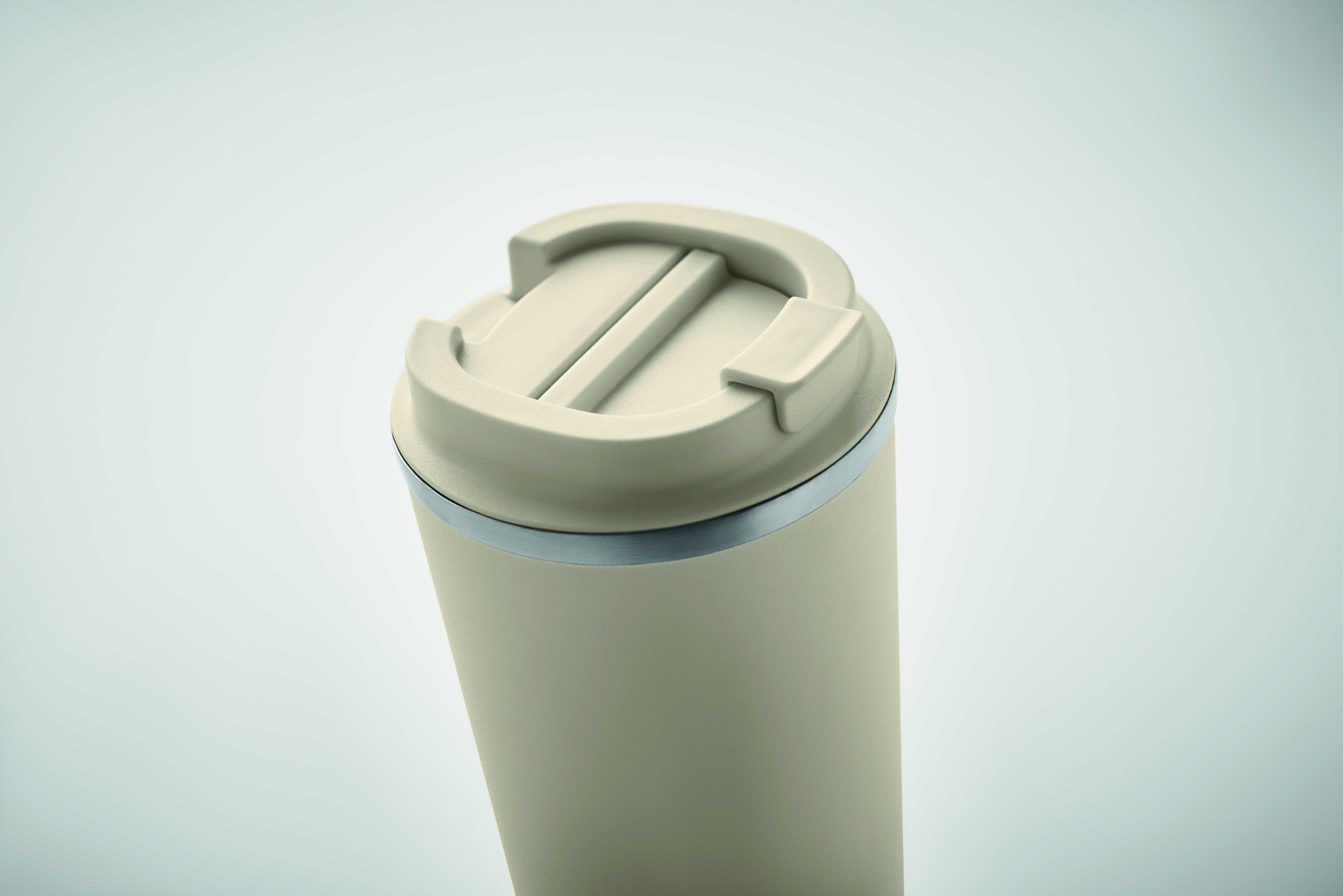 Kubek z podwójnymi ściankami z recyklingowanej stali nierdzewnej (90% z recyklingowanej stali nierdzewnej i 10% ze stali nierdzewnej) i pokrywką z PP. Pojemność: 510 ml. Nie przecieka.