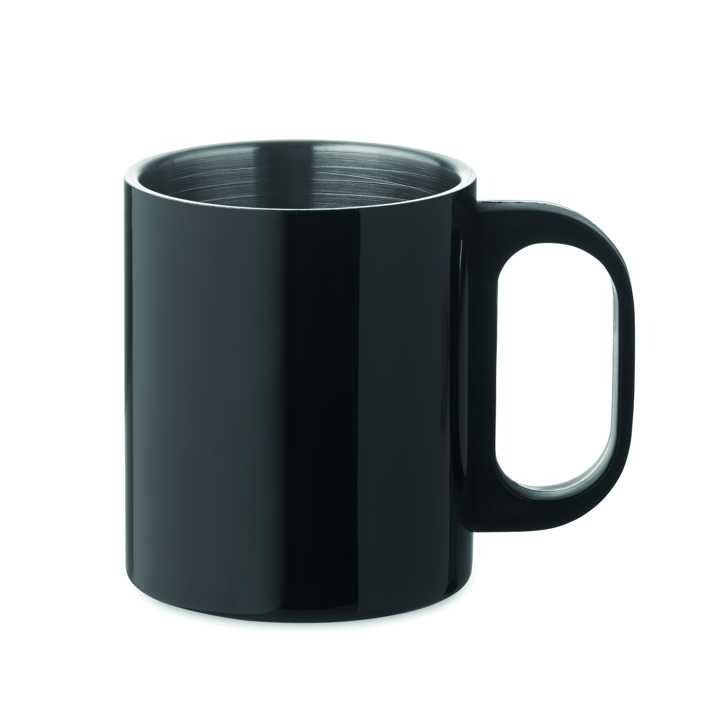 Kubek z podwójną ścianką ze stali nierdzewnej z uchwytem z PP. Pojemność: 300 ml.