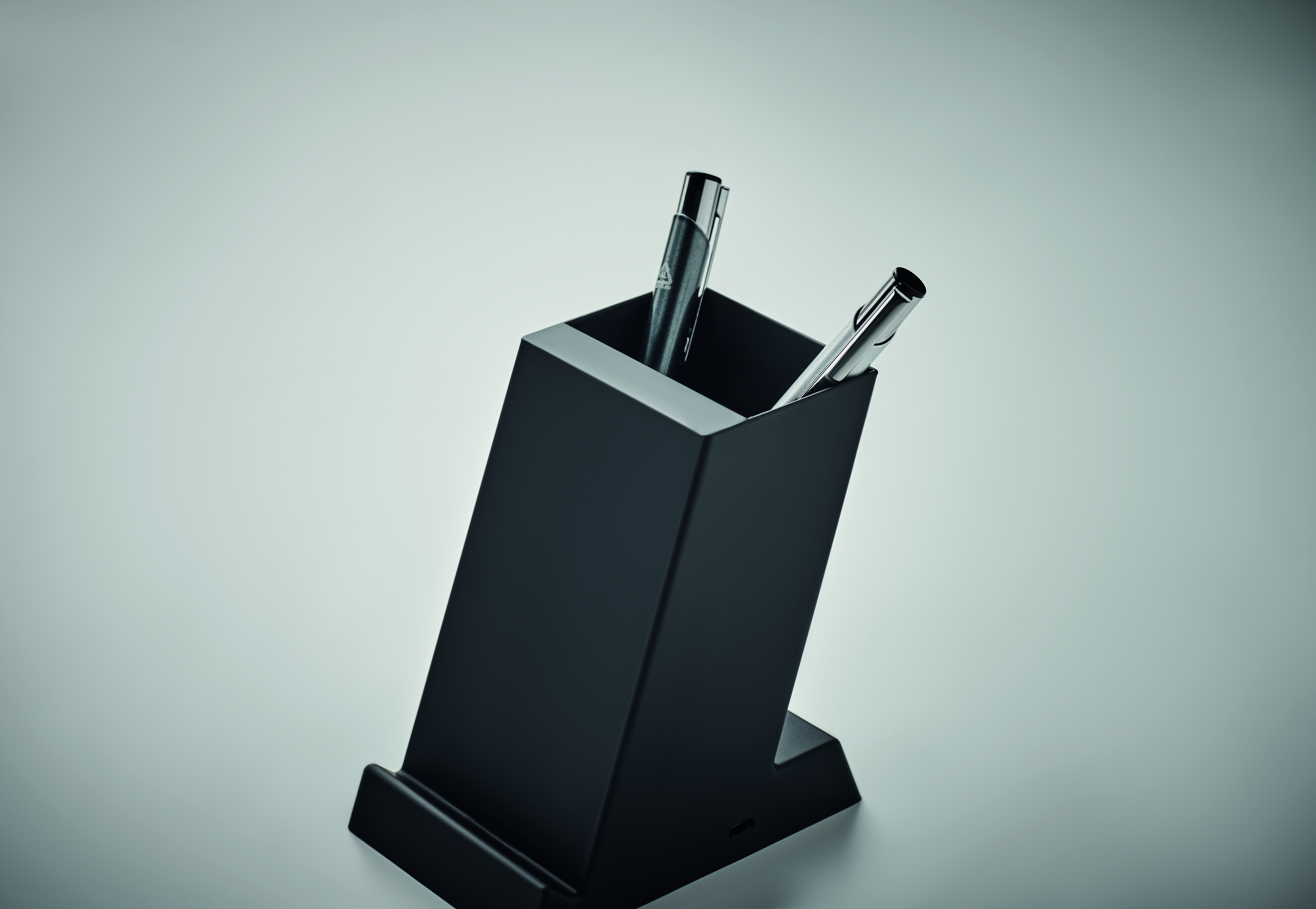 Ładowarka bezprzewodowa 15W z podwójną cewką i uchwytem na długopis z tworzywa ABS. Wyjście: DC 9V/1.67A (15W) do szybkiego ładowania. 1 port USB-A wyjście zasilania.