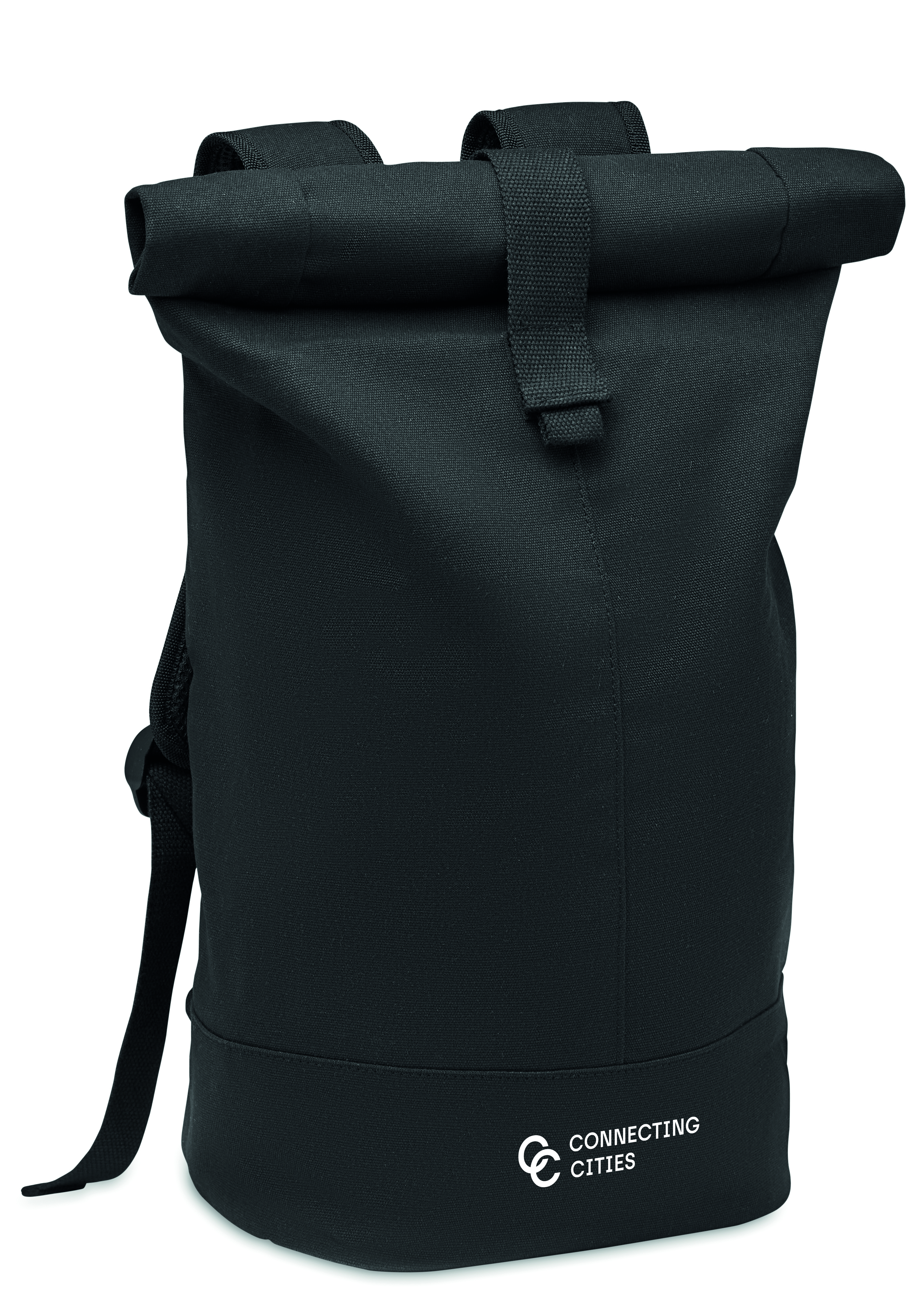 Plecak typu rolltop z wysokiej jakości 340 gr/m² płótna z wyściełanym wzmocnieniem pleców. Podszewka wykonana z RPET 210D.