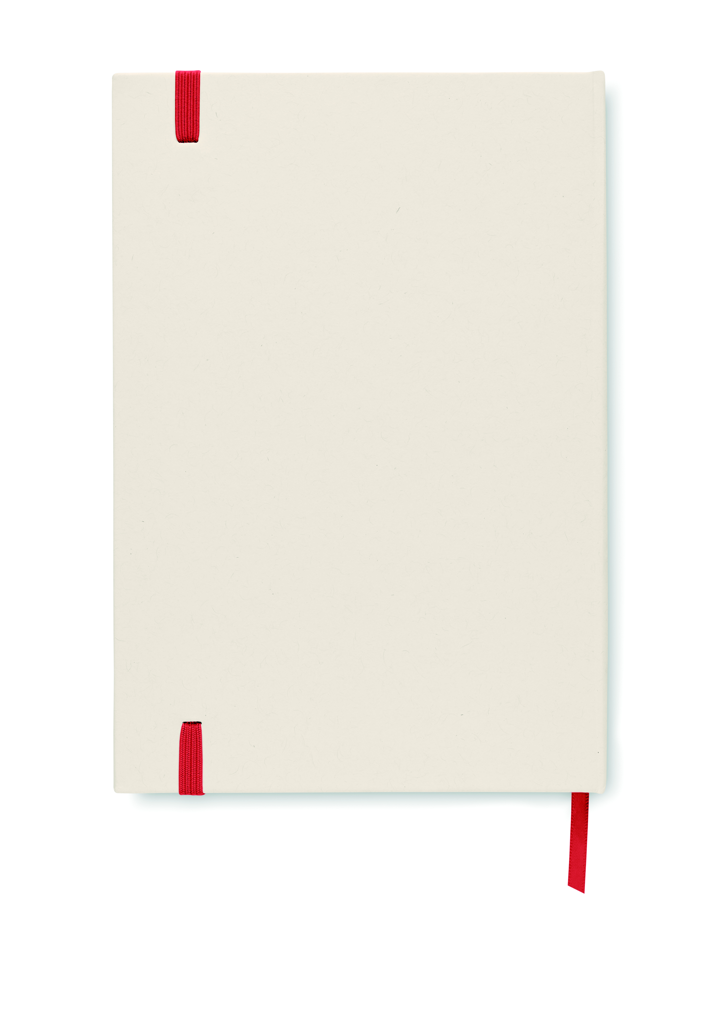 Zeszyt A5 z twardą okładką i 160 stronami w linie (80 kartek 80 g/m²) wykonany w 70% z kartonów po mleku i w 30% z papieru z recyklingu. Elastyczny pasek zamykający, zakładka z tasiemki.