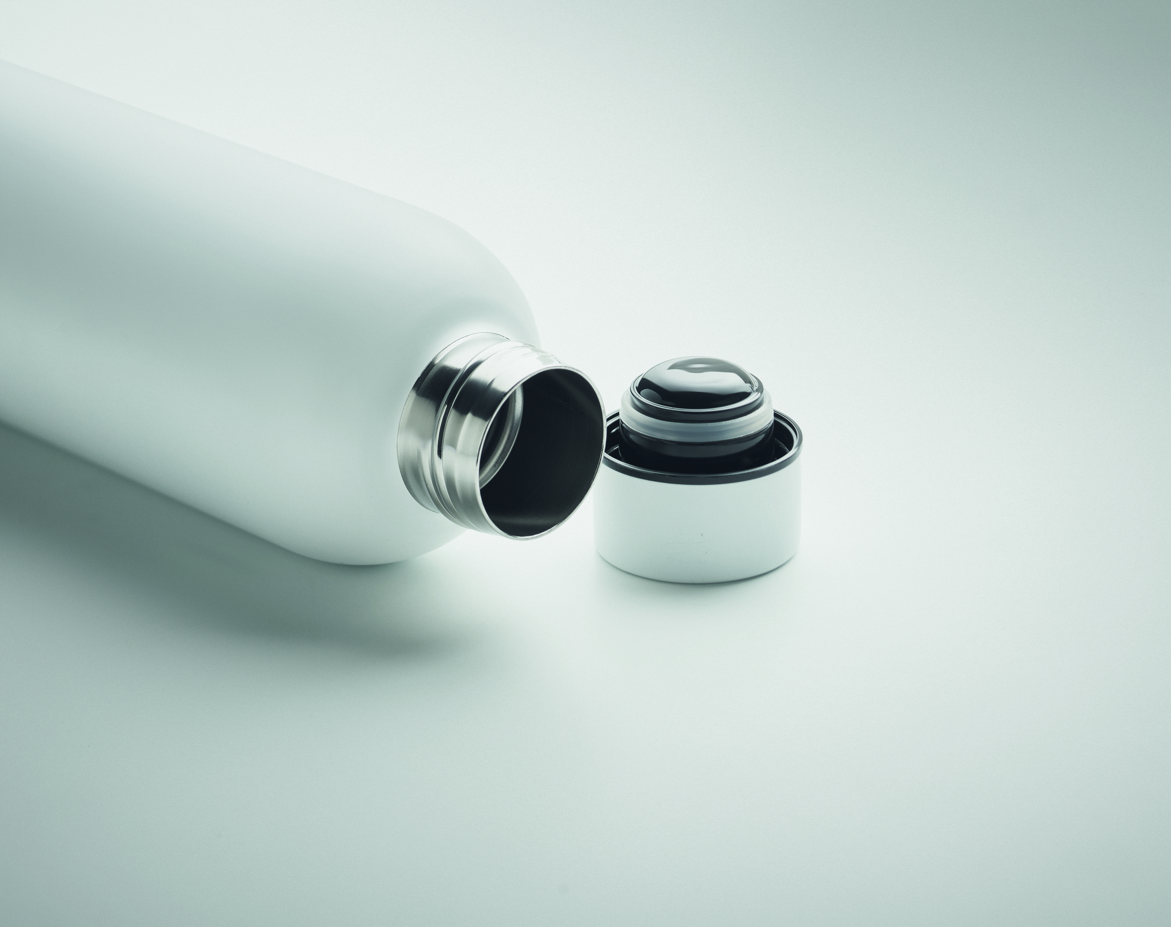 Dwuścienna, izolacyjna butelka próżniowa z recyklingowanej stali nierdzewnej. Pojemność 500 ml. Nie przecieka.
