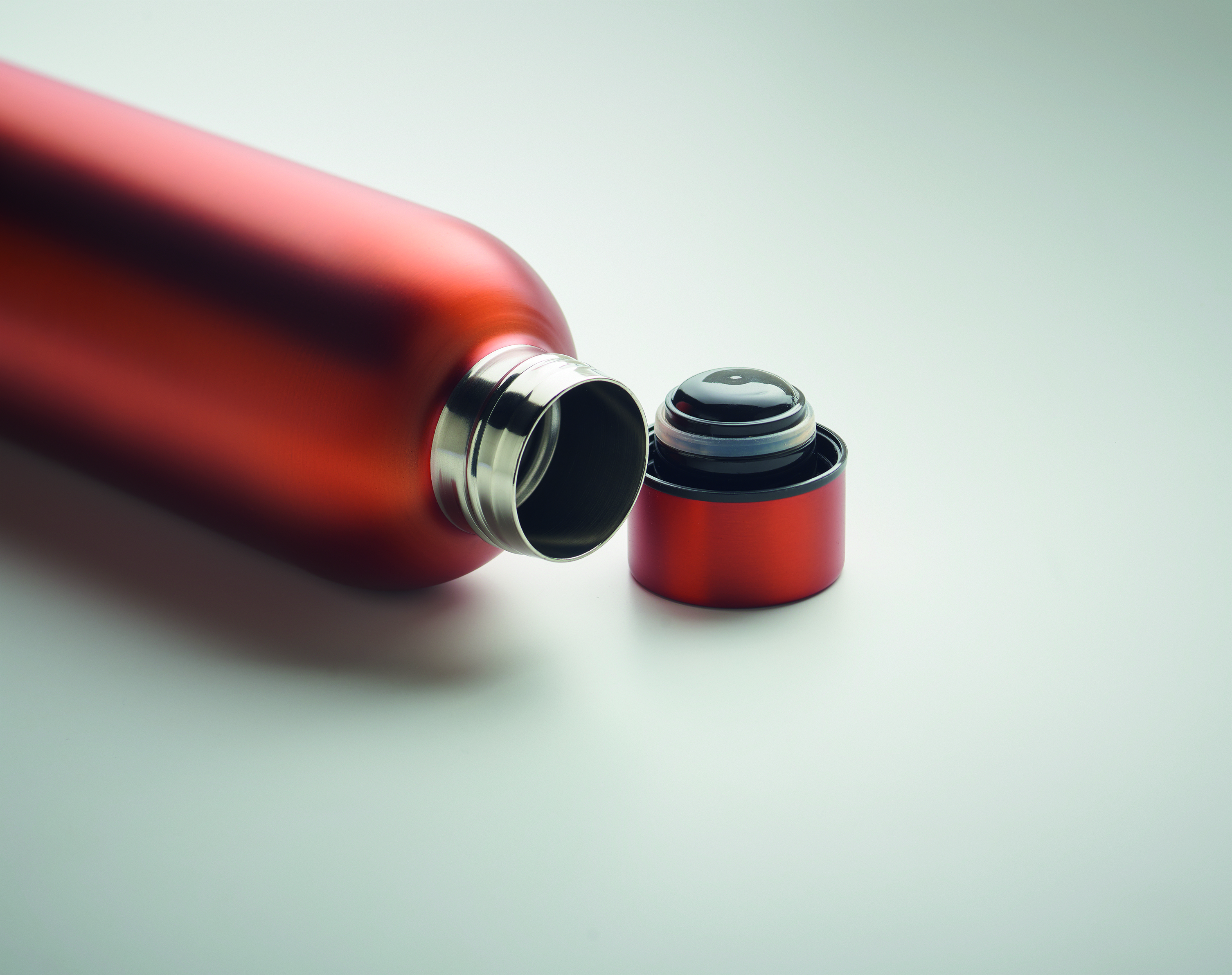 Dwuścienna, izolacyjna butelka próżniowa z recyklingowanej stali nierdzewnej. Pojemność 500 ml. Nie przecieka.
