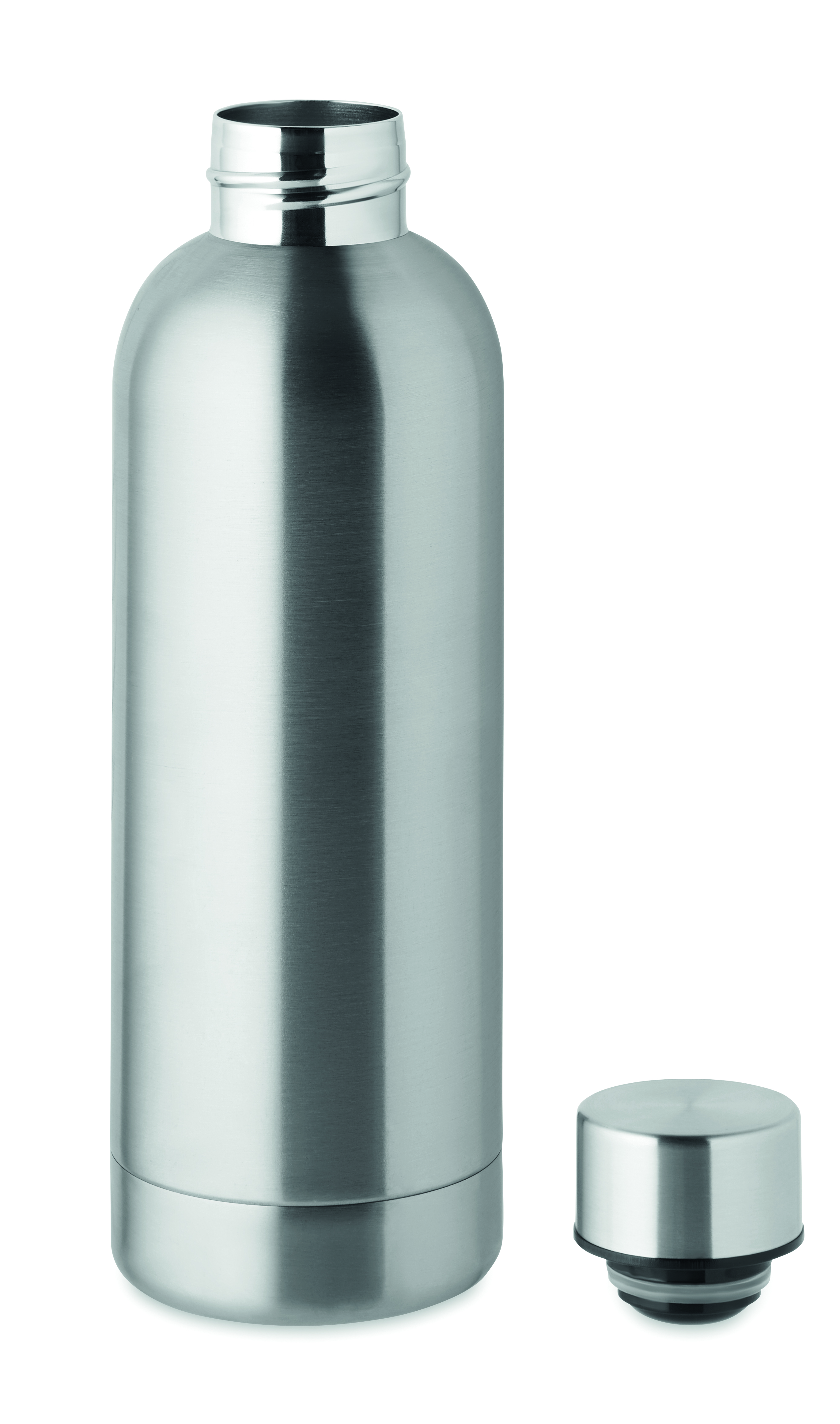 Dwuścienna, izolacyjna butelka próżniowa z recyklingowanej stali nierdzewnej. Pojemność 500 ml. Nie przecieka.