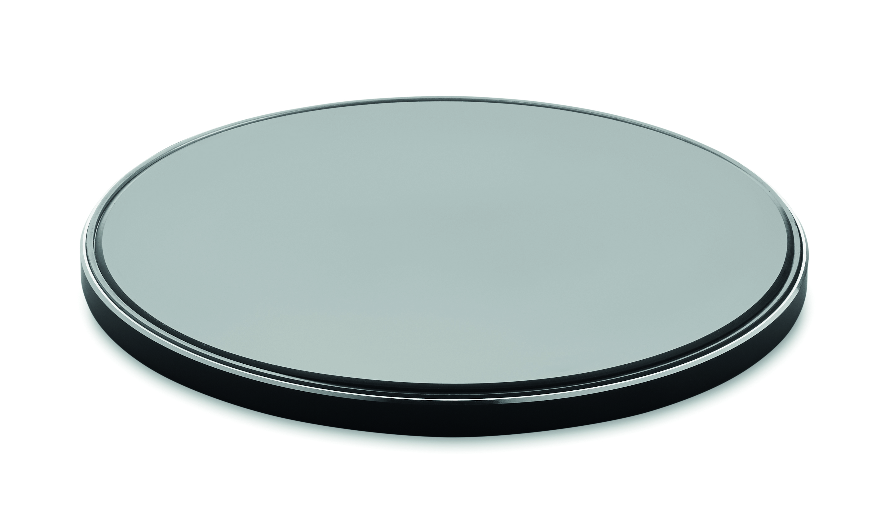 Ładowarka bezprzewodowa 10W ze szklaną powierzchnią. Niebieskie światło podczas ładowania. Wyjście: DC 9V/1.1A. Kompatybilna z najnowszymi androidami, iPhone® 8, X i nowszymi.