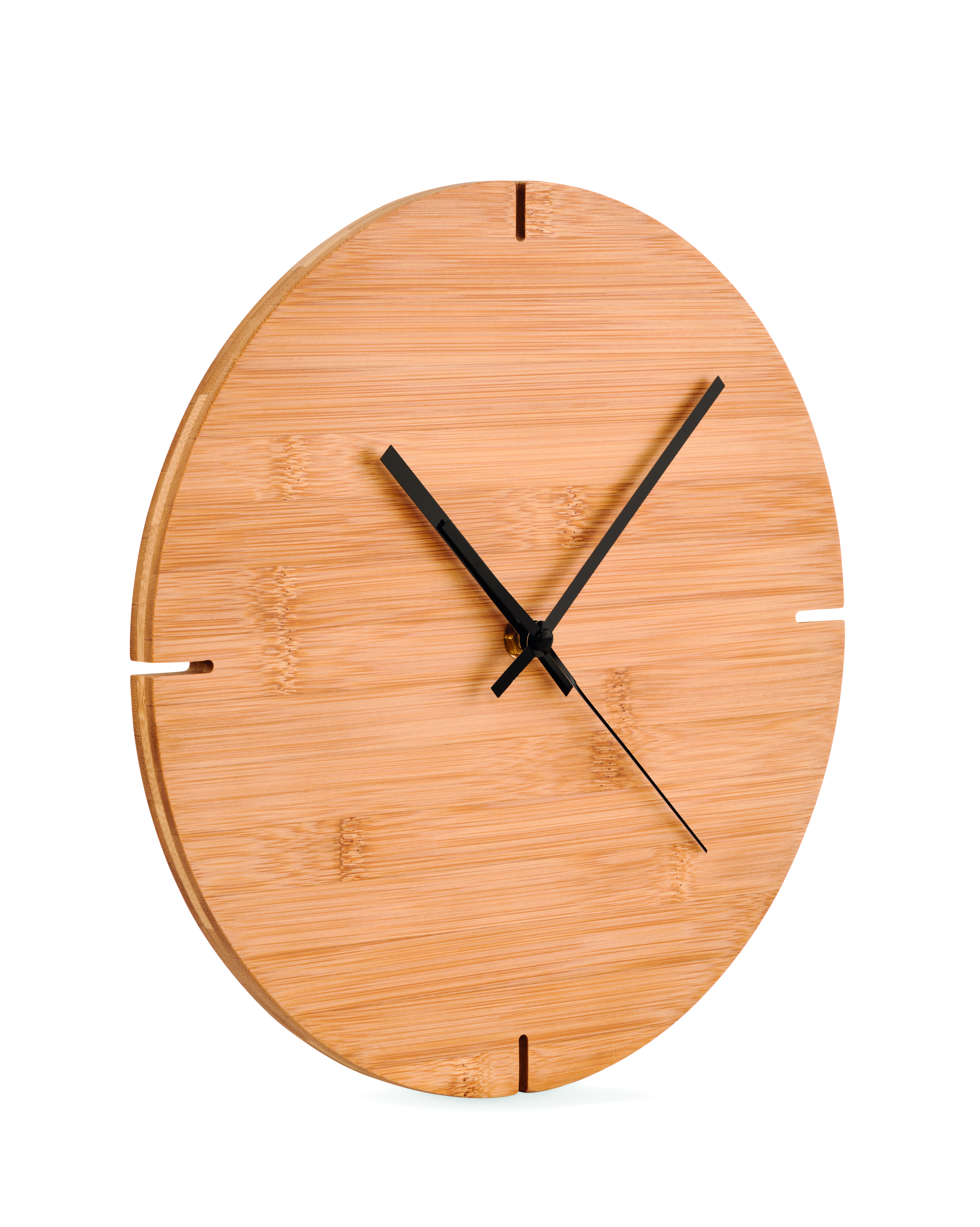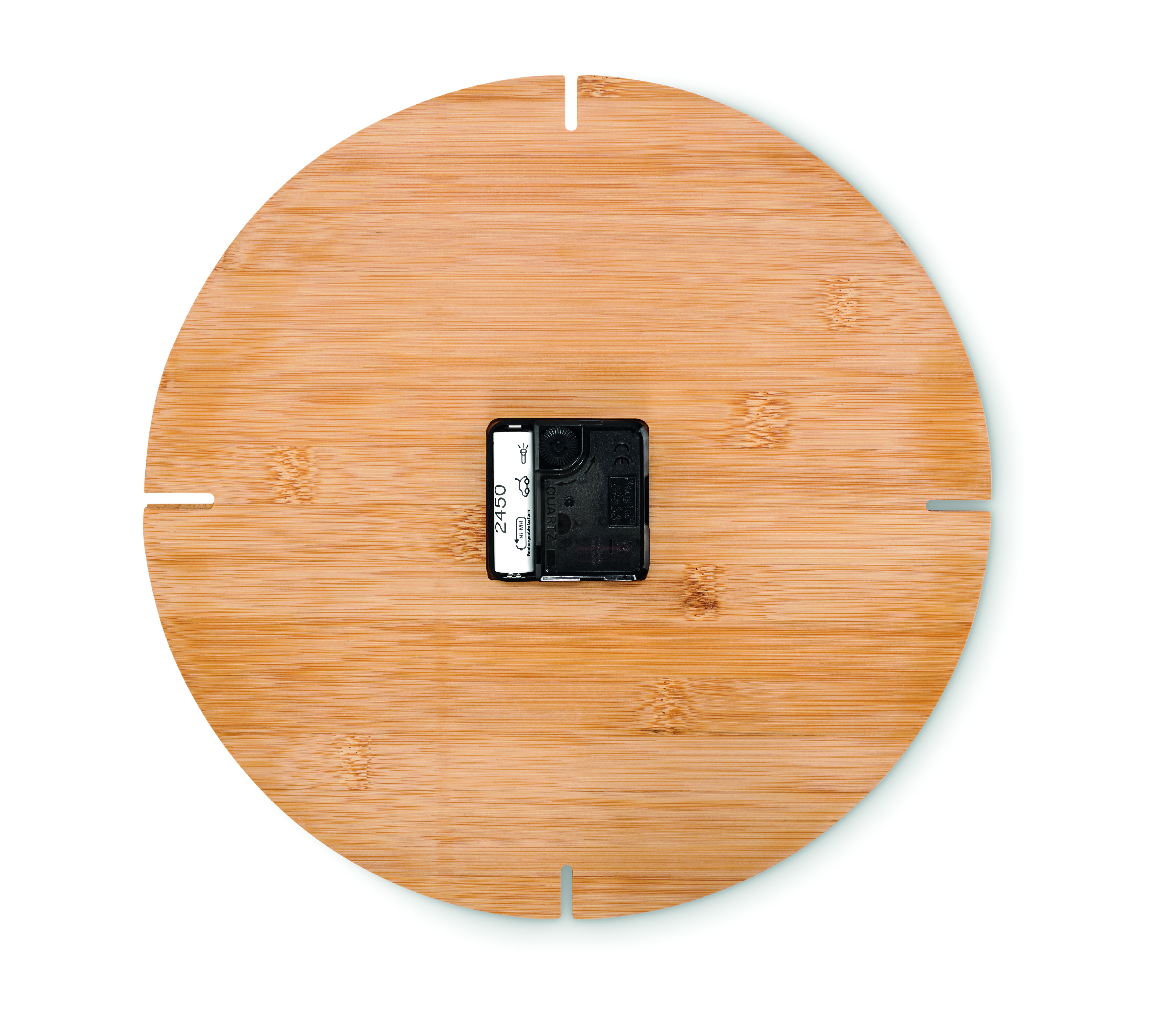 Bambusowy zegar ścienny. Wymagana 1 bateria AA. Bateria nie jest dołączona. Bambus jest produktem naturalnym, dlatego mogą wystąpić nieznaczne różnice w kolorze, wzorze i rozmiarze.