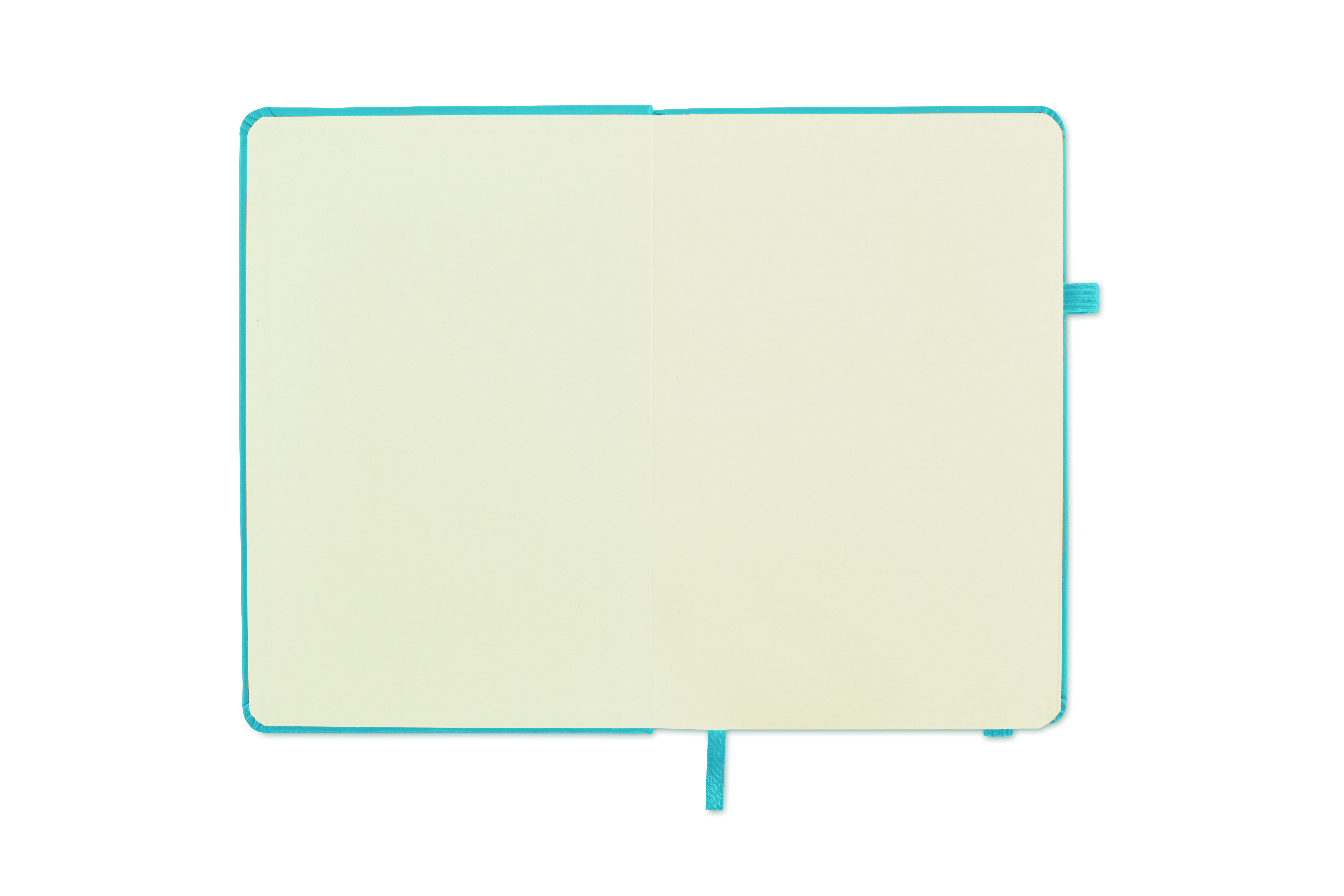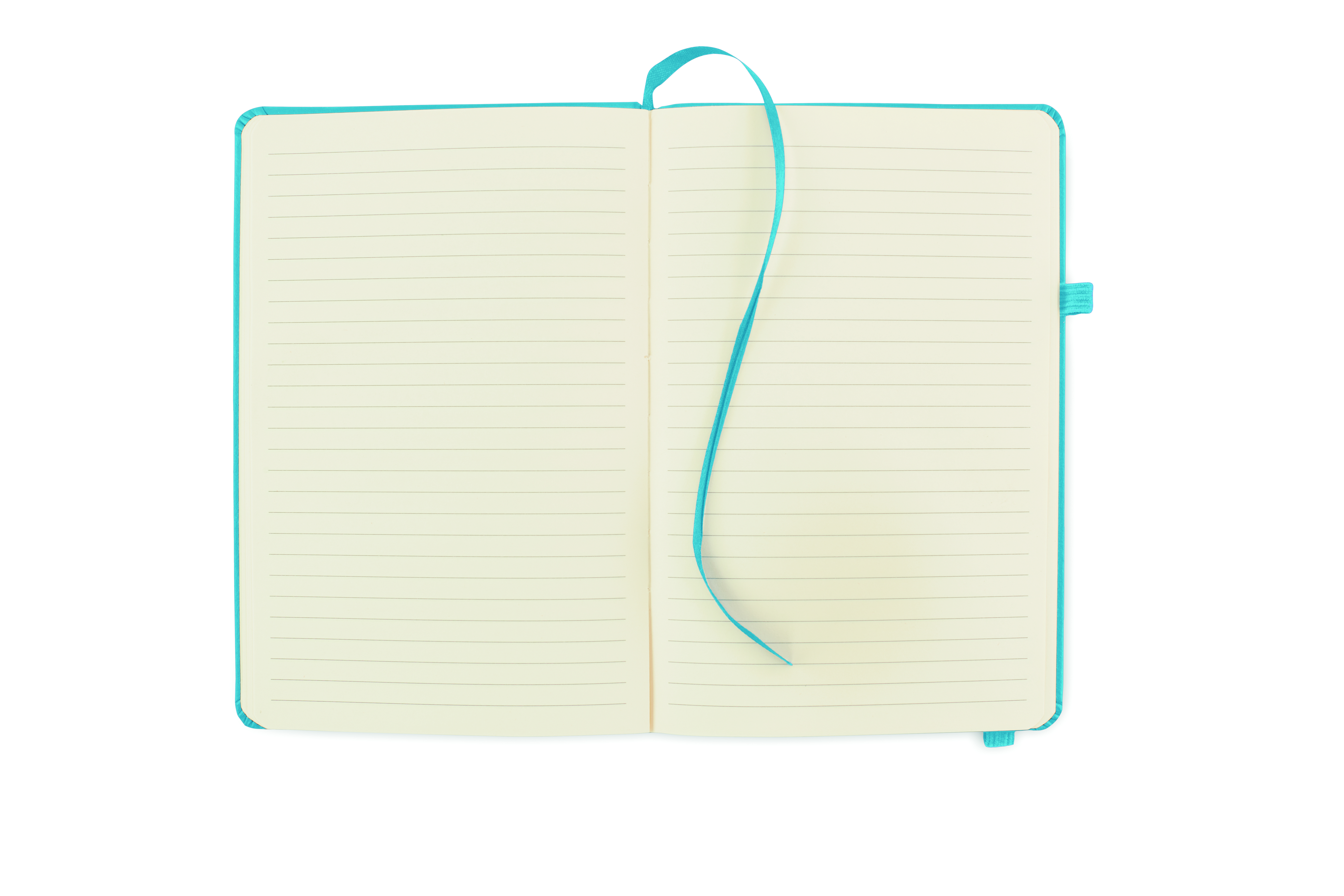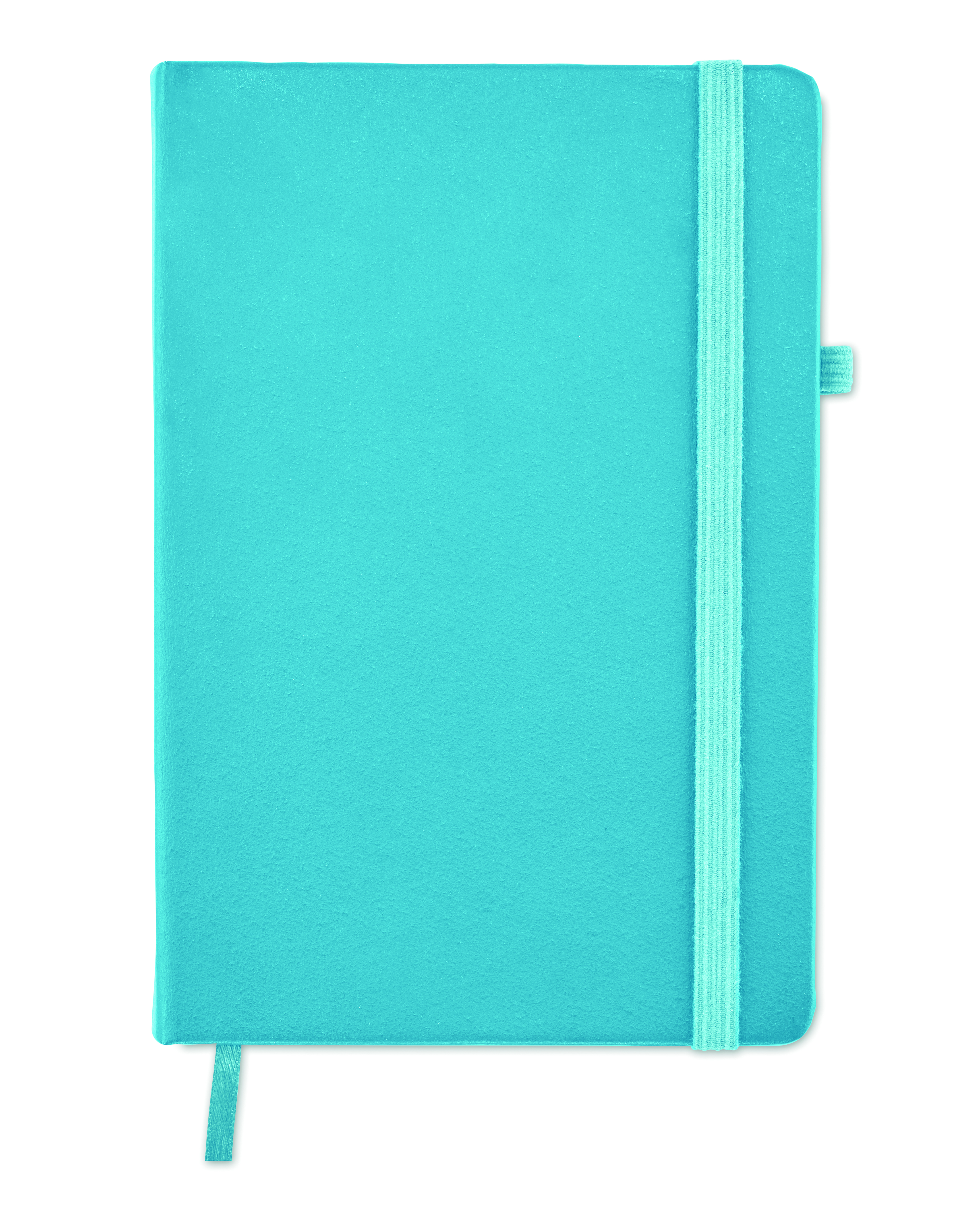 Notatnik A5 z okładką wykonaną w 70% ze skóry pochodzącej z recyklingu i w 30% z lateksowego PU. Obwoluta. 192 stron w linie na papierze z recyklingu (96 arkuszy). Dopasowany elastyczny bawełniany pasek i uchwyt na długopis.