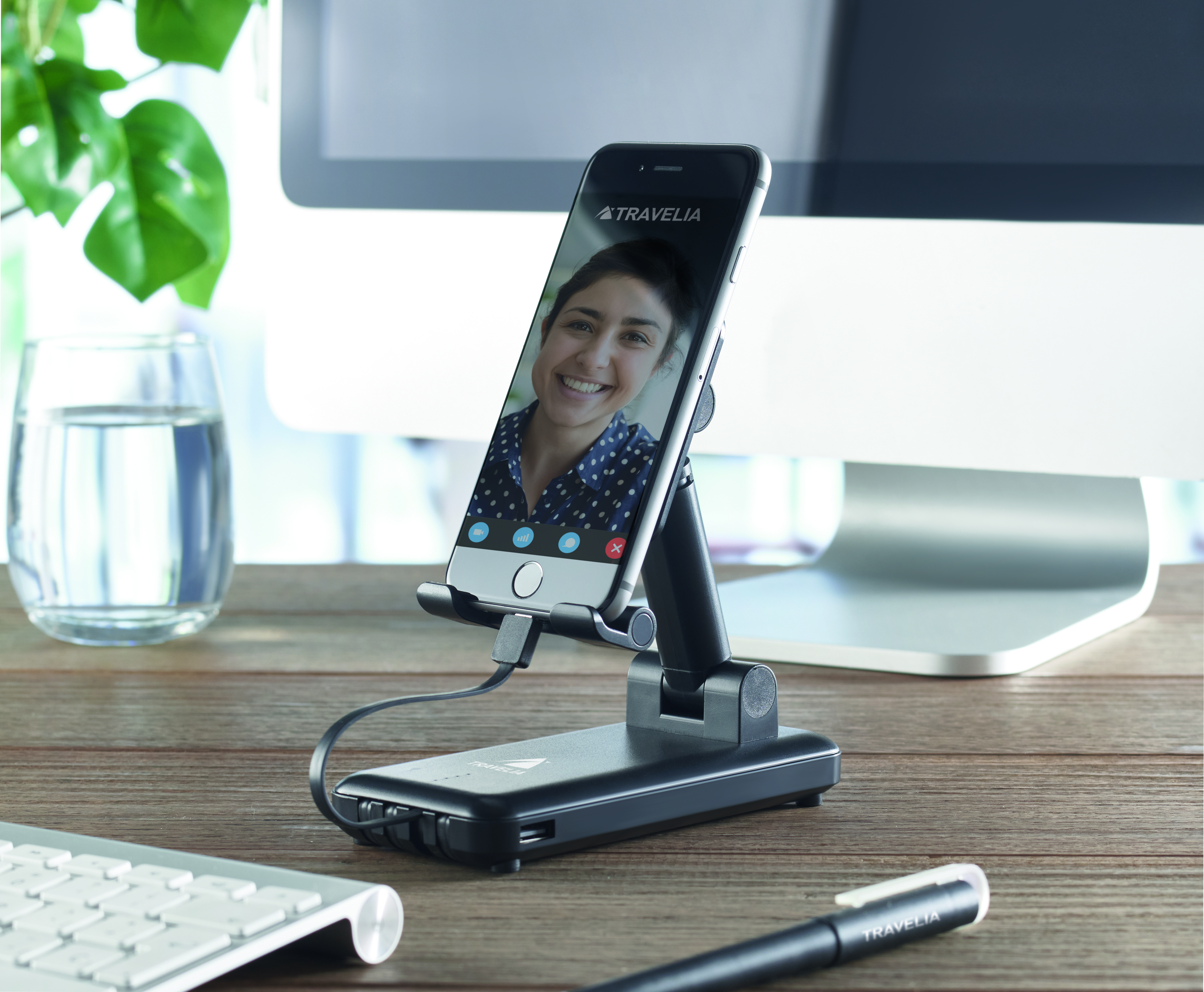 Power bank 10000 mAh z ABS z wysuwanym i składanym uchwytem na telefon. Zintegrowane kable. Wyjście: DC 5V/2A.
