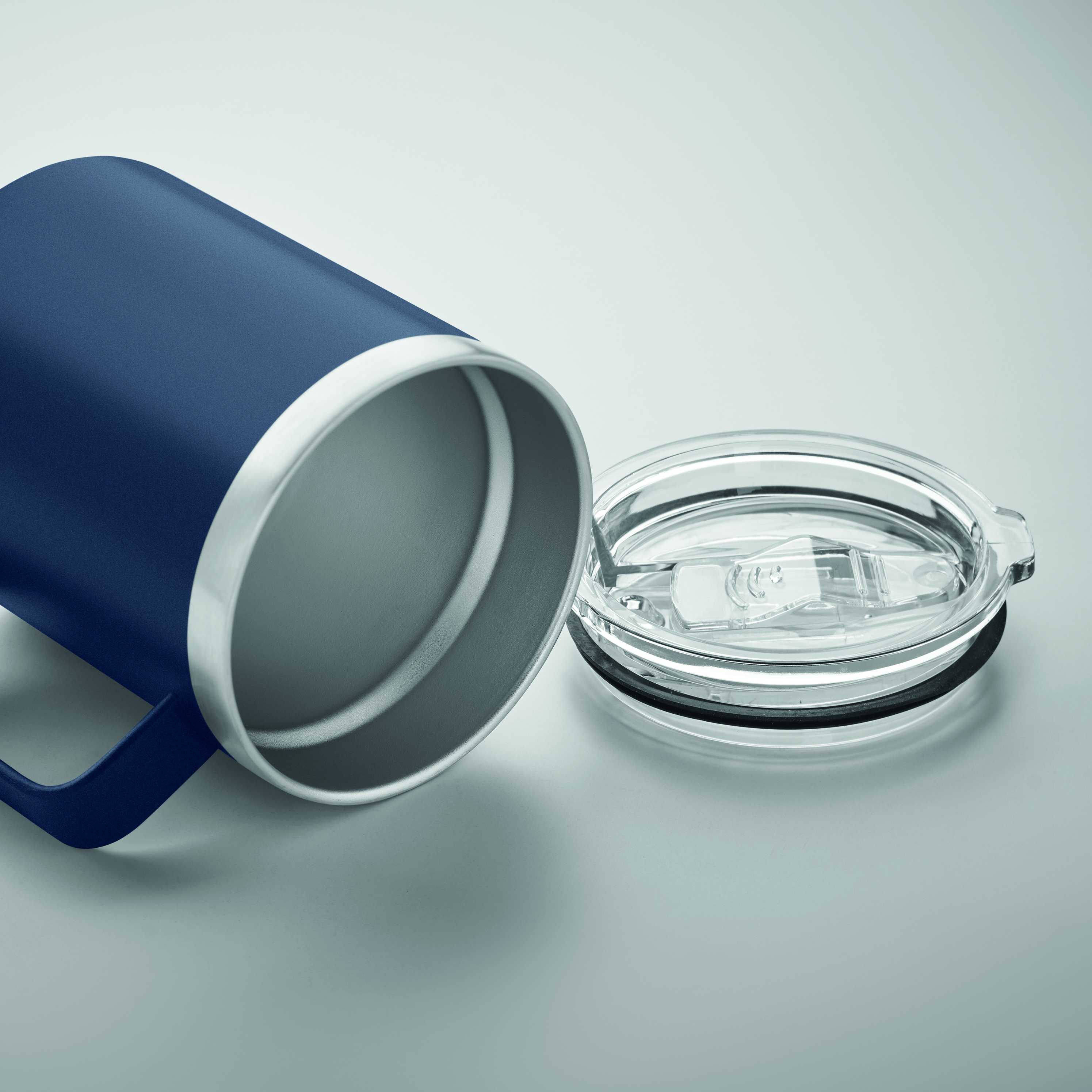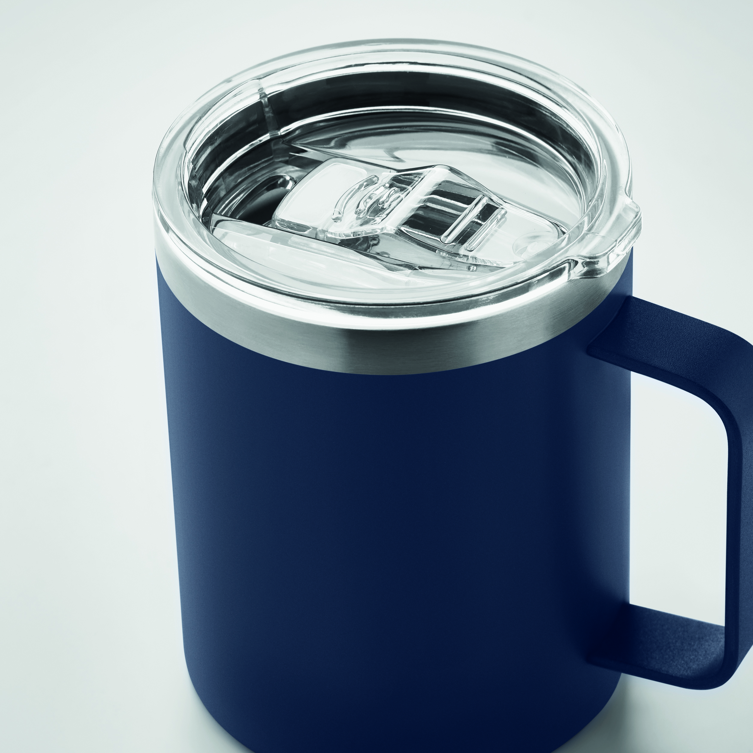 Dwuścienny kubek ze stali nierdzewnej z recyklingu (90% recyklingowanej stali nierdzewnej i 10% stali nierdzewnej) z pokrywką z zasuwanym otworem do picia. Pojemność: 300 ml.