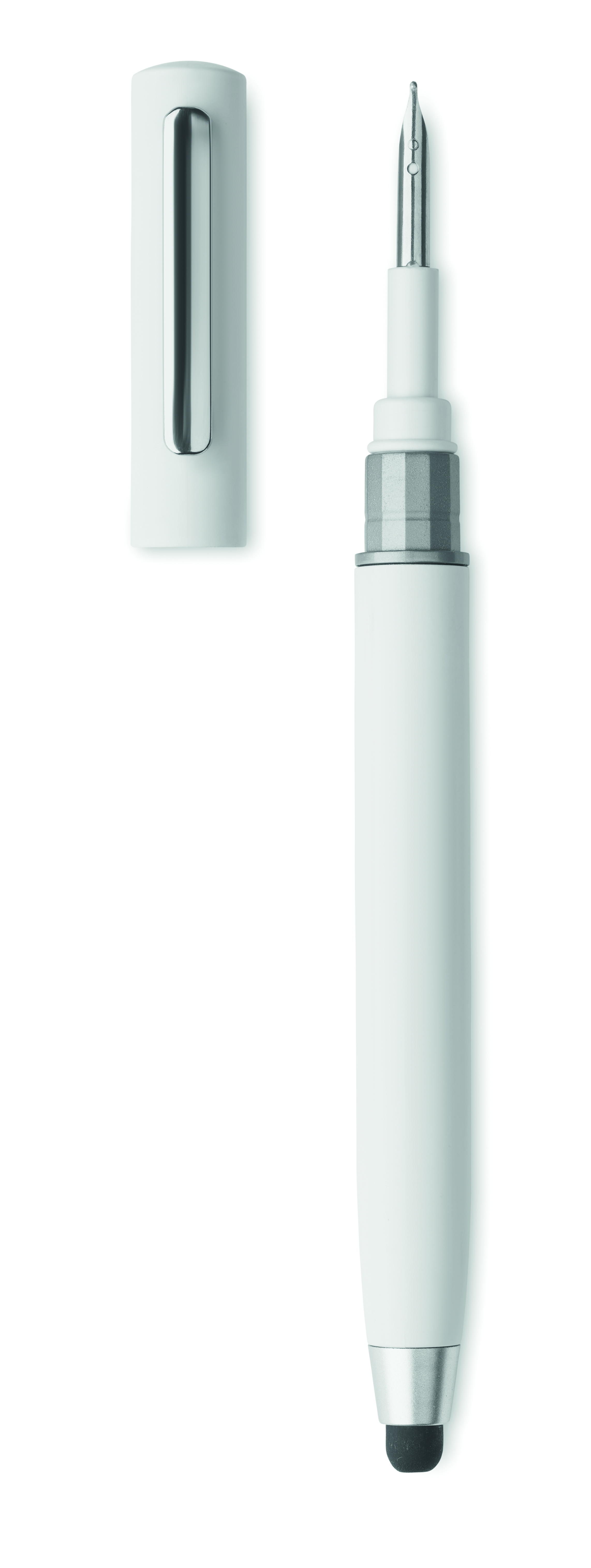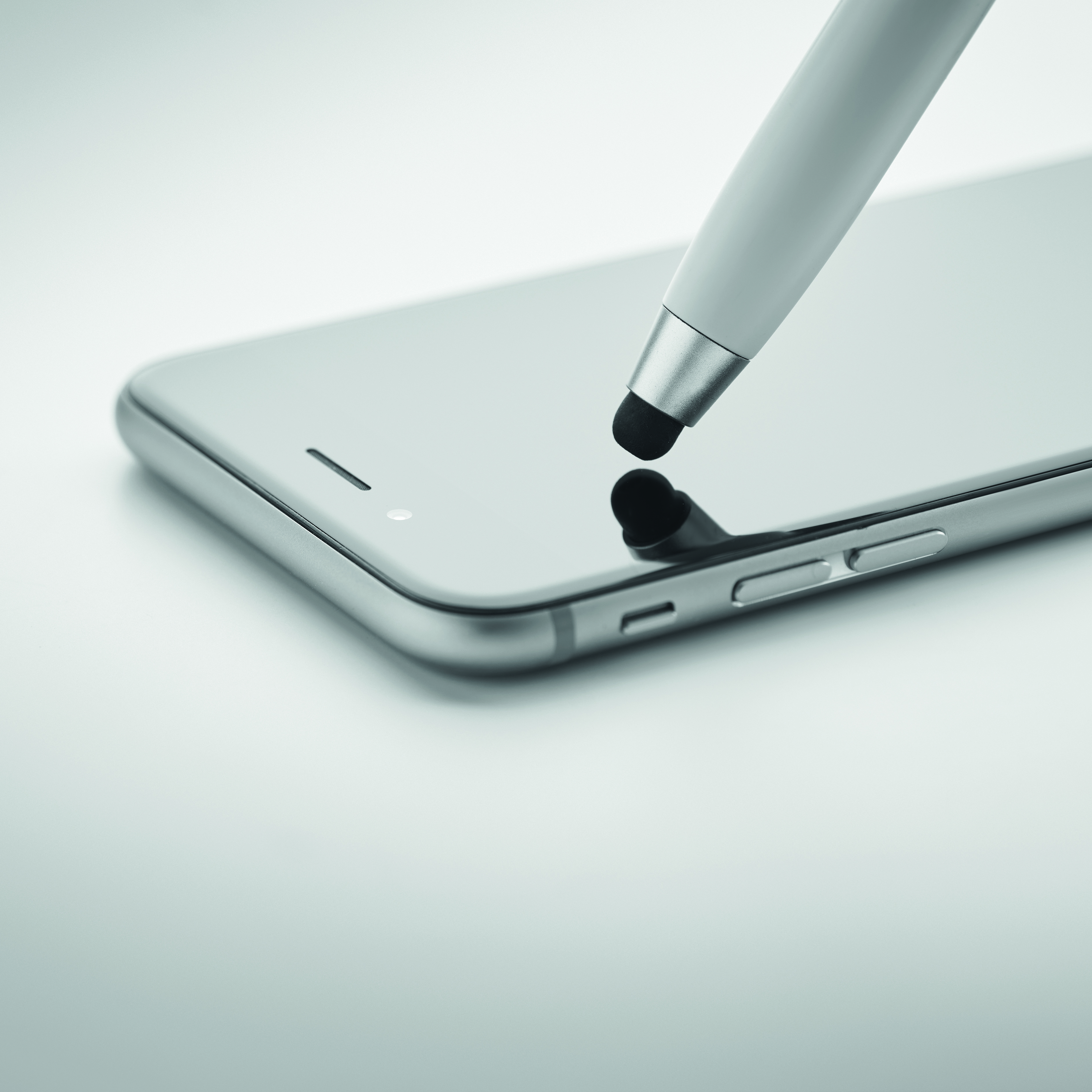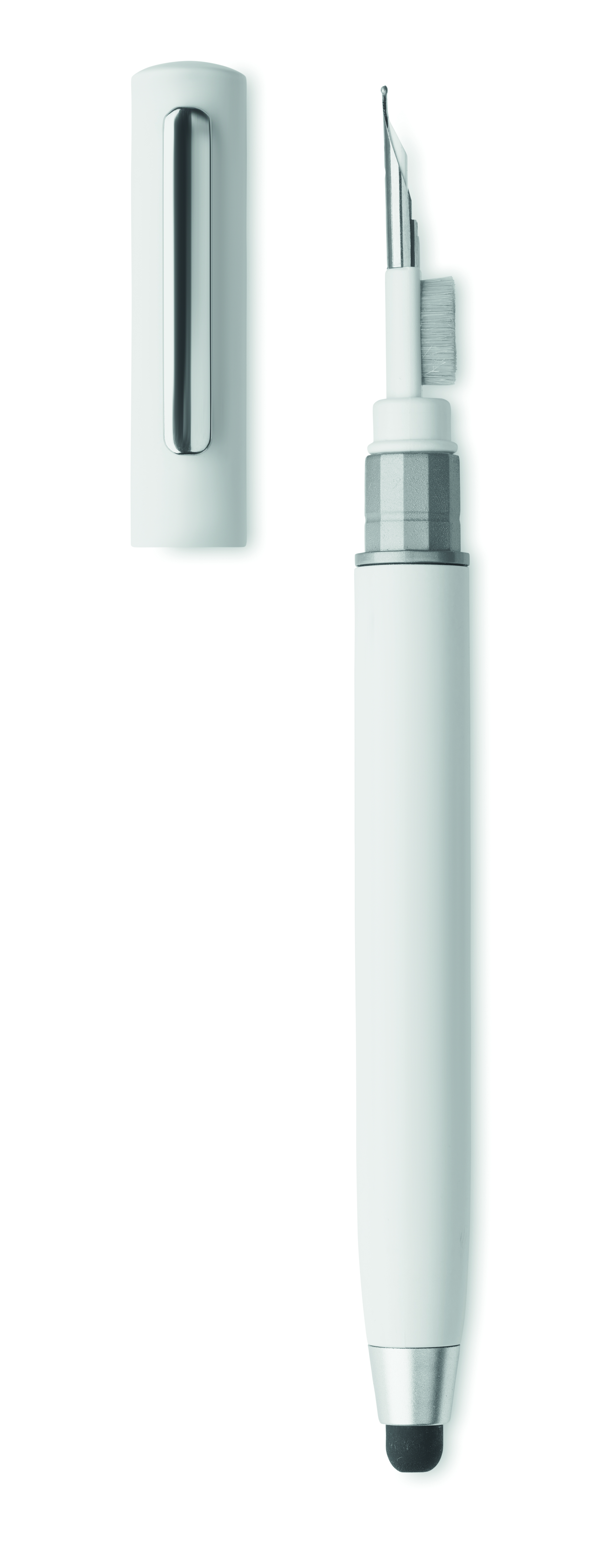 Wykręcany długopis z rysikiem dotykowym z tworzywa ABS. Posiada zestaw do czyszczenia słuchawek dousznych True Wireless Stereo (TWS): metalowy wkład, gąbka i pędzelek. Niebieski tusz.