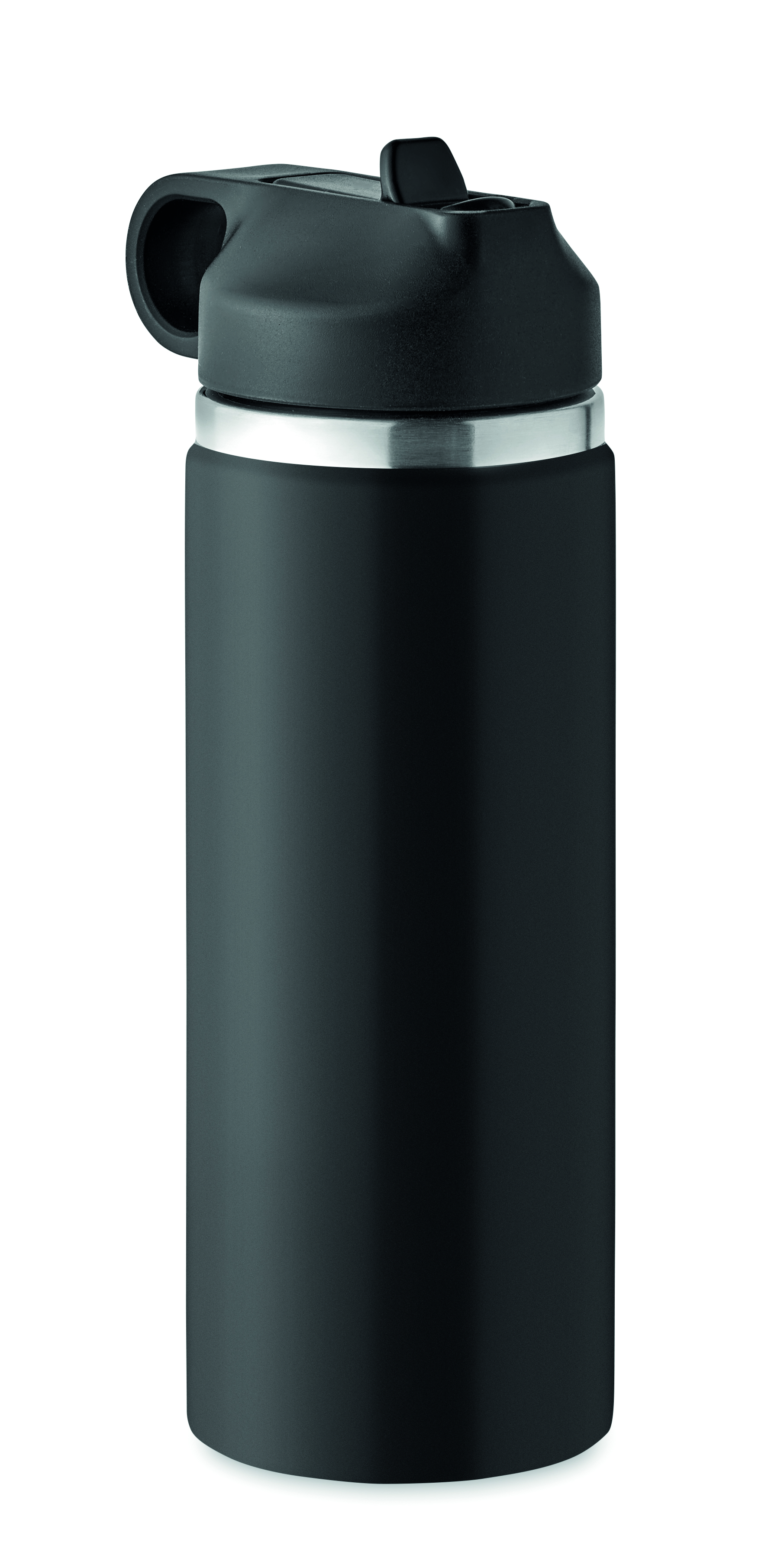 Izolowana próżniowo butelka z podwójnymi ściankami ze stali nierdzewnej z recyklingu (90% ze stali nierdzewnej z recyklingu i 10% ze stali nierdzewnej) z pokrywką z PP i wbudowaną słomką. Szczelna. Pojemność: 500 ml.