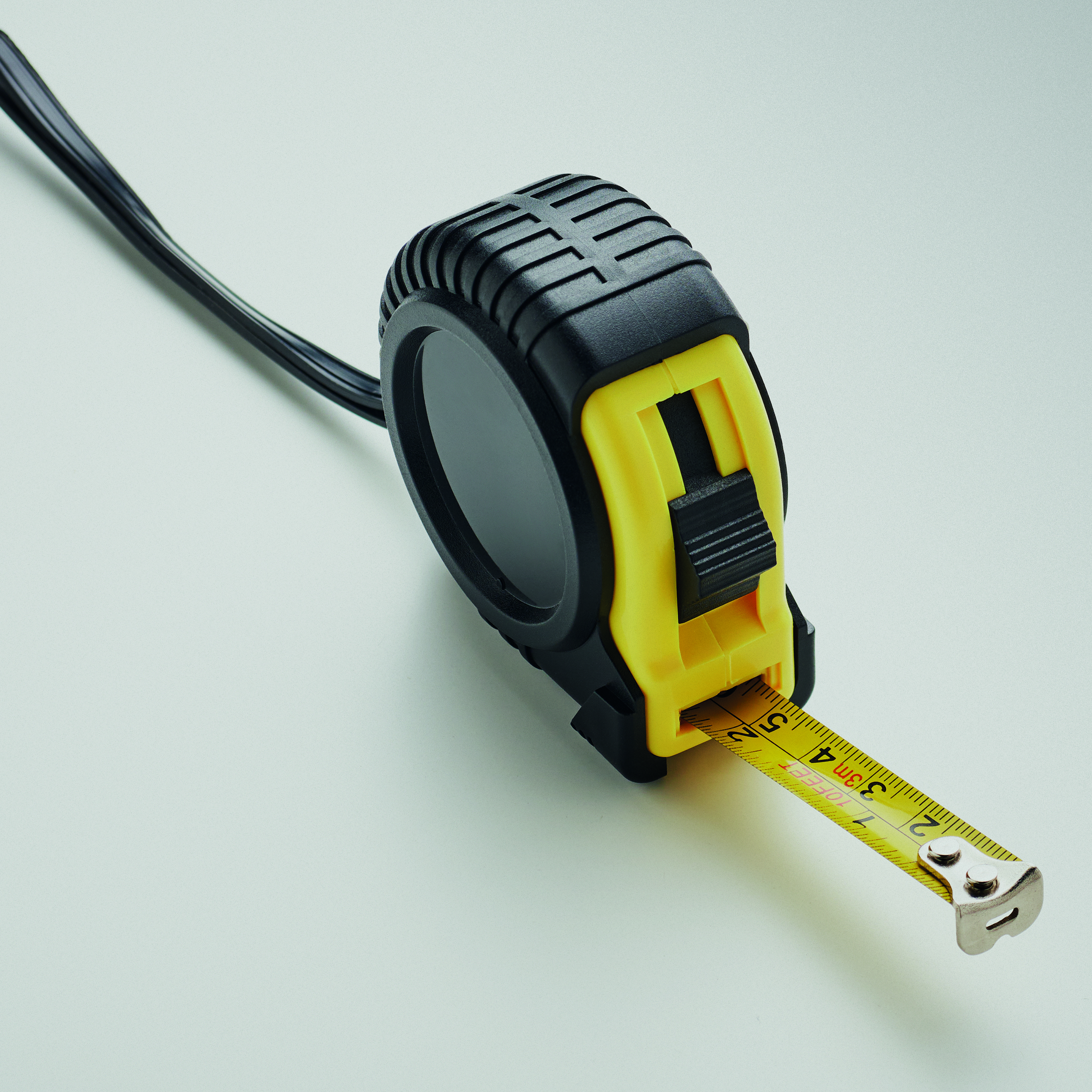 Taśma miernicza 3m z przetworzonego ABS. W zestawie pasek na rękę i srebrny metalowy klips.