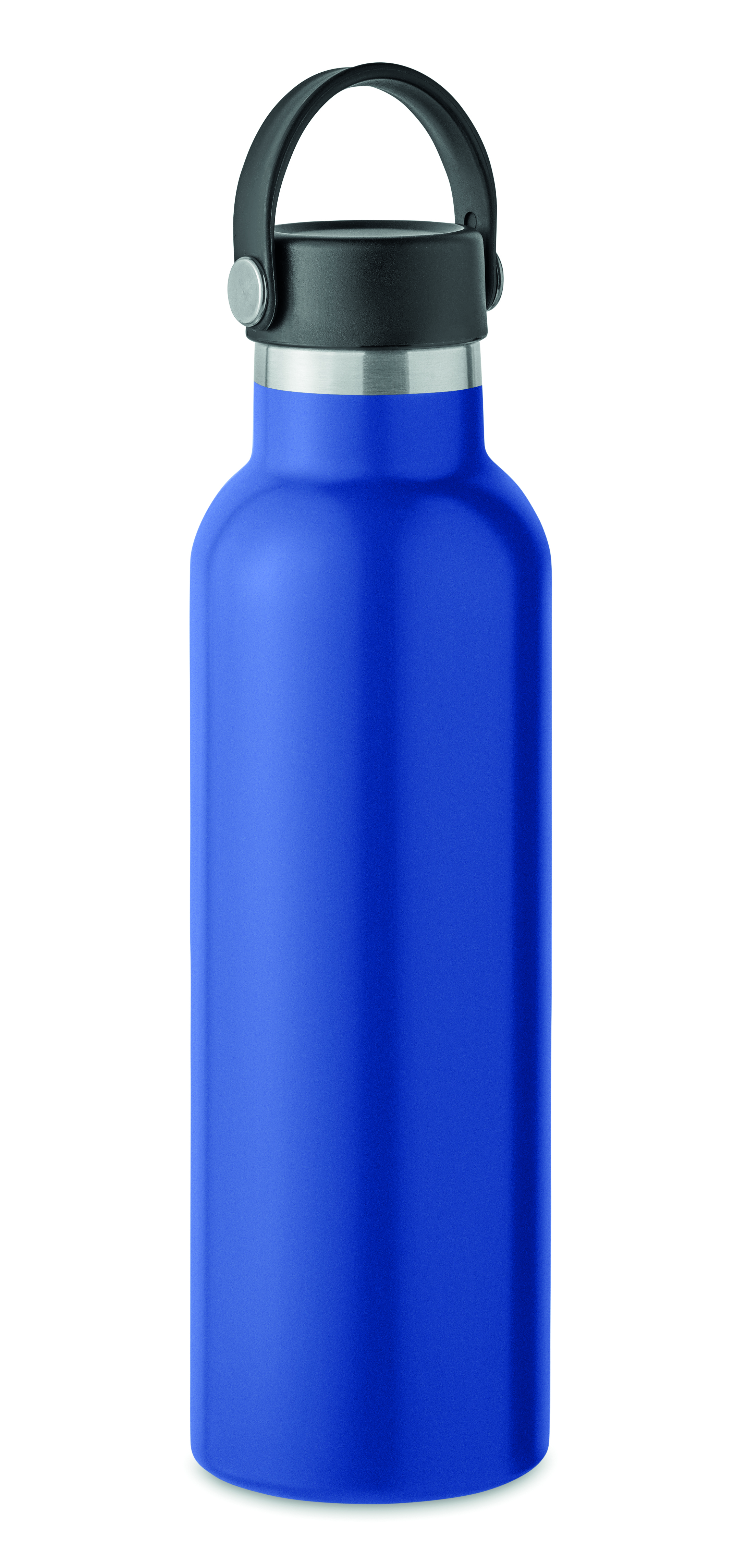 Izolowana próżniowo butelka o podwójnych ściankach ze stali nierdzewnej z recyklingu (90% stali nierdzewnej z recyklingu i 10% stali nierdzewnej) ze szczelną zakrętką i dodatkową wymienną wbudowaną słomką. Pojemność: 700 ml.