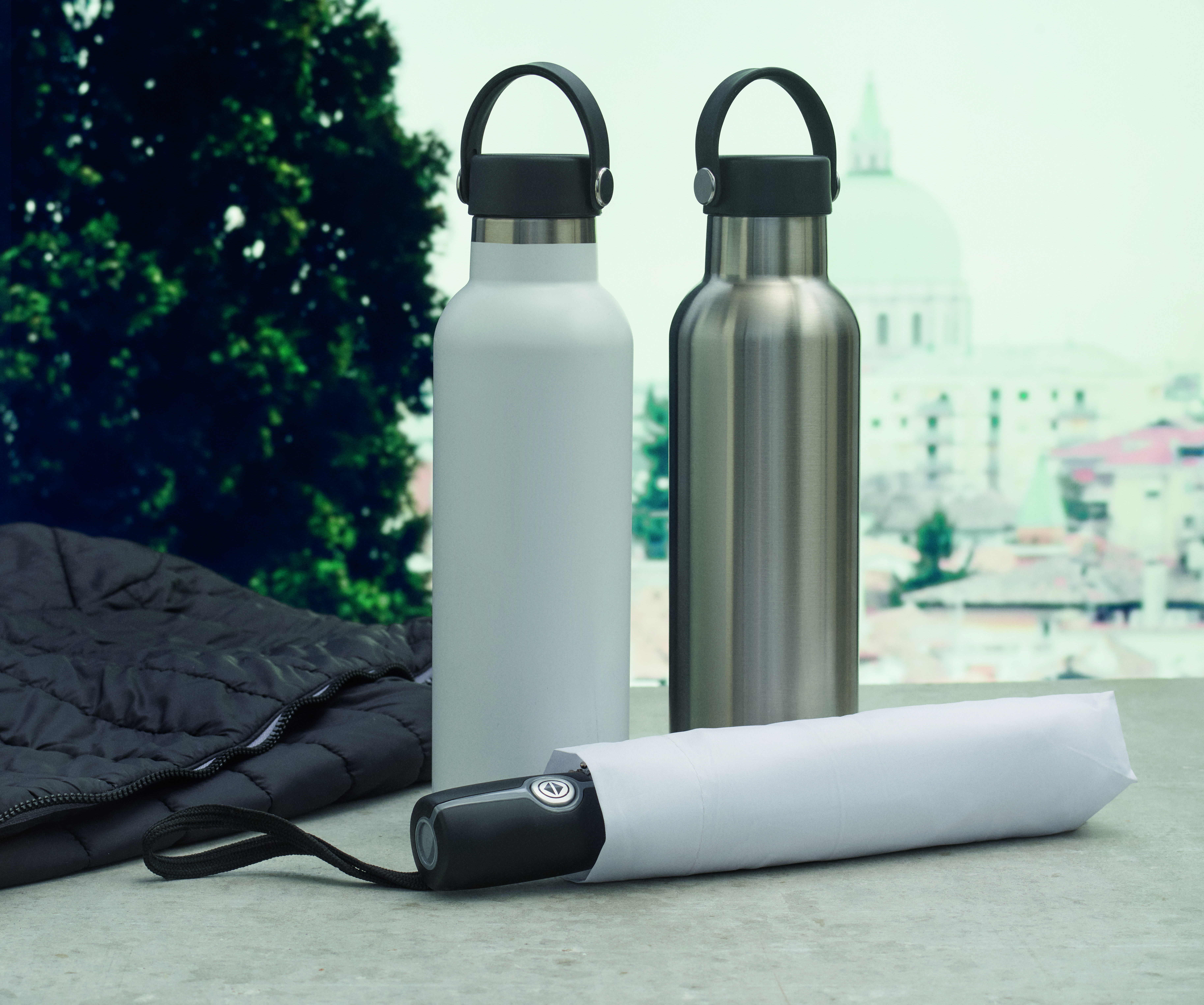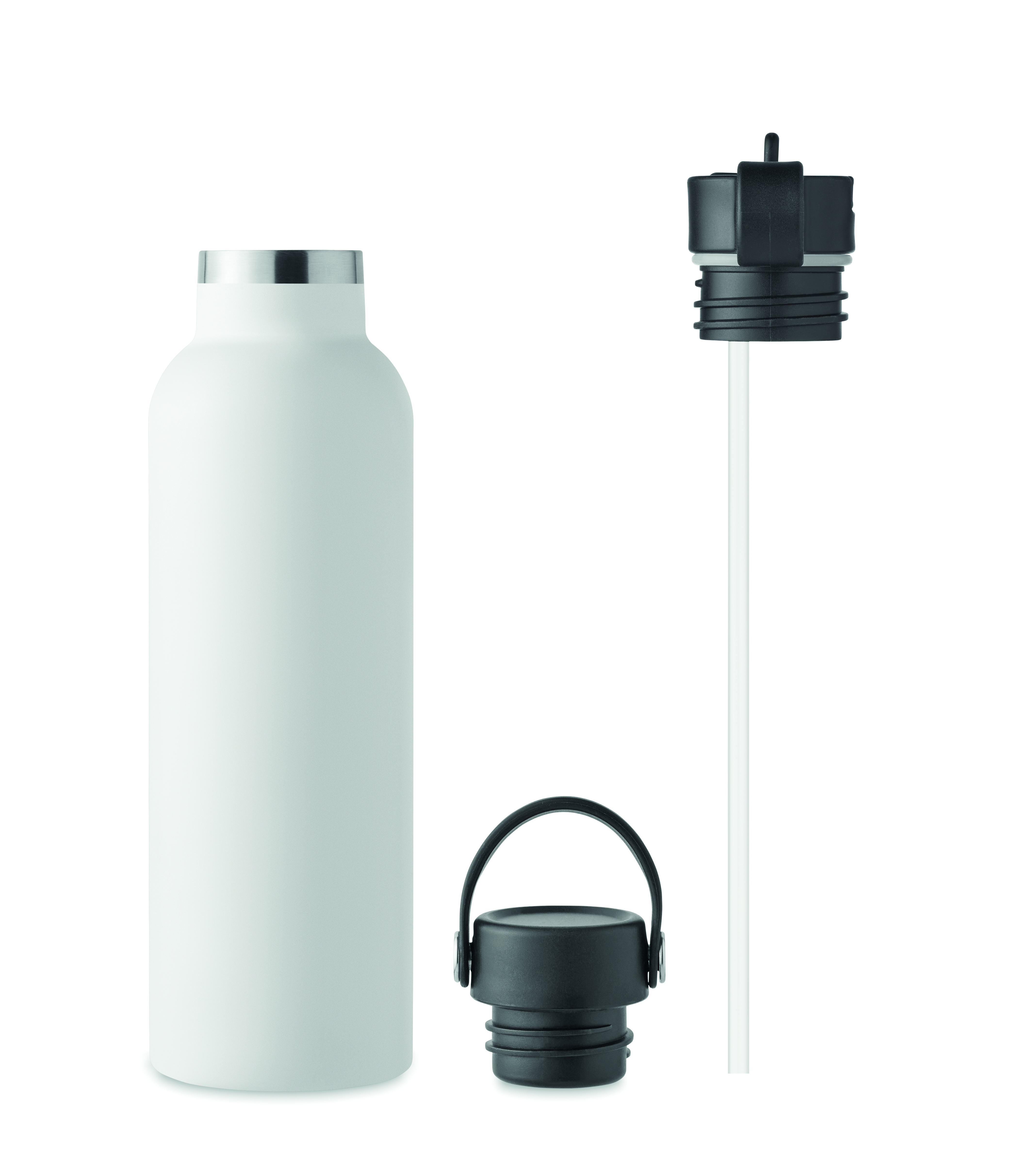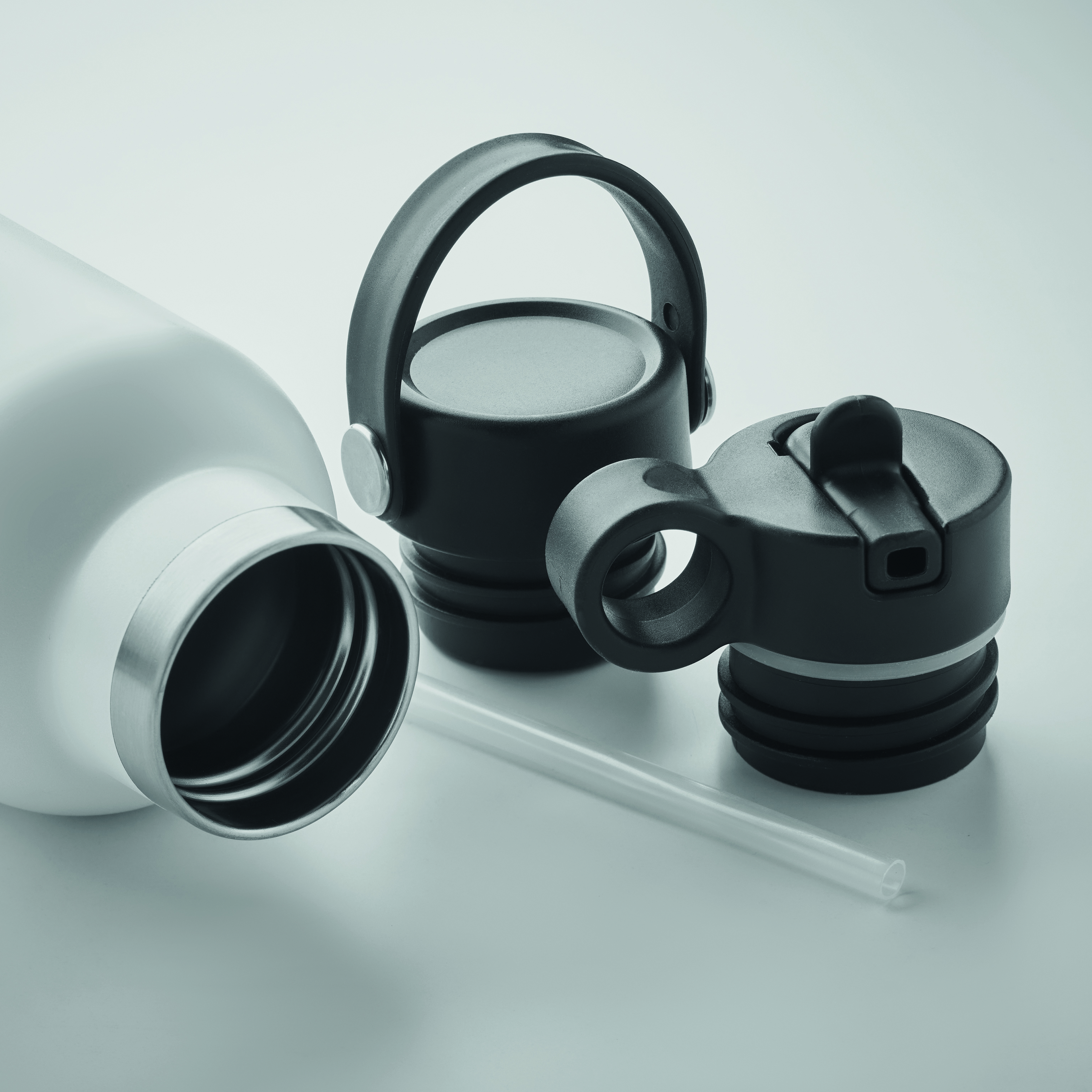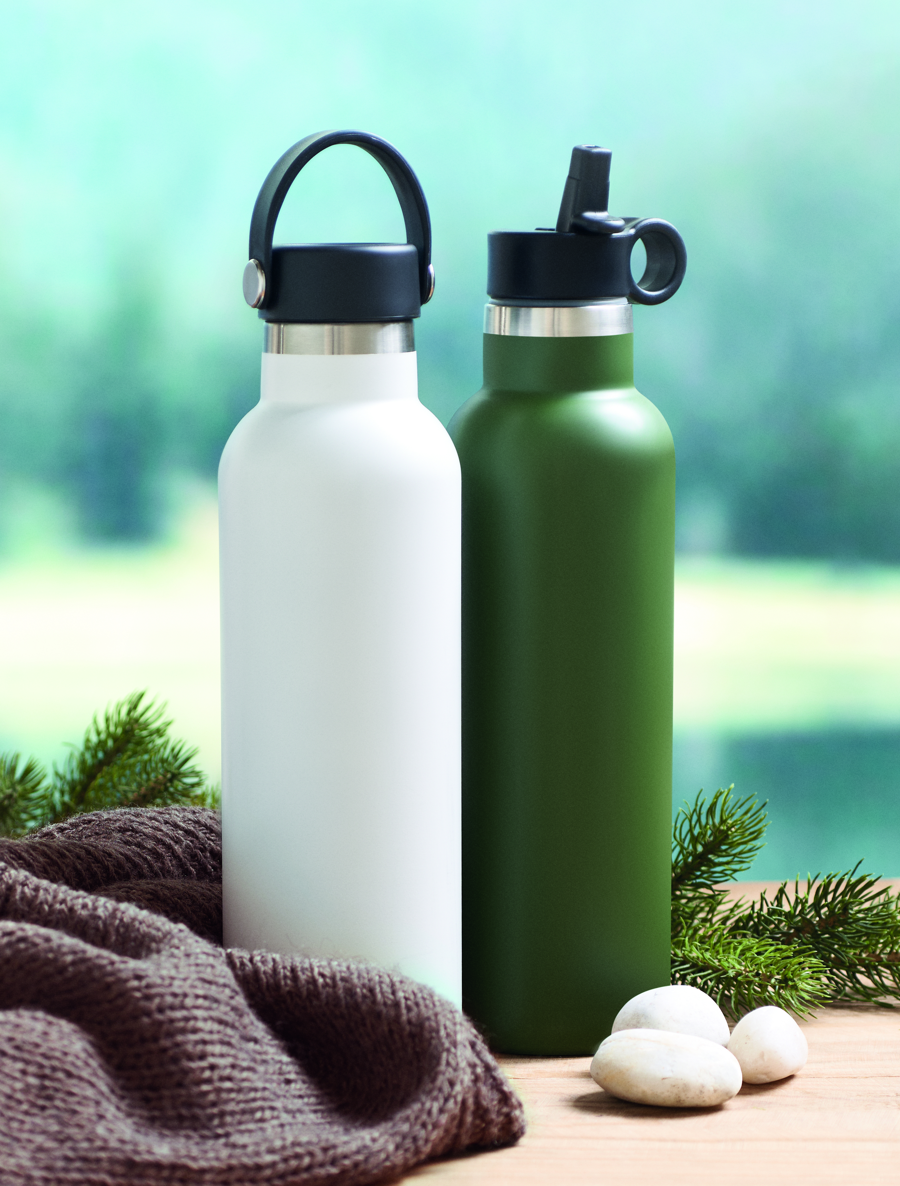 Izolowana próżniowo butelka o podwójnych ściankach ze stali nierdzewnej z recyklingu (90% stali nierdzewnej z recyklingu i 10% stali nierdzewnej) ze szczelną zakrętką i dodatkową wymienną wbudowaną słomką. Pojemność: 700 ml.