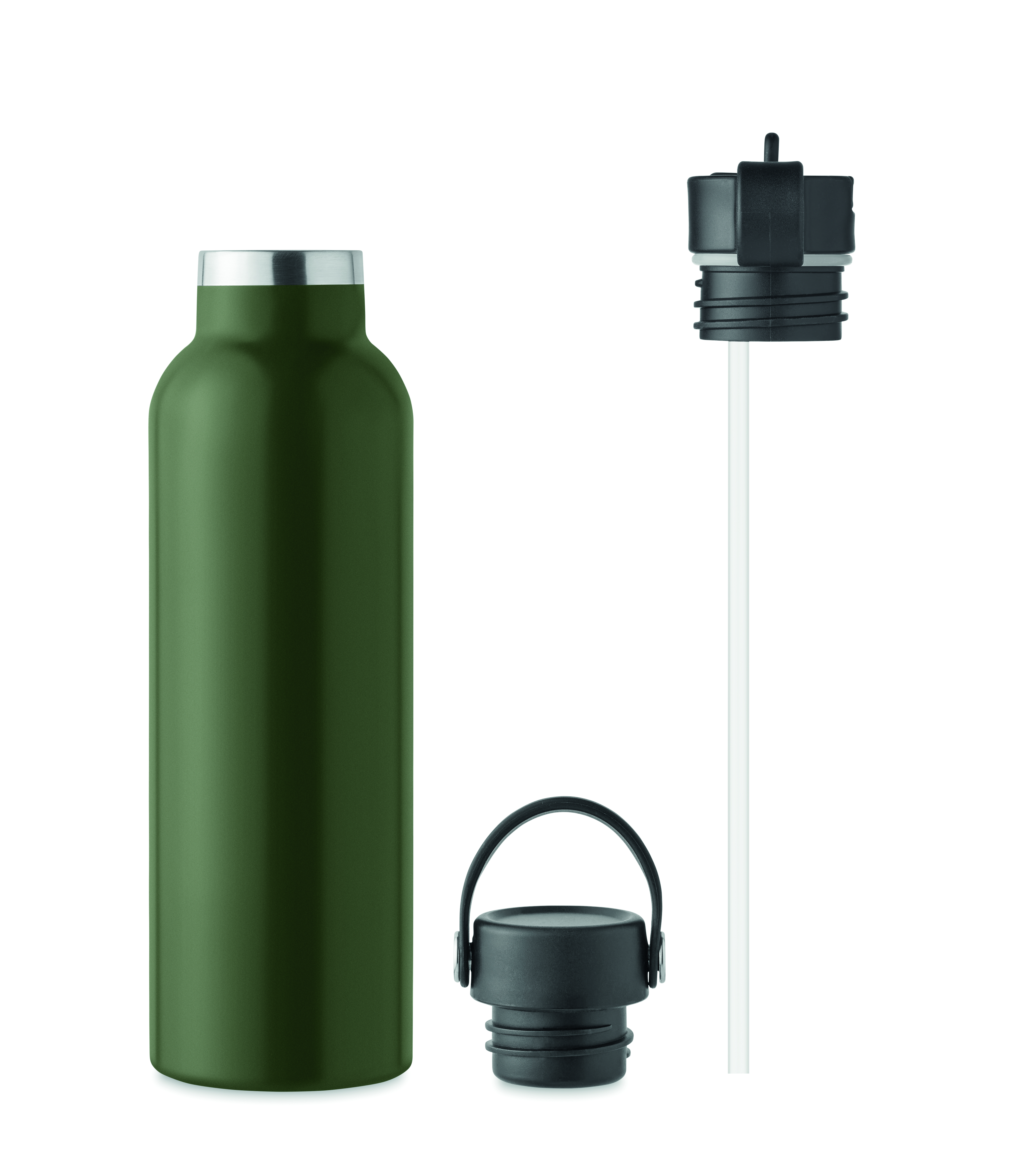 Izolowana próżniowo butelka o podwójnych ściankach ze stali nierdzewnej z recyklingu (90% stali nierdzewnej z recyklingu i 10% stali nierdzewnej) ze szczelną zakrętką i dodatkową wymienną wbudowaną słomką. Pojemność: 700 ml.