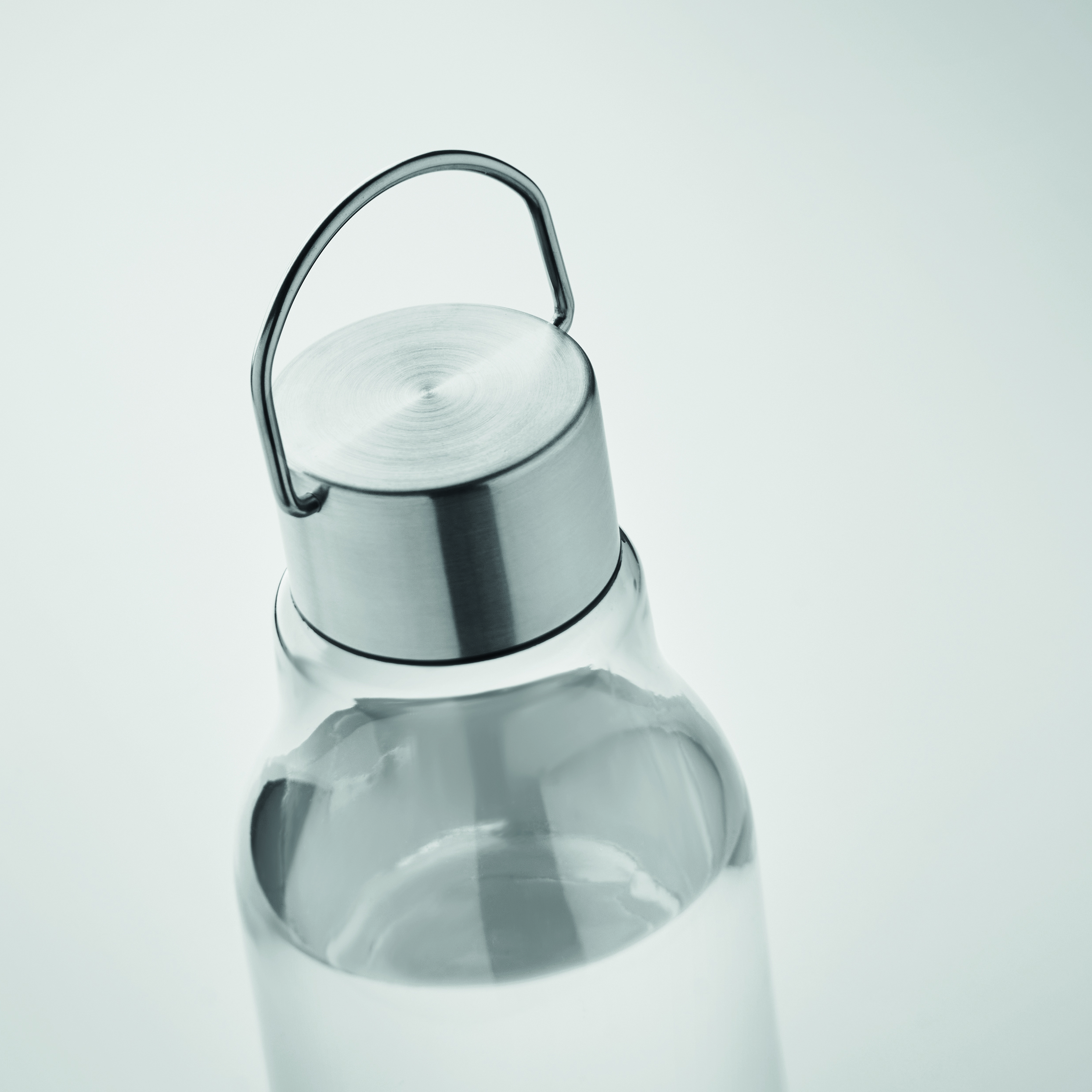 Butelka do picia z materiału Tritan Renew™, który nie zawiera BPA, z zakrętką z uchwytem ze stali nierdzewnej. Szczelna. Pojemność: 800 ml. Ten produkt powstał w 50% z odpadów plastikowych przy użyciu certyfikowanego bilansu masy ISCC.