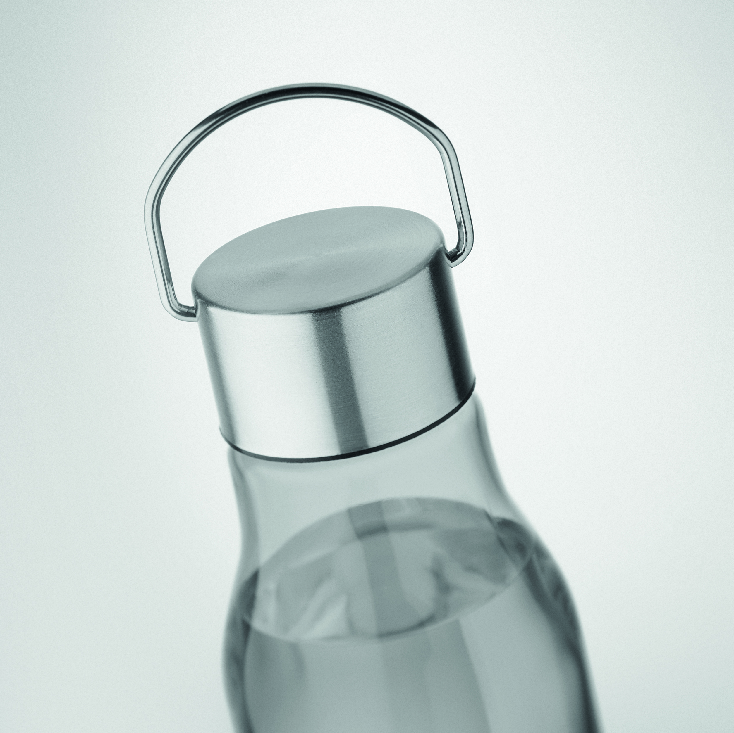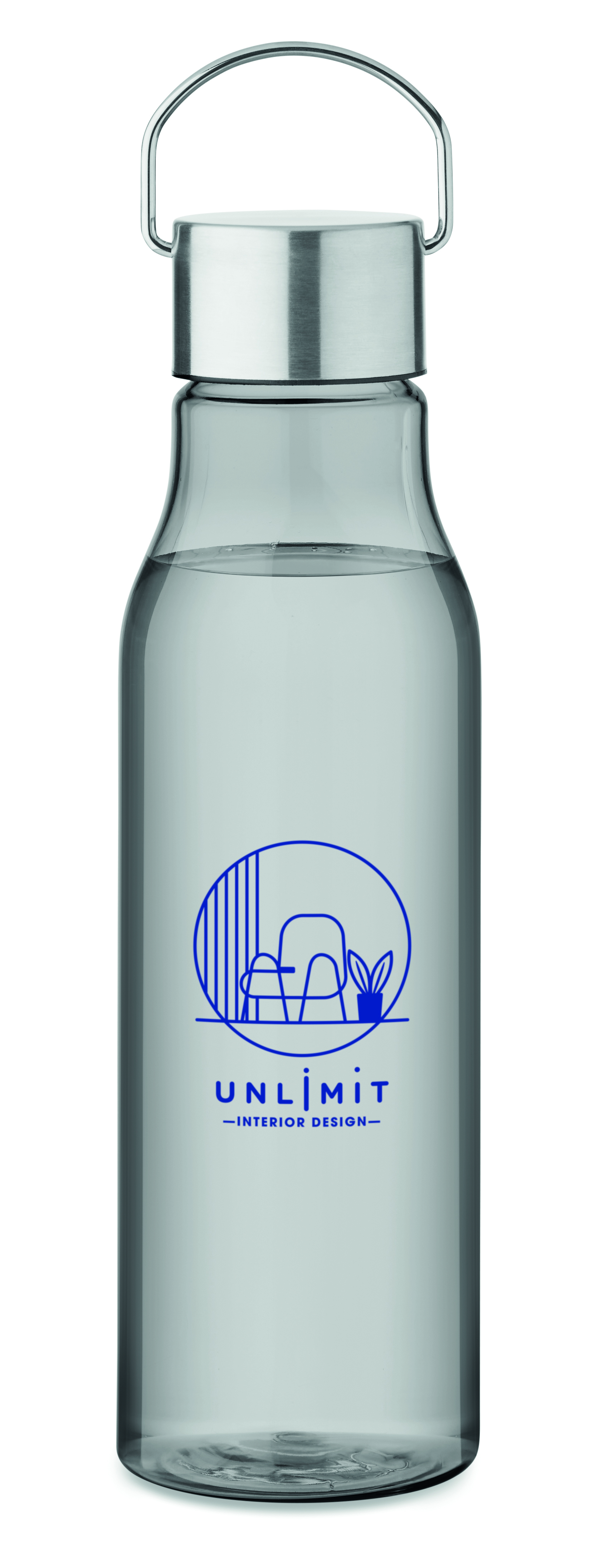 Butelka do picia z RPET, wolna od BPA, z zakrętką ze stali nierdzewnej z uchwytem. Szczelna. Pojemność: 600 ml.