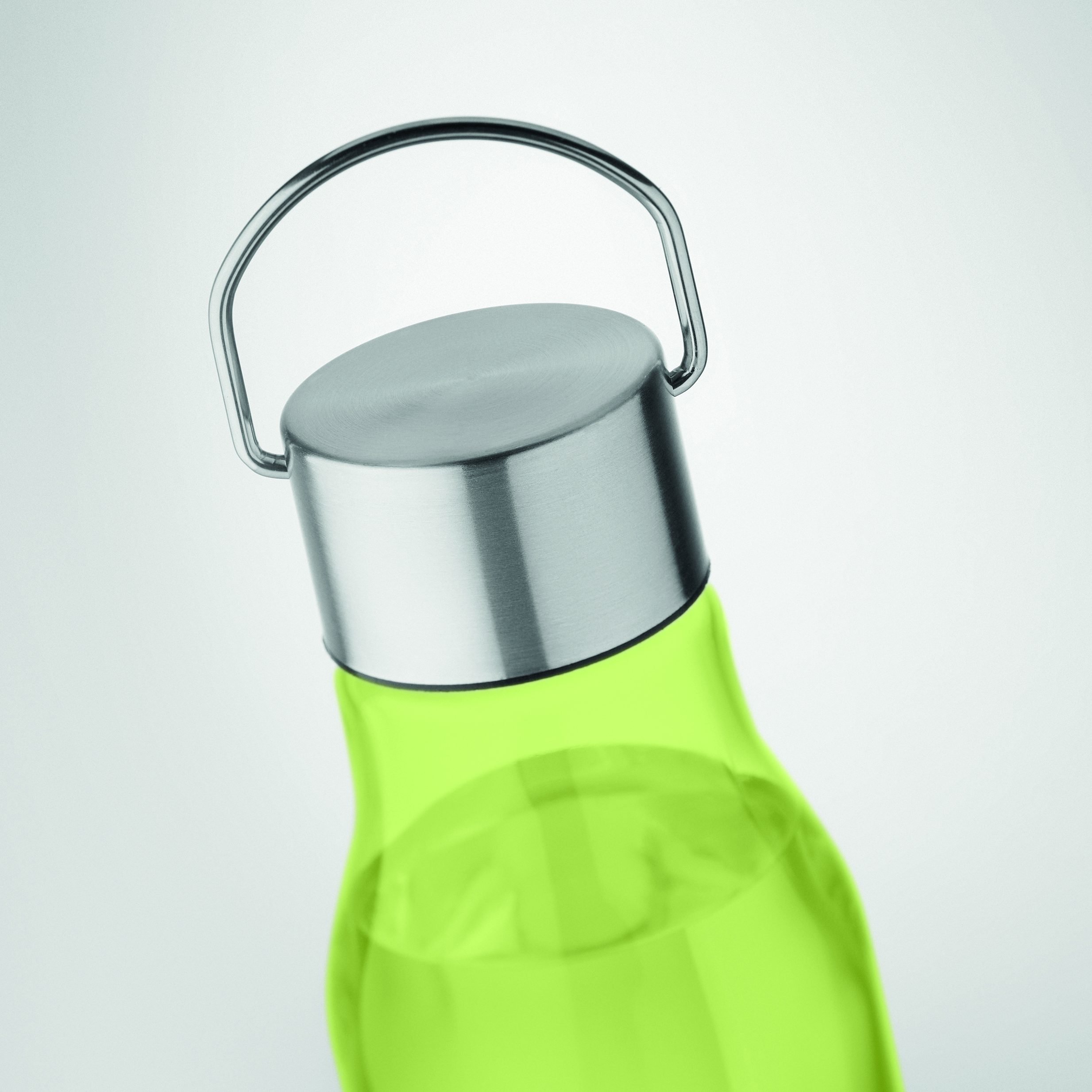 Butelka do picia z RPET, wolna od BPA, z zakrętką ze stali nierdzewnej z uchwytem. Szczelna. Pojemność: 600 ml.