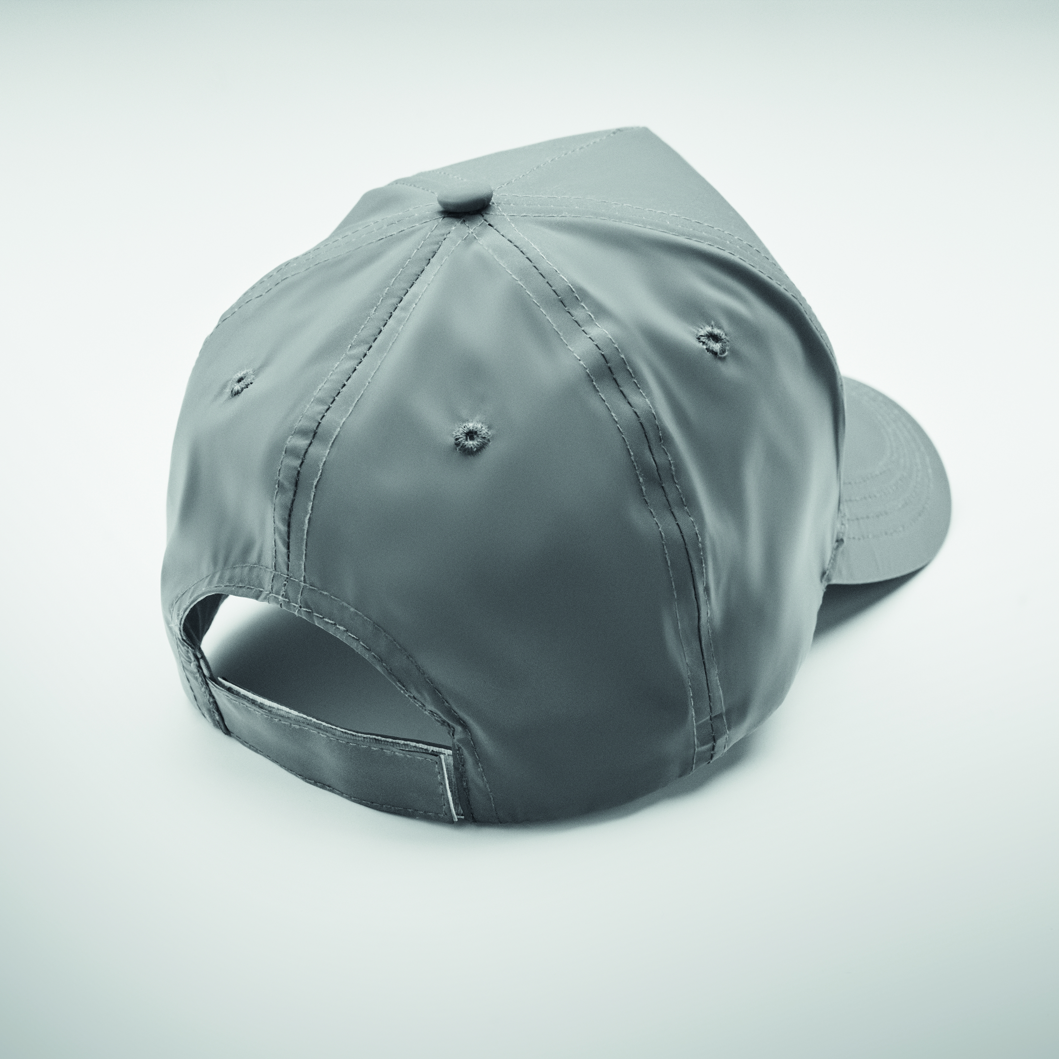 5 panelowa czapka z daszkiem z odblaskowego poliestru 190T. 4 przeszyte oczka, zapięcie na rzep. Rozmiar 7 1/4.