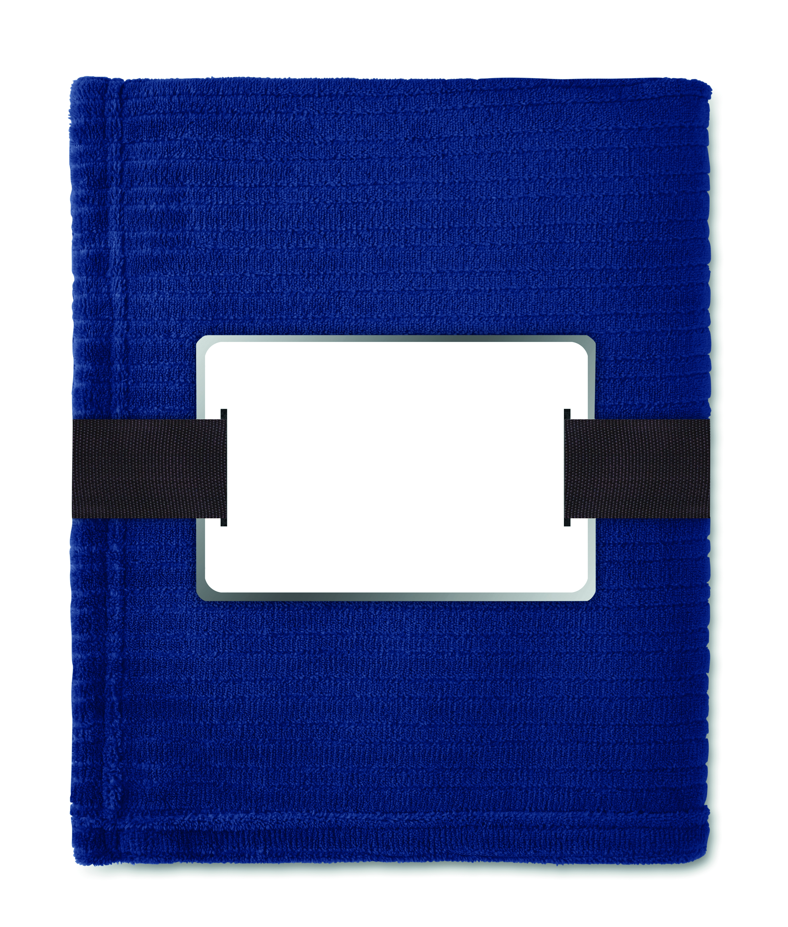 Miękki koc polarowy o gramaturze 240 gr / m²,owinięty wstążką, z kartą do nadruku.
