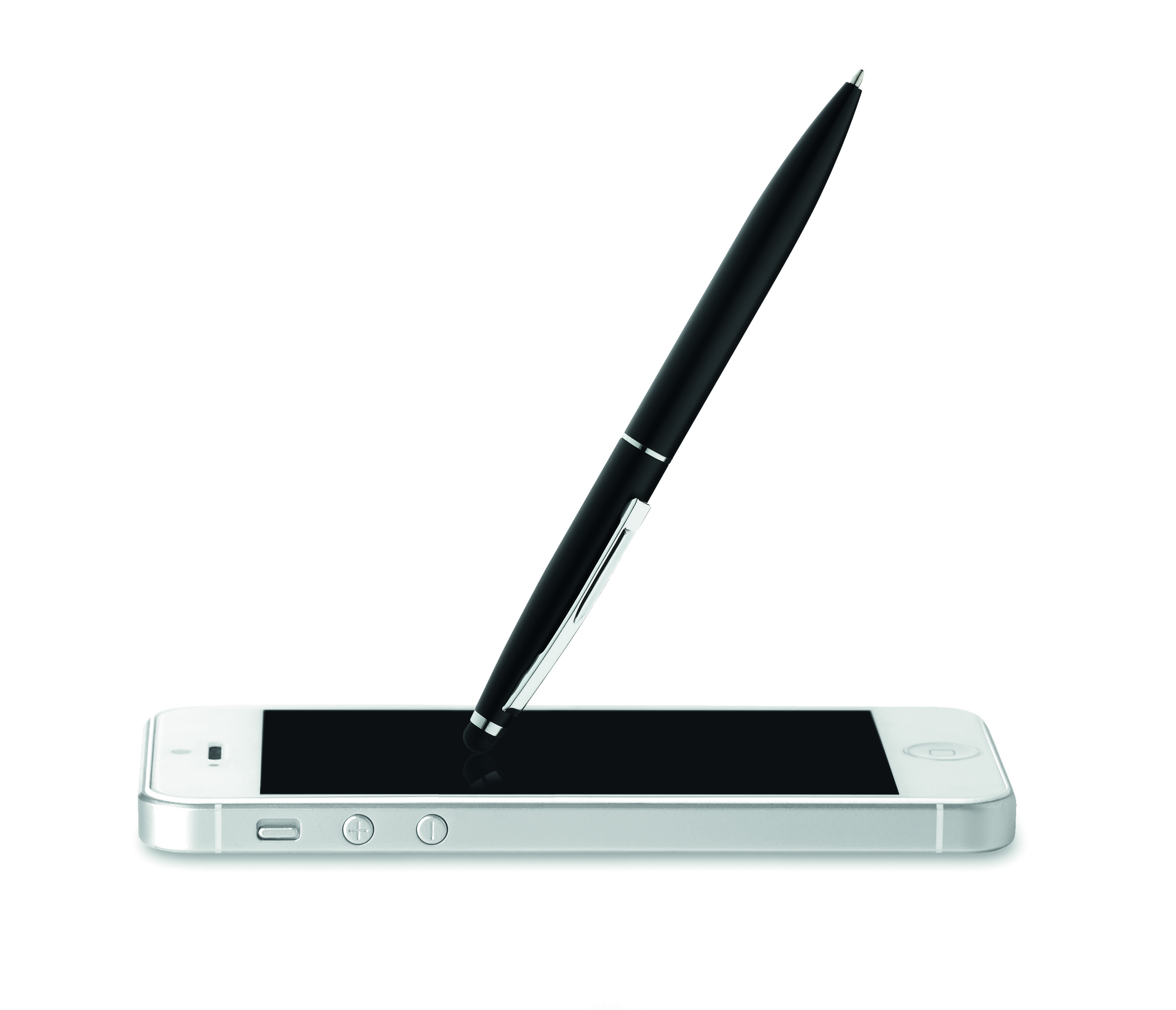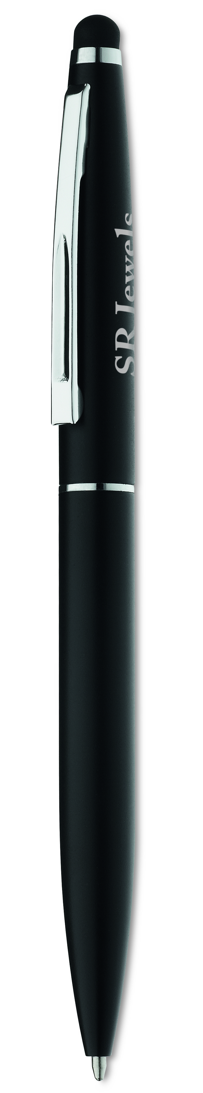 Aluminiowy, przekręcany długopis z rysikiem. Matowe wykończenie. Niebieski wkład.