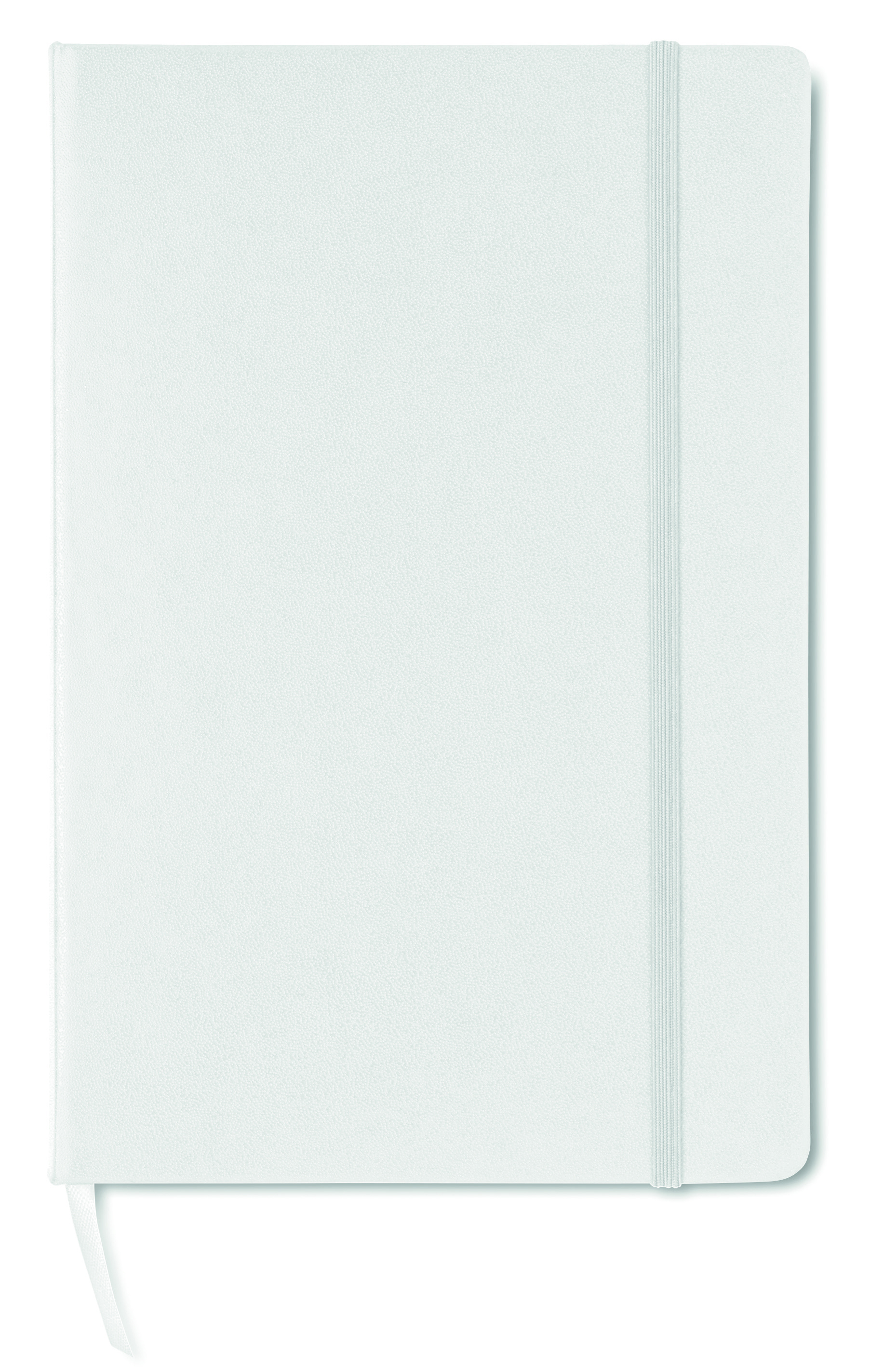 Notatnik A5 z twardą okładką z PVC. 192 strony w kratkę z papieru z recyklingu (96 kartek). Dopasowany elastyczny pasek zamykający i zakładka ze wstążki.