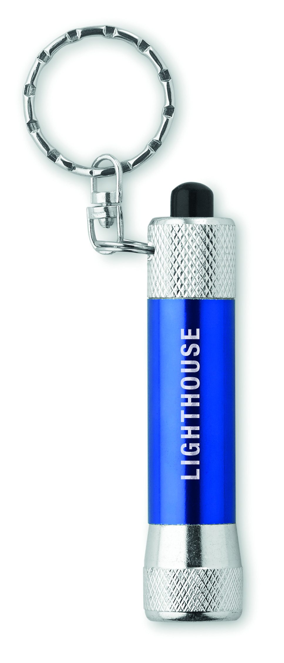 Aluminiowy brelok - latarka z 1 diodą LED. Dołączone 4 baterie LR44.