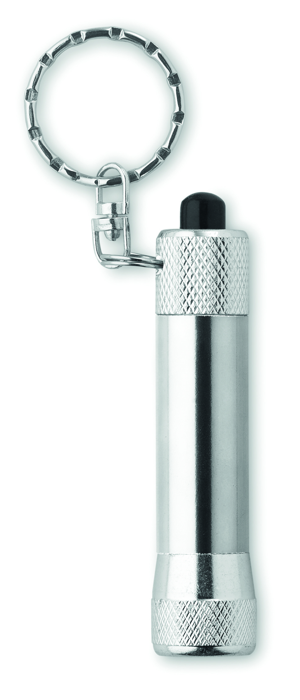 Aluminiowy brelok - latarka z 1 diodą LED. Dołączone 4 baterie LR44.
