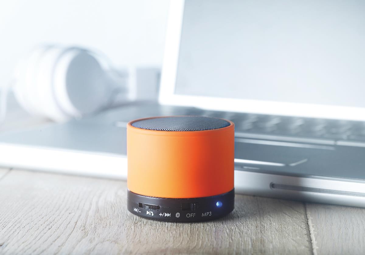 Bezprzewodowy głośnik 5.3 wykonany z ABS, z korpusem pokrytym farbą imitującą gumę oraz diodą LED. Posiada akumulator litowy o pojemności 450mAh, port na kartę SD oraz wyjście AUX/USB. Funkcja odbierania połączeń telefonicznych. Moc wyjściowa 3W/30hm/ 5V. Czas odtwarzania ok. 3h.