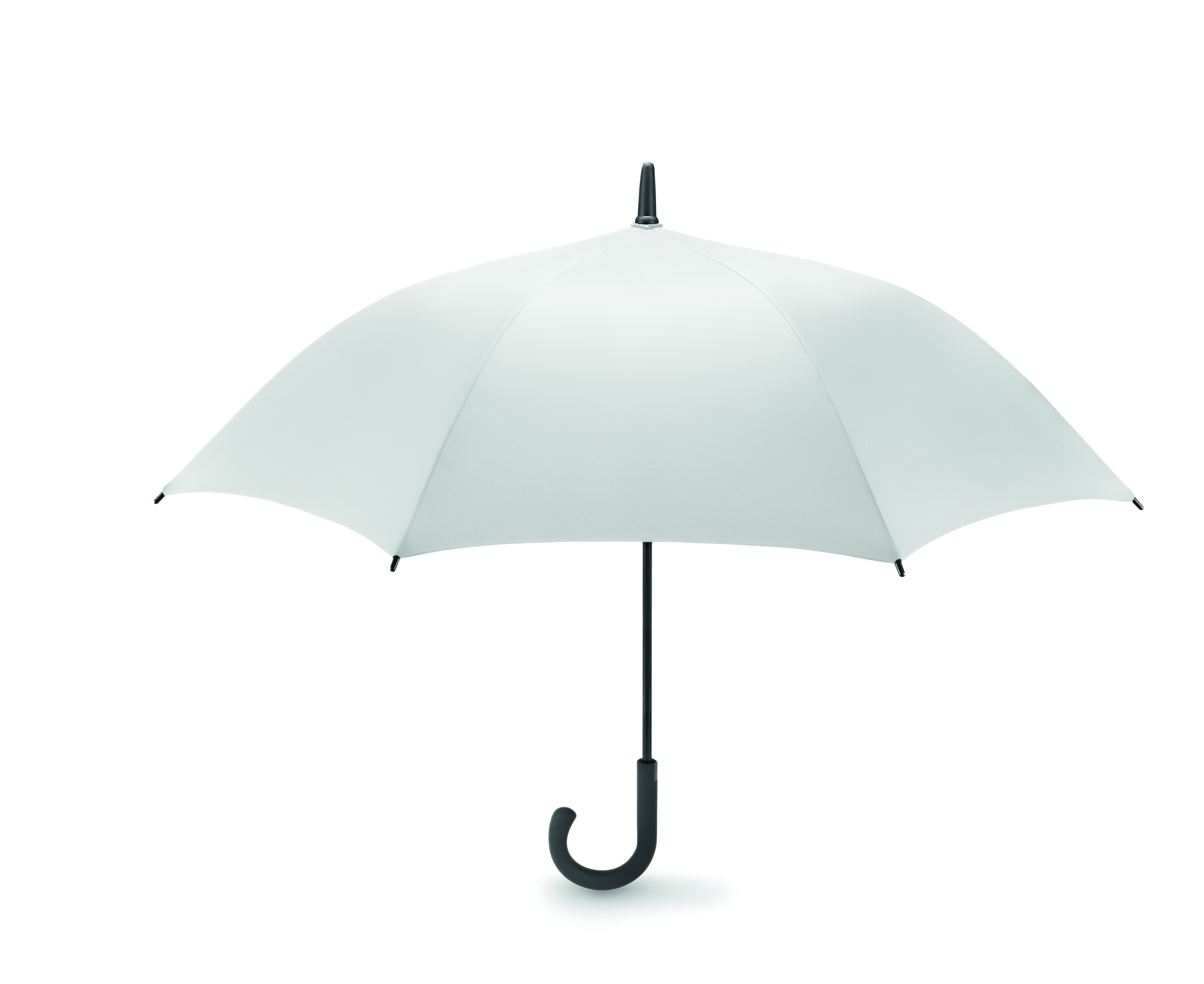 Elegancki 23 calowy parasol automatyczny odporny na działanie silnego wiatru wykonany z tkaniny 190T. Trzon czerniony, żebra wykonane z włókna szklanego, zakończenia plastikowe. Zakrzywiona rączka z gumowanego plastiku. Zapięcie manualne.