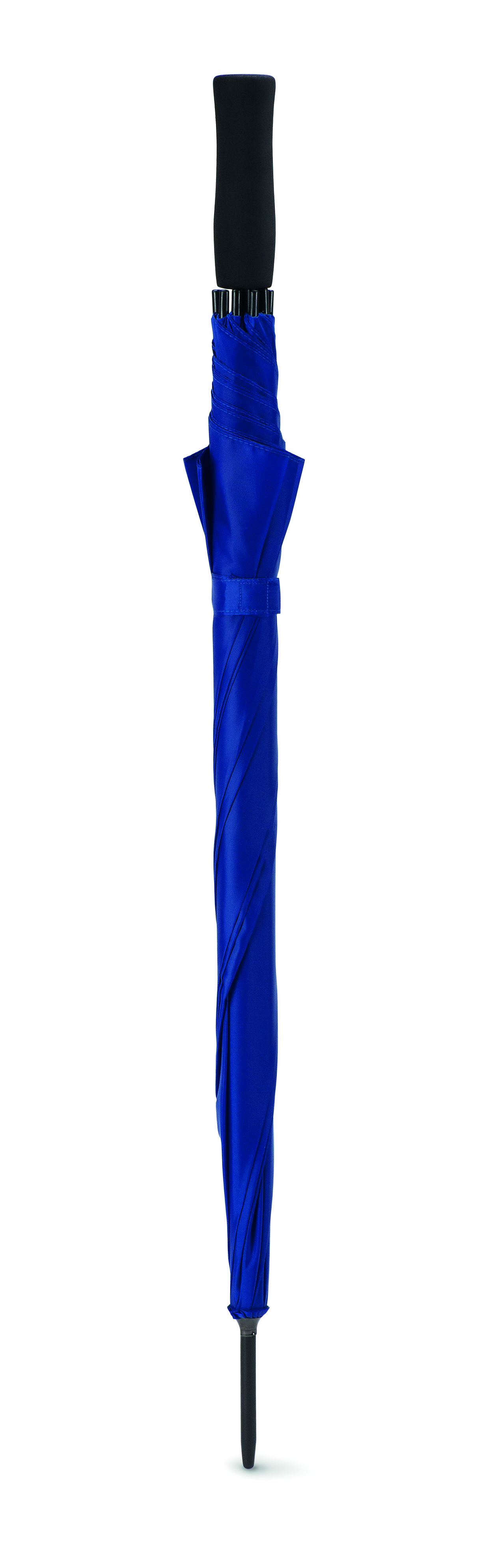 Parasol automatyczny 23 cale wykonany z pongee 190T, z czernionym metalowym trzonem i ożebrowaniem, czarne plastikowe zakończenia. Rączka wykonana z pianki EVA, zapięcie manualne.