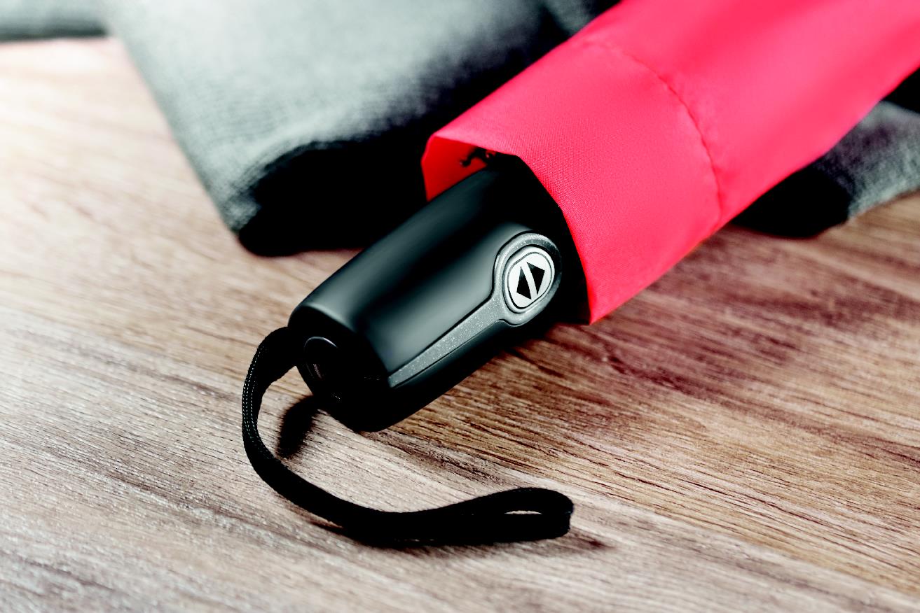 Ekskluzywny 21 calowy automatyczny parasol wykonany z wysokogatunkowego materiału 190T. Trzon metalowy, czarne ożebrowanie 2 sekcyjne wykonane z włókna szklanego zakończenia chromowane. Czarna gumowana rączka z automatycznym zamknięciem.