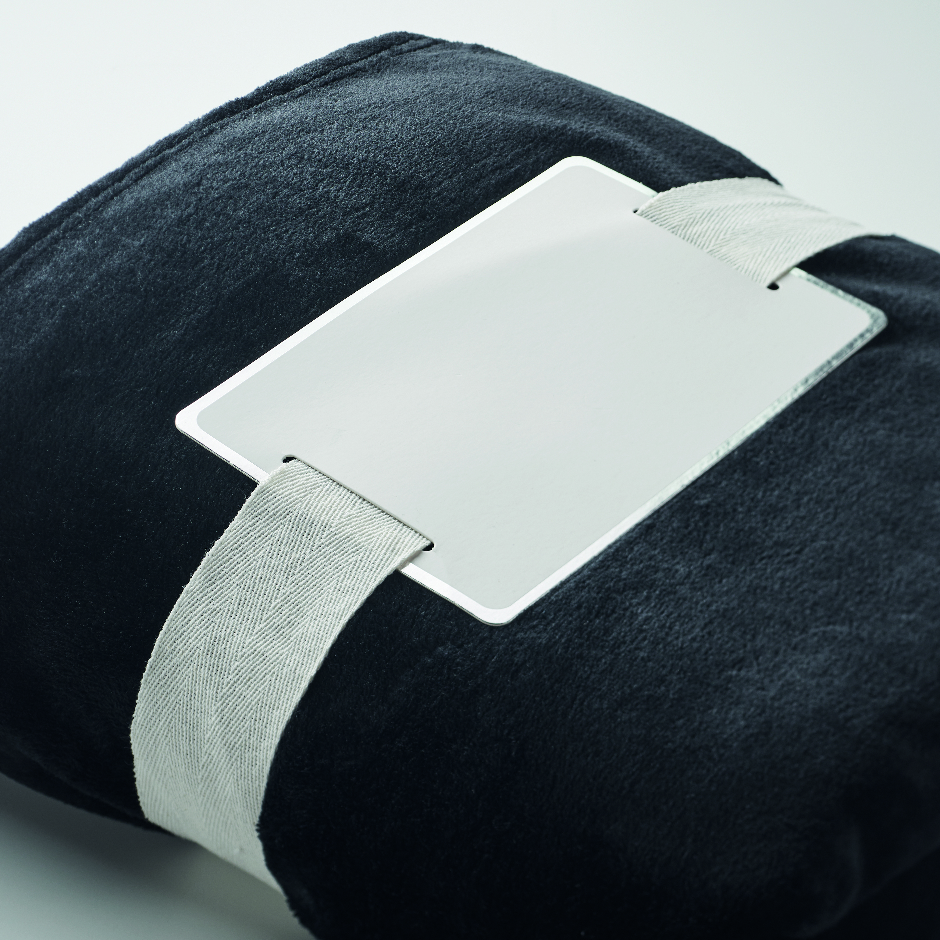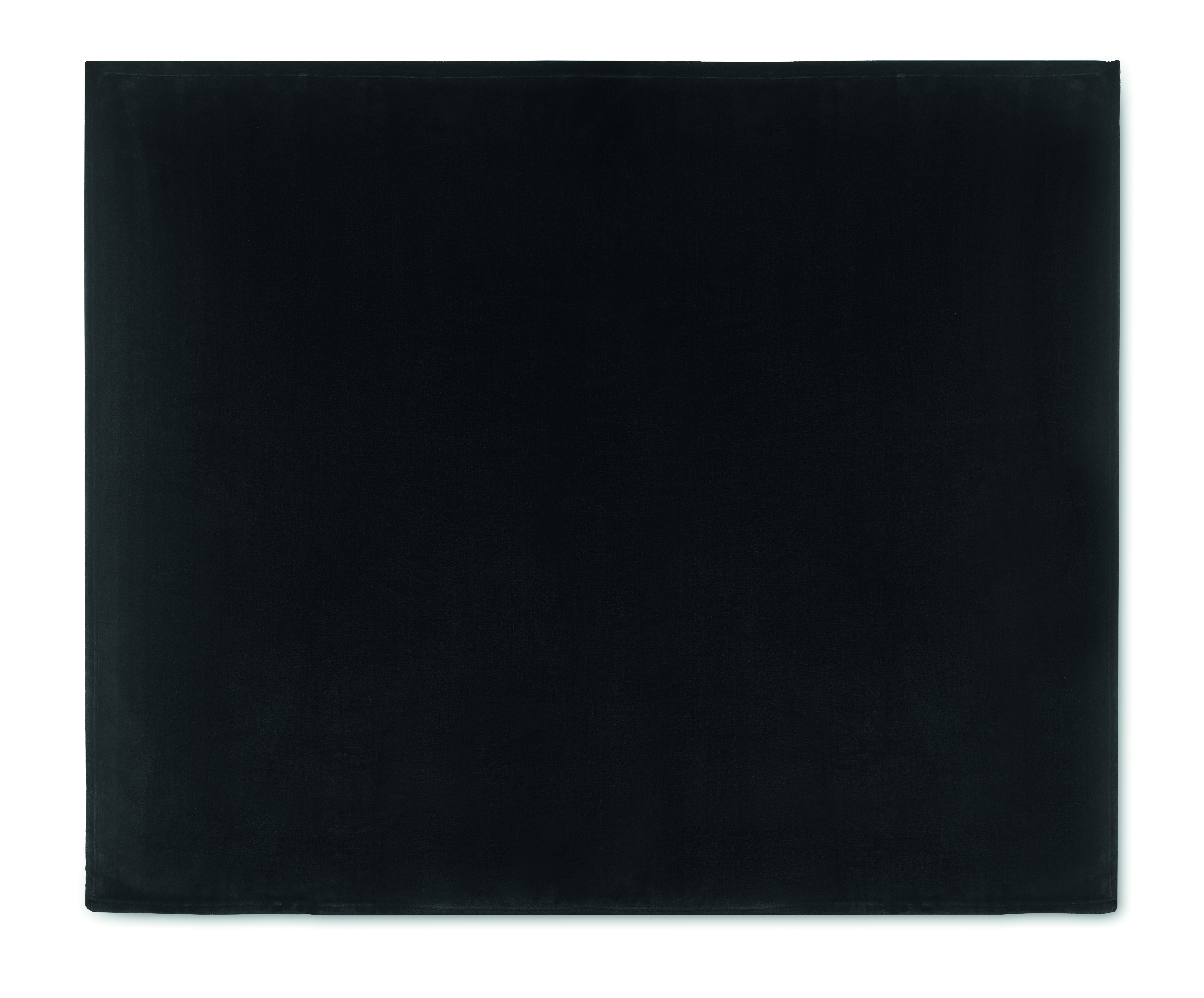 Koc 280g/m² z miłego, miękkiego polaru, przewiązany wstążką, posiada bilecik do nadruku.
