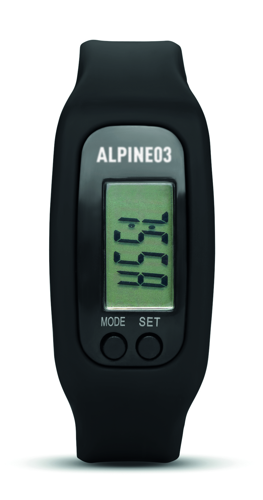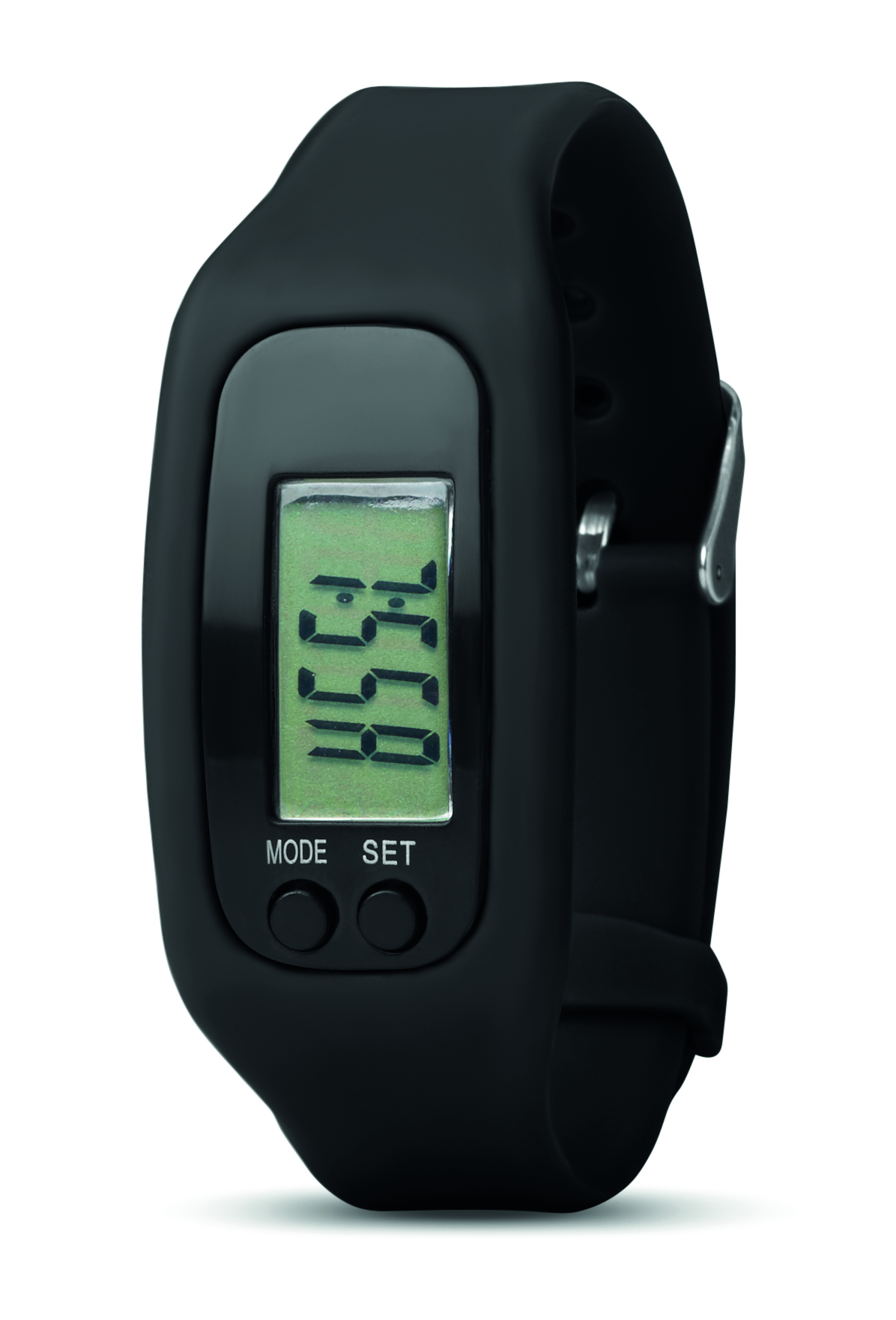 Krokomierz z paskiem. Zawiera licznik kroków, dystansu, czasu oraz spalonych kalorii. W zestawie 1 bateria AG10.