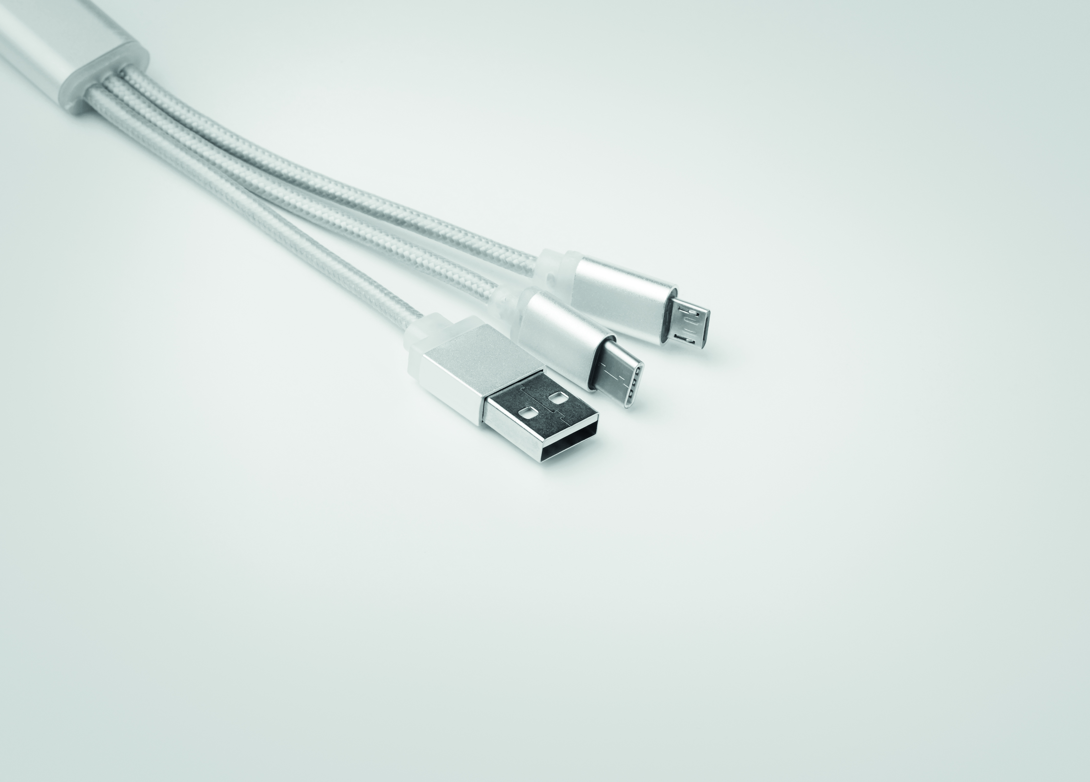 Brelok z kablami do ładowania z USB-A na Micro-B (2 w 1) i typ C.