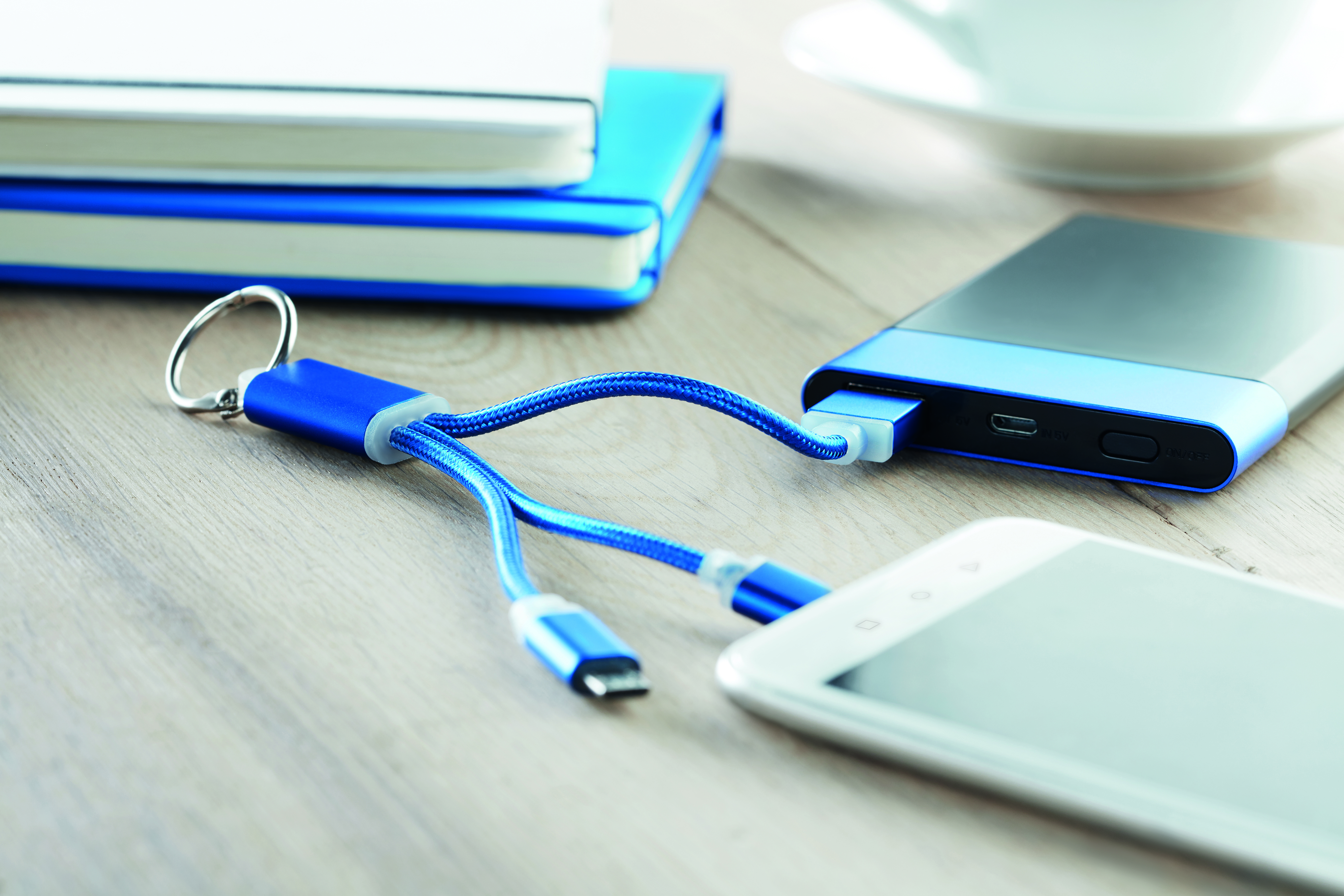 Brelok z kablami do ładowania z USB-A na Micro-B (2 w 1) i typ C.