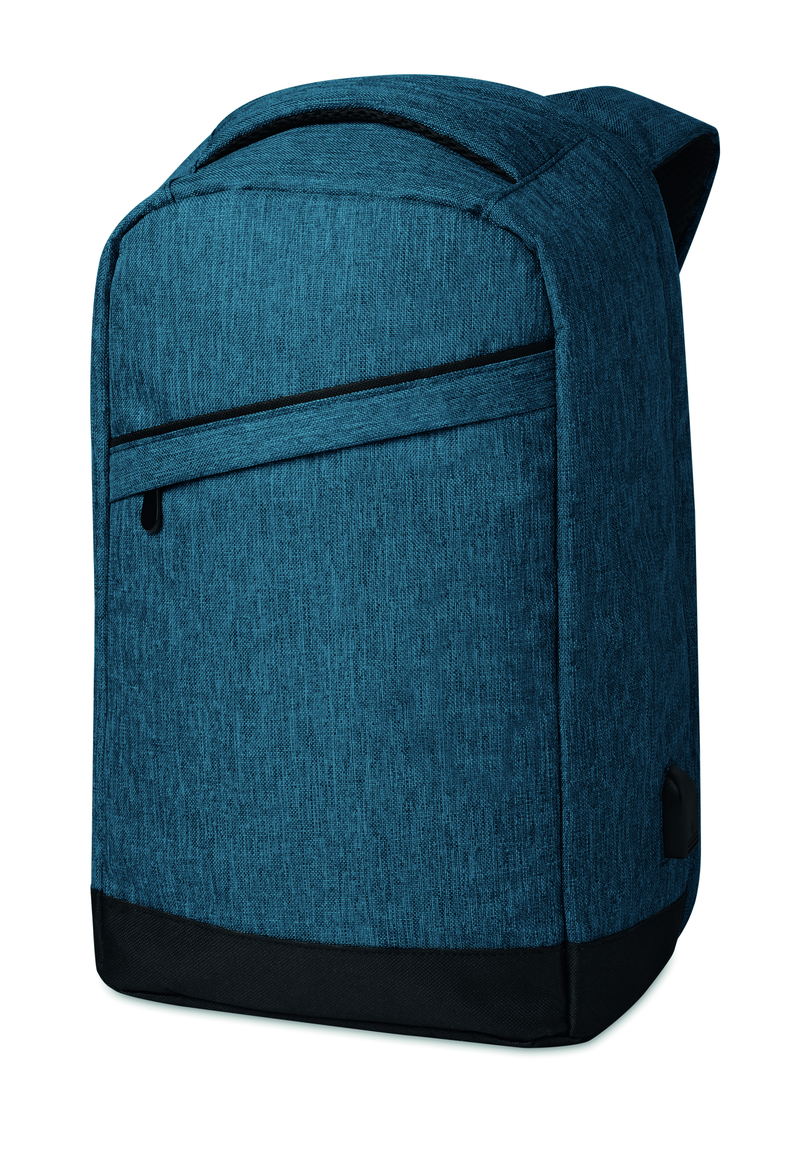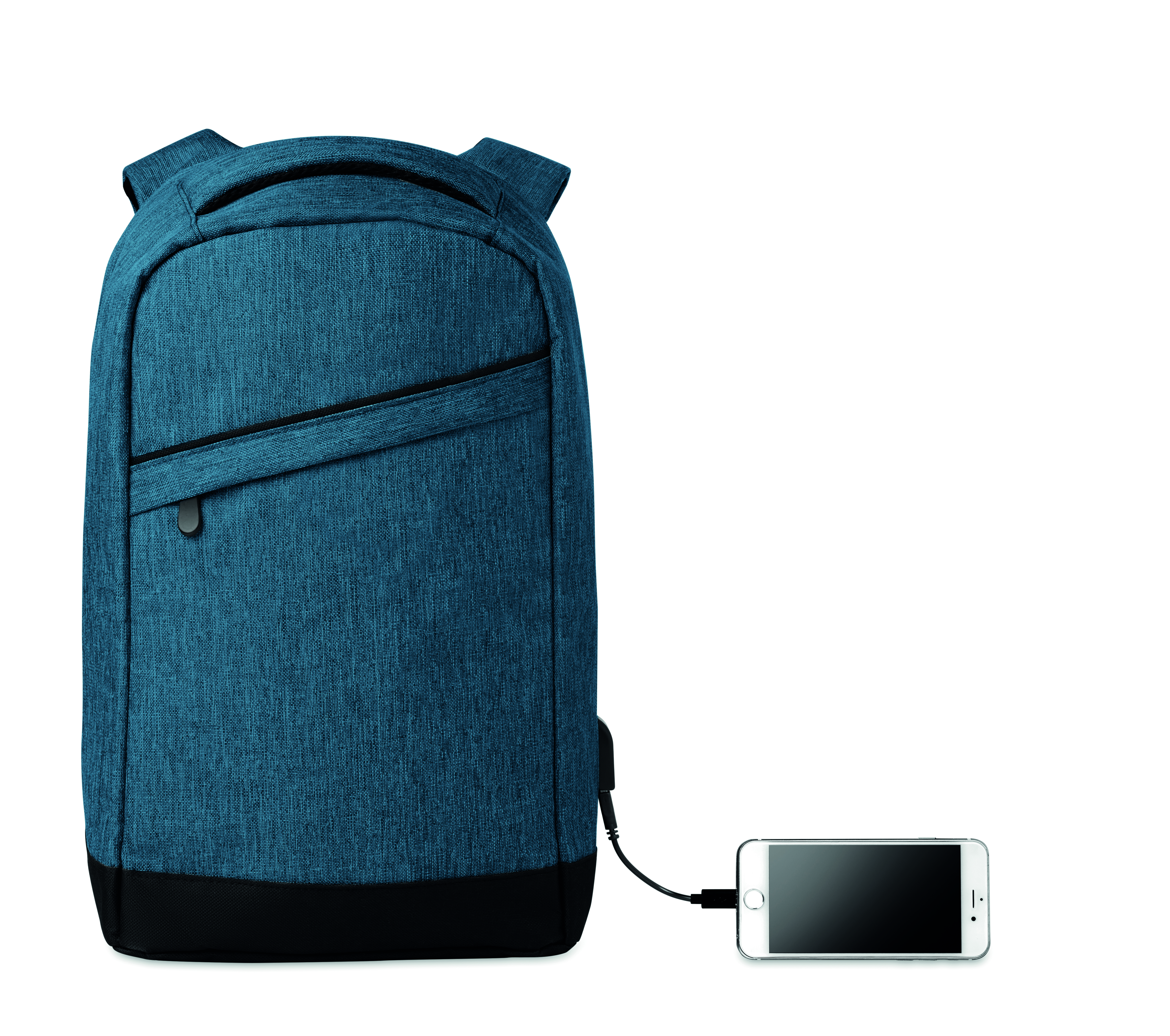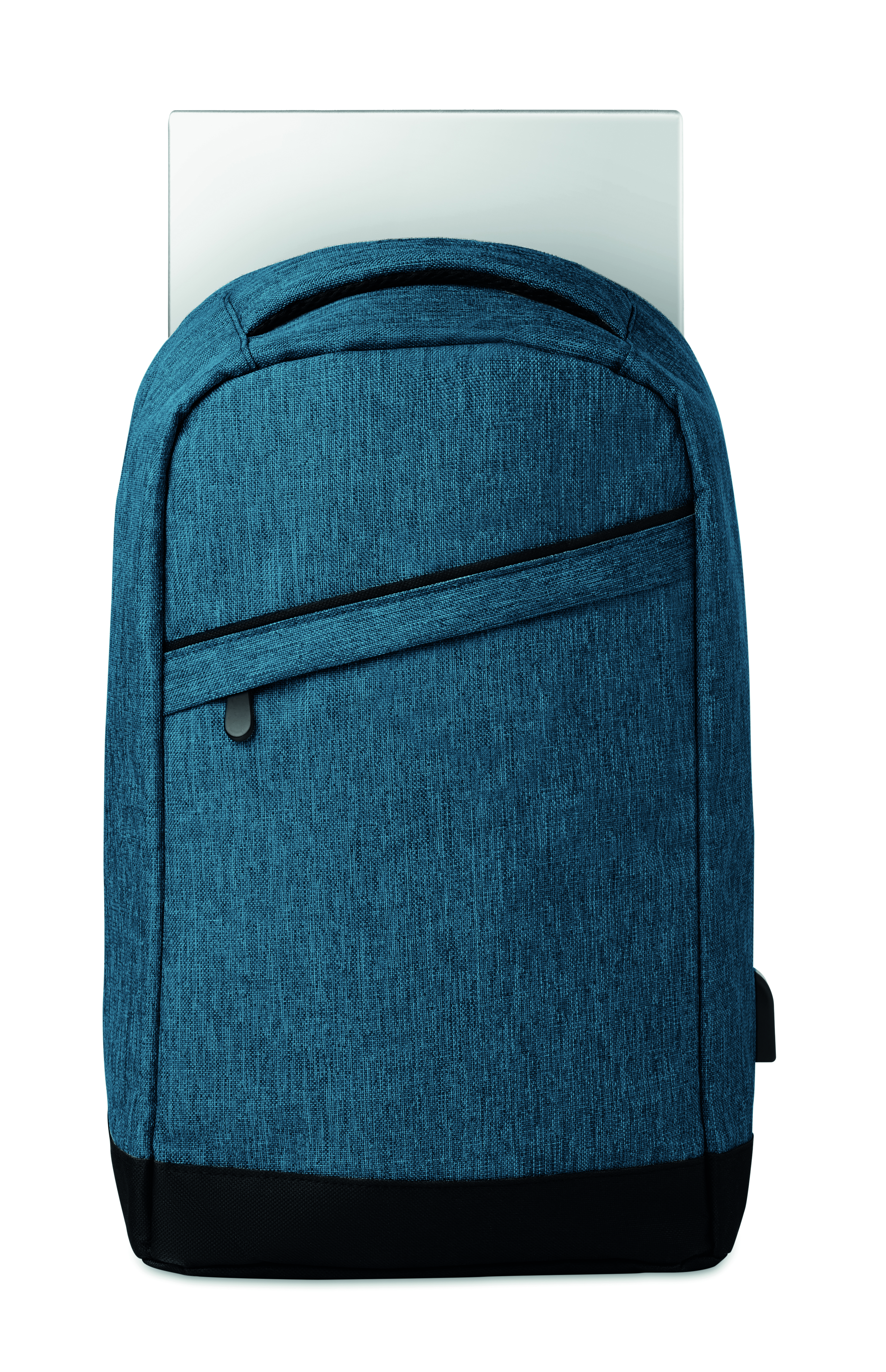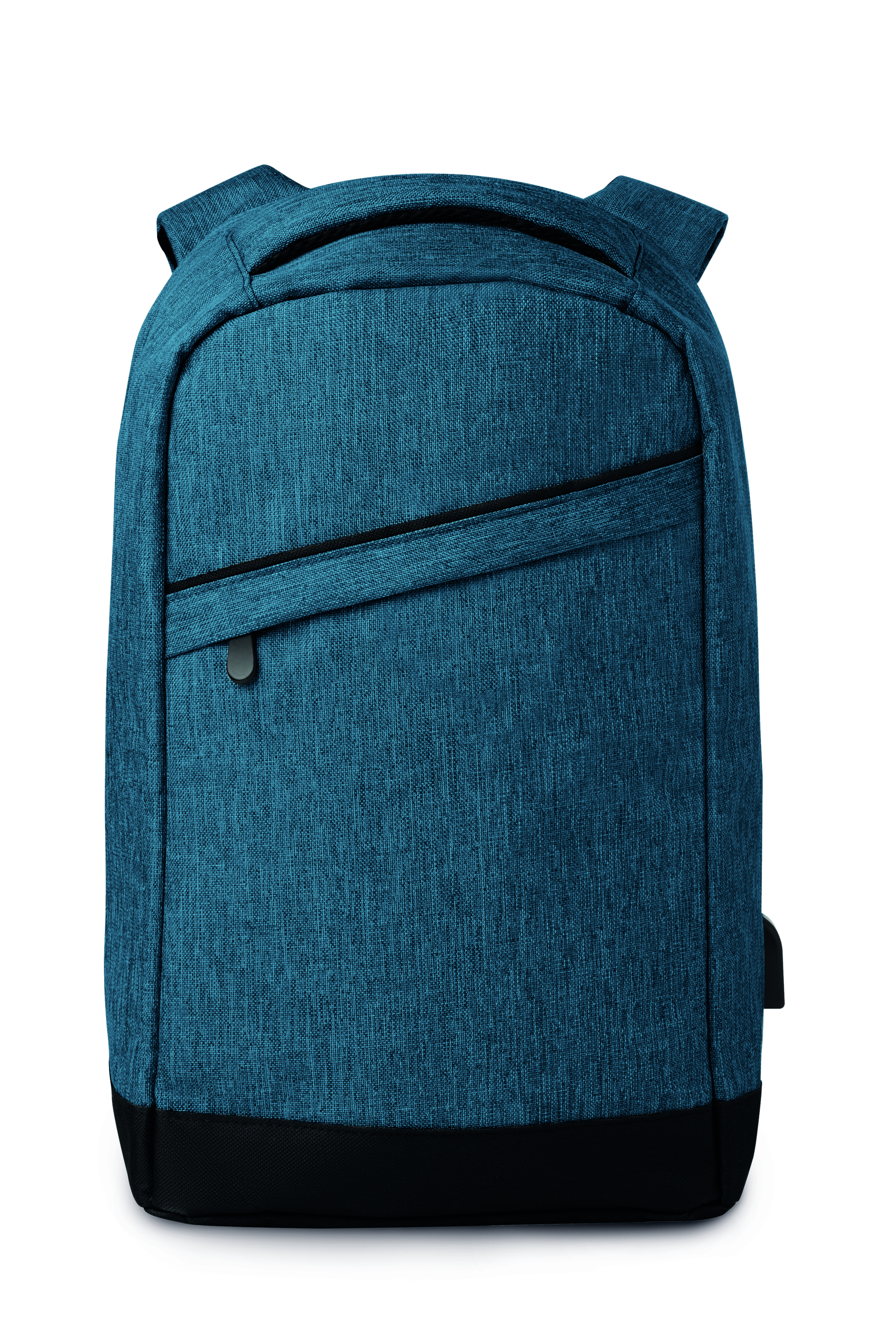 Plecak z poliestru 600D. Wyściełane paski na ramiona, wewnątrz jedna główna przegroda na laptop 13 inch oraz kabel ładujący USB. Sposób umieszczenia zamka chroni przed kradzieżą.