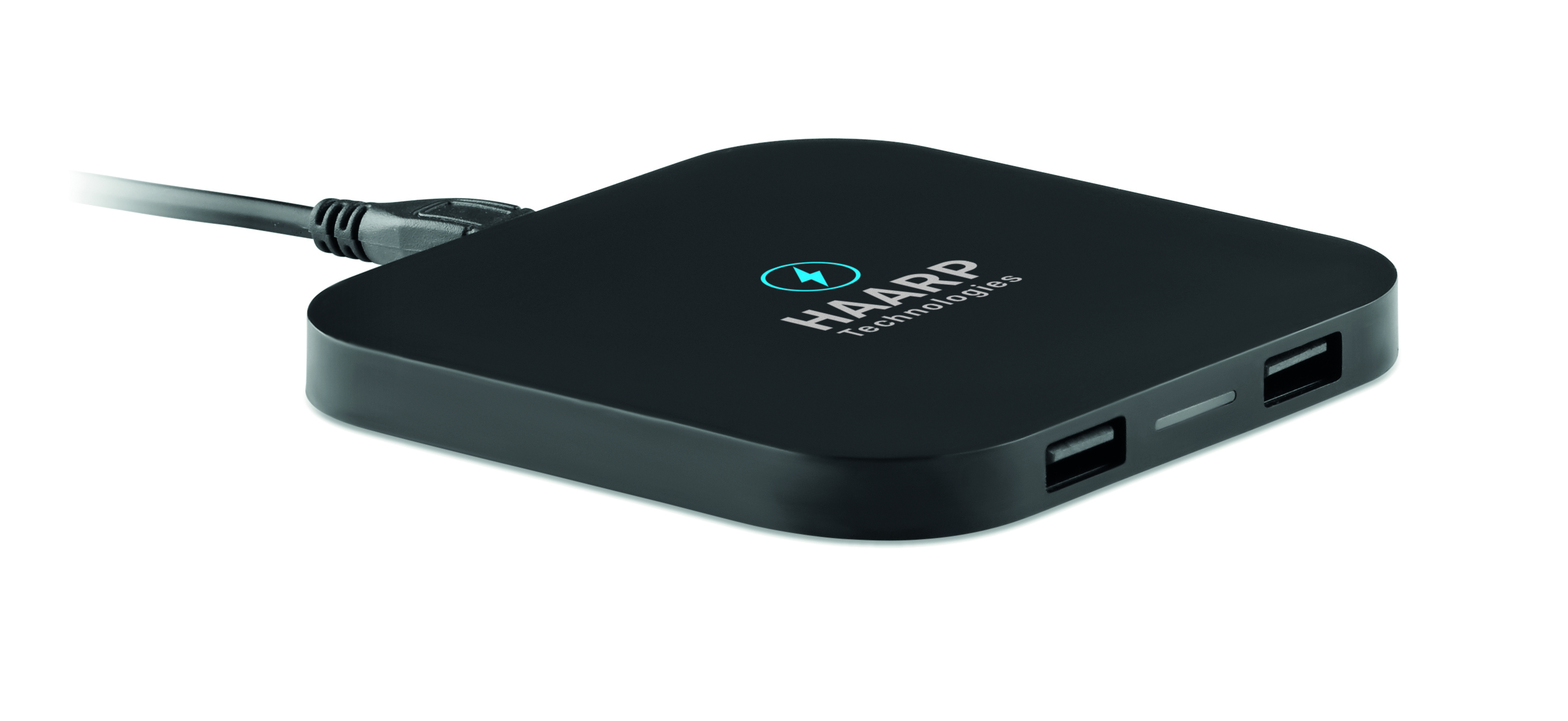 Ładowarka bezprzewodowa z 2 portami USB 2.0. oraz kabel do podłączenia do komputera. Bezprzewodowe ładowanie smartfona. Wyjście: DC5V/1A (5W).