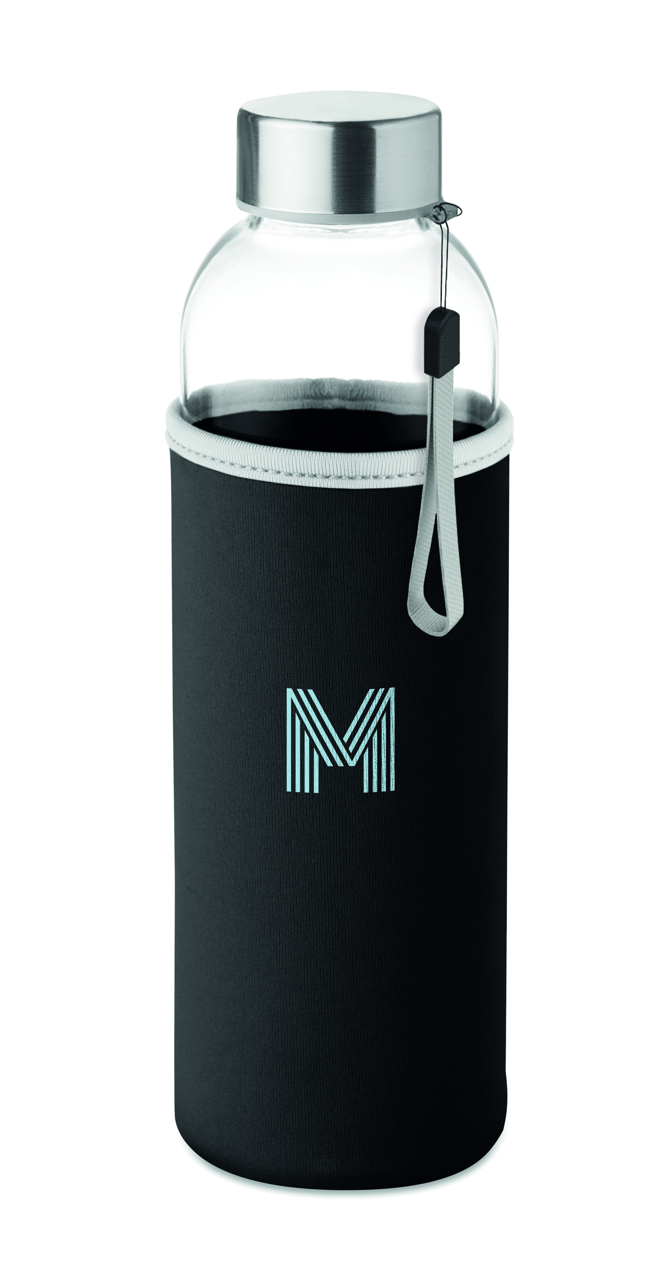 Szklana butelka 500ml z pokrowcem z neoprenu. Nie nadaje się do napojów gazowanych. Szczelna.