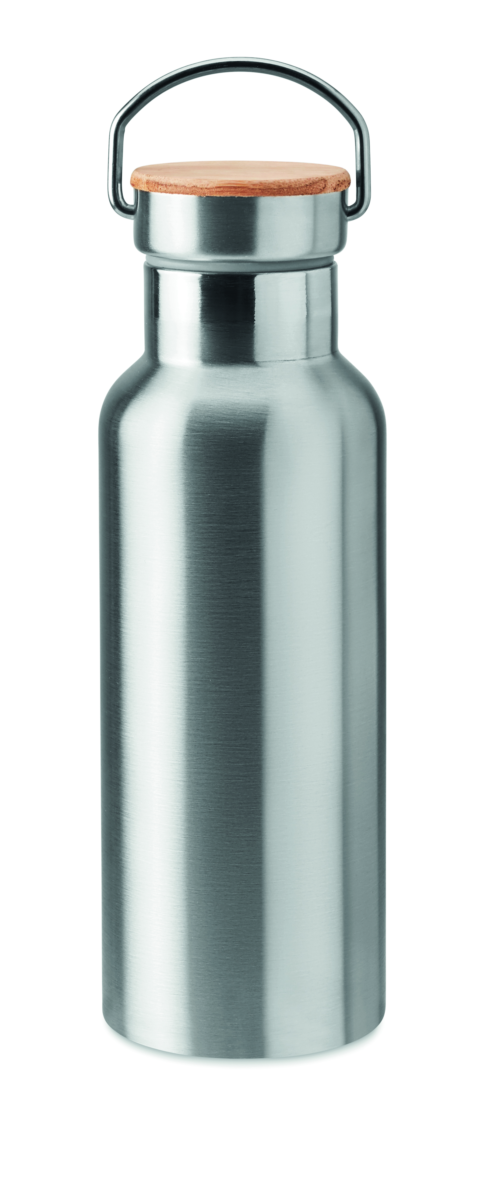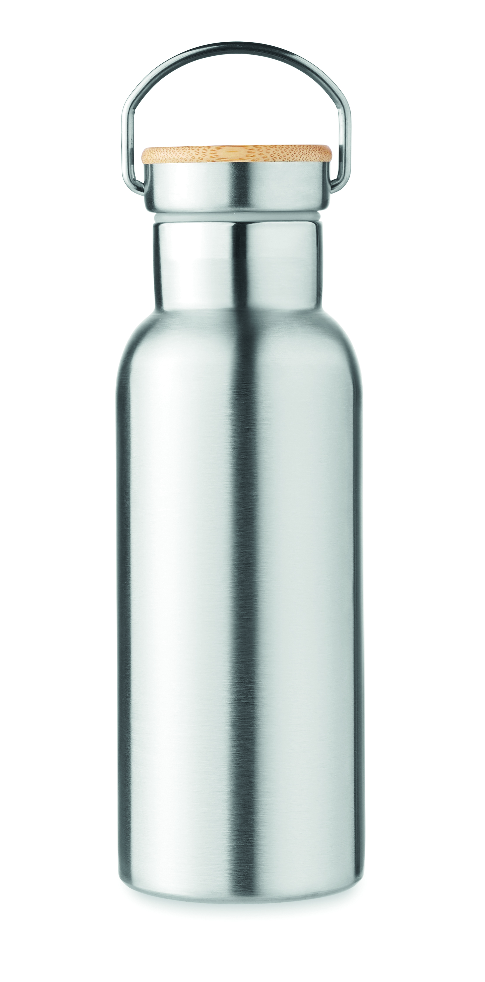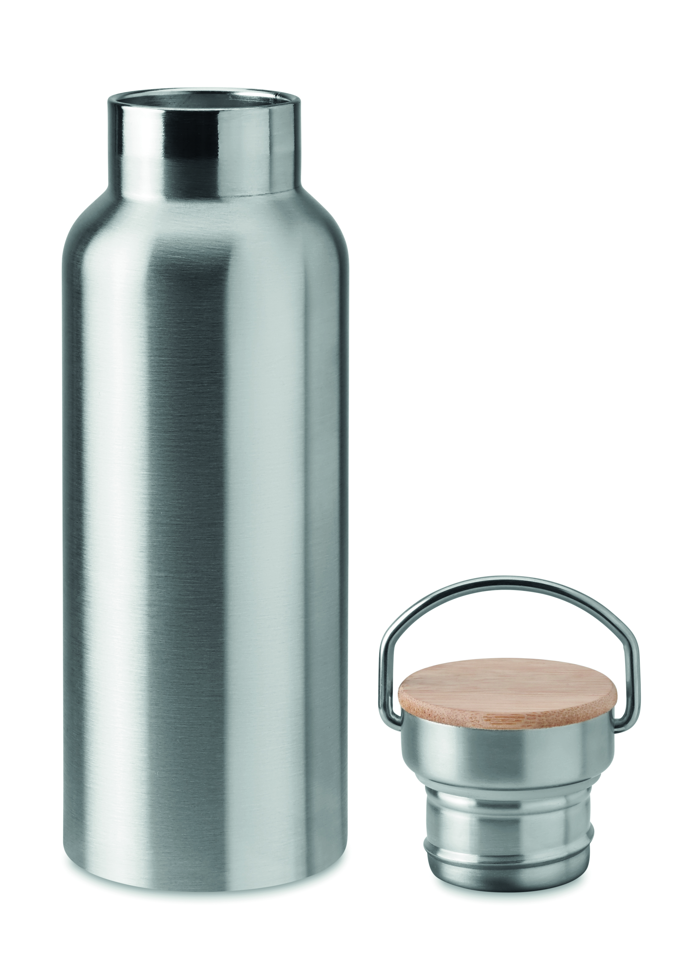 Termos ze stali nierdzewnej z podwójnymi ściankami, 500 ml. Pokrywka z bambusa, z uchwytem. Znakowanie sublimacją jest możliwe tylko na białych produktach. Szczelna. Bambus jest produktem naturalnym, dlatego mogą wystąpić nieznaczne różnice w kolorze, wzorze i rozmiarze.