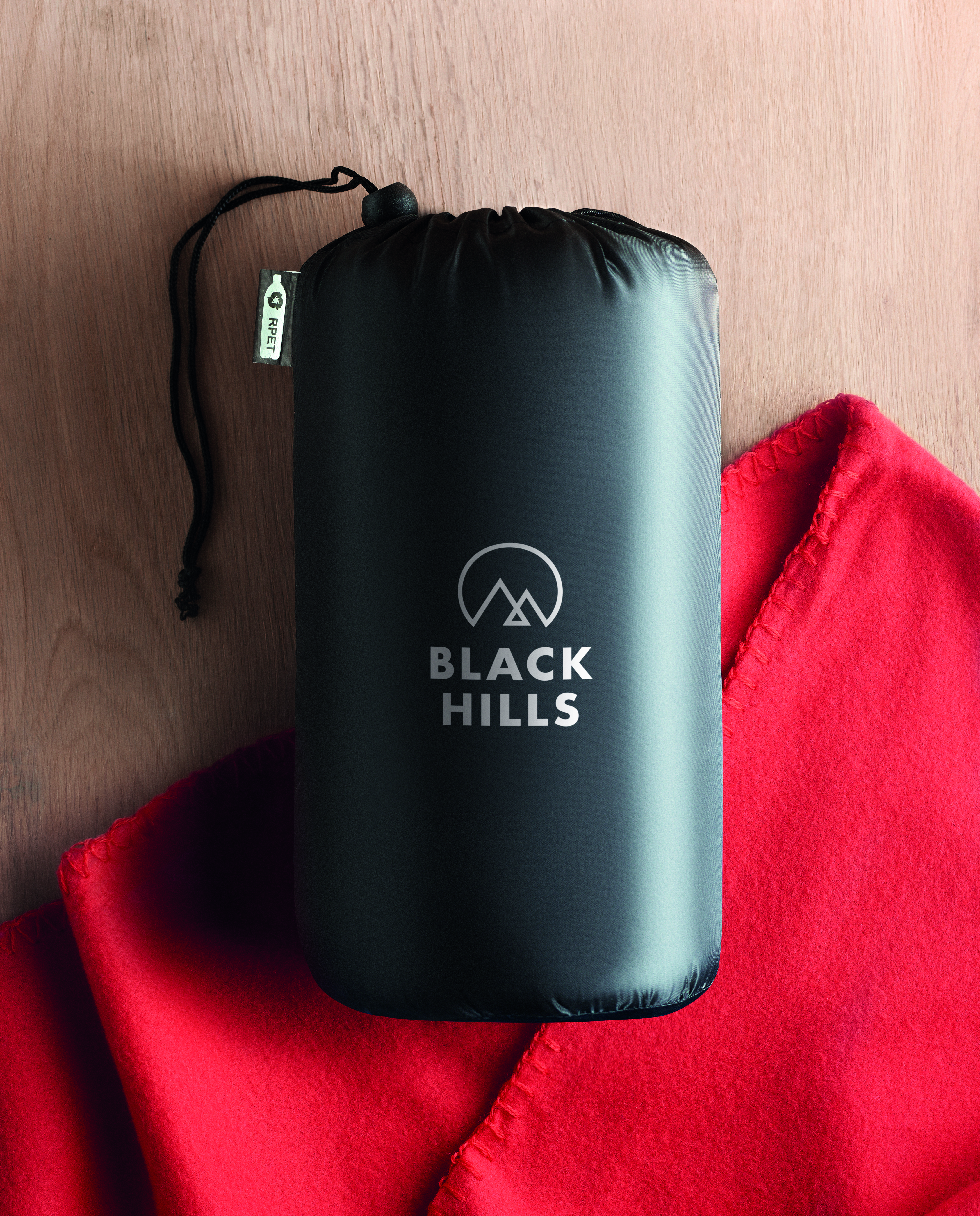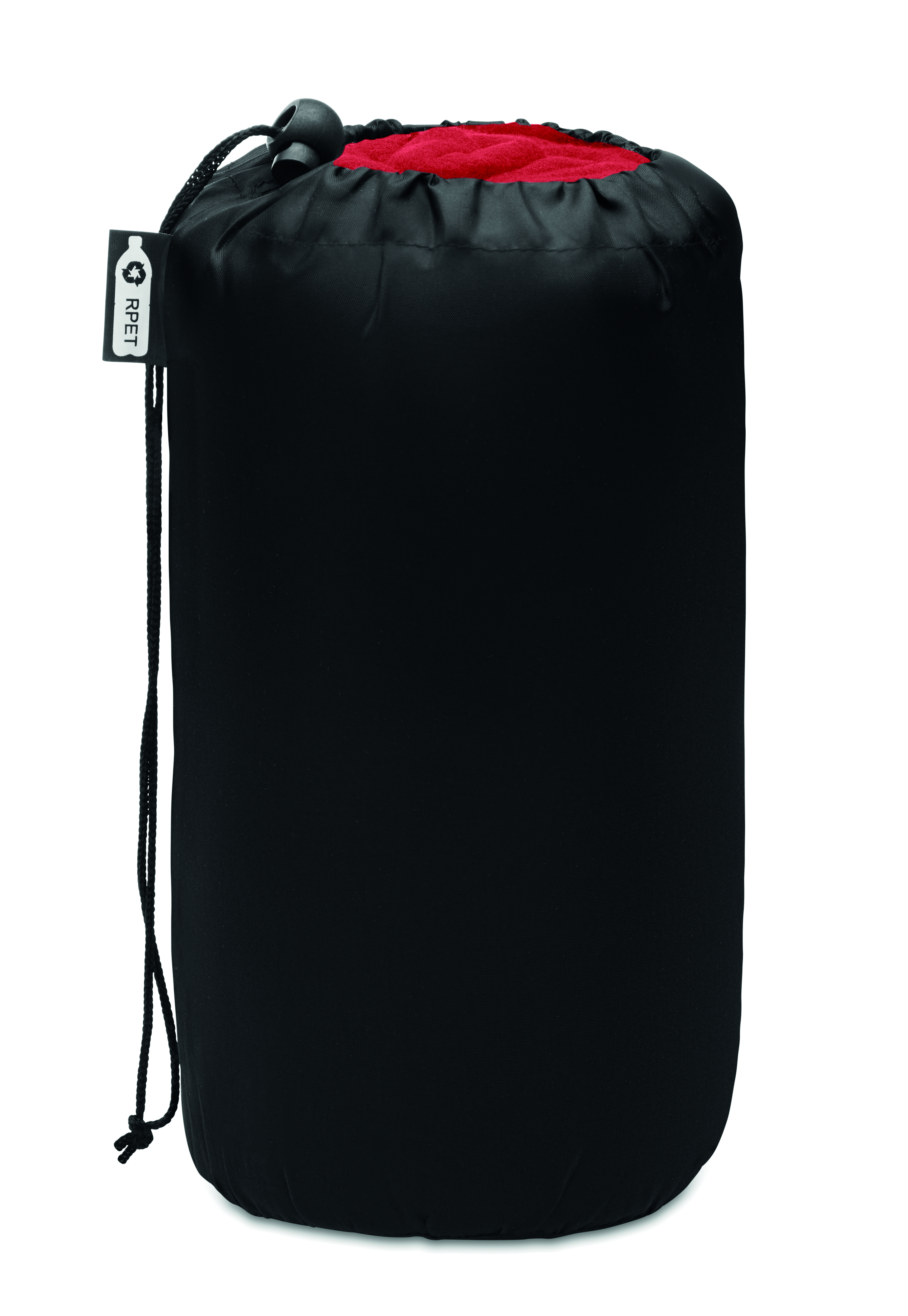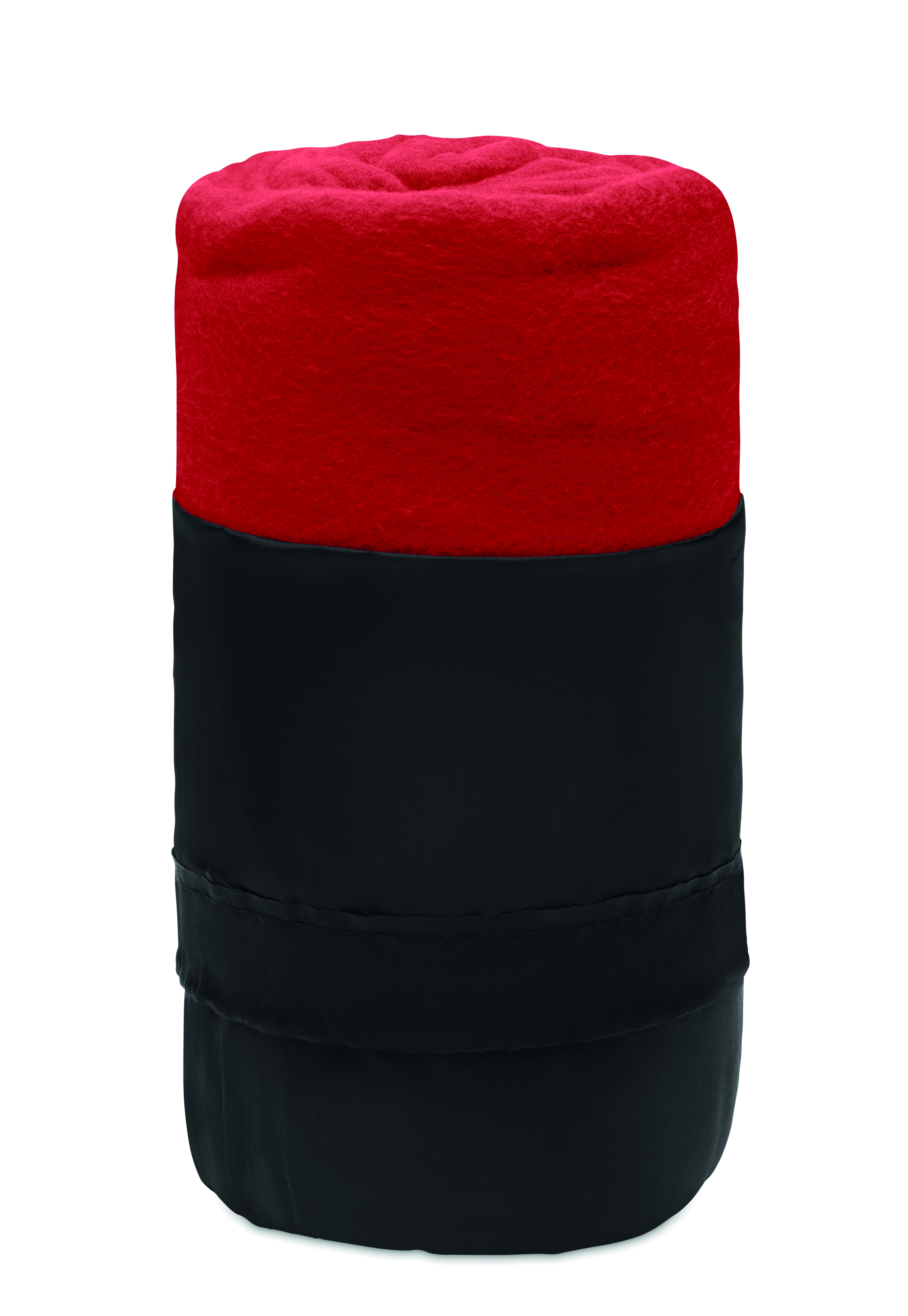 Koc polarowy z RPET w torbie podróżnej z poliestru RPET. Polar o gramaturze 180 gr/m².
